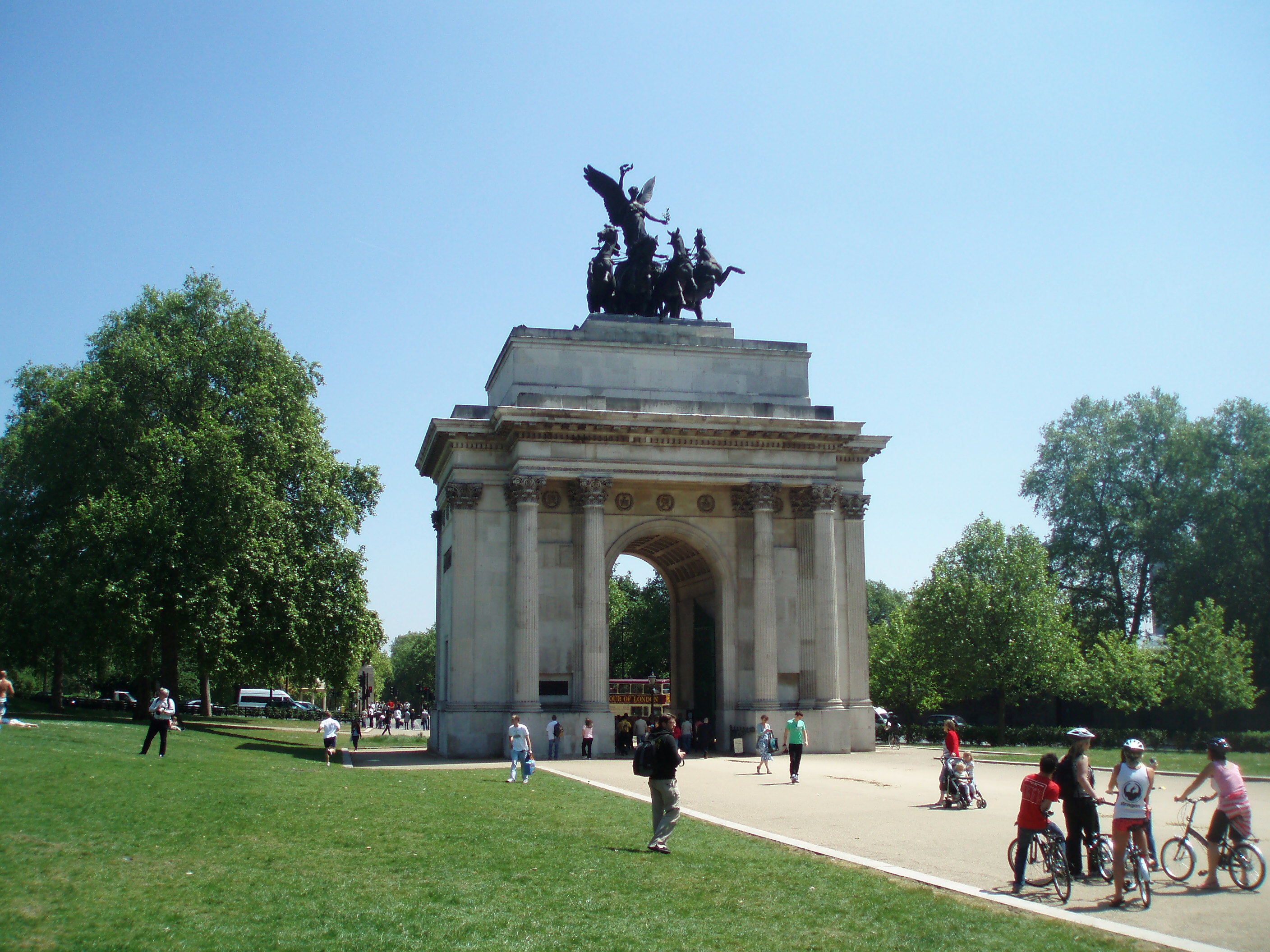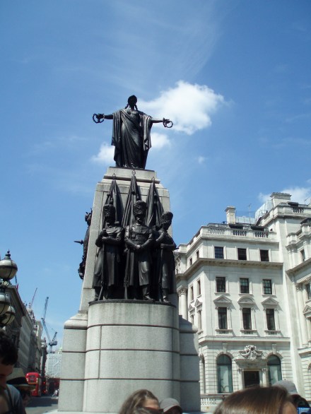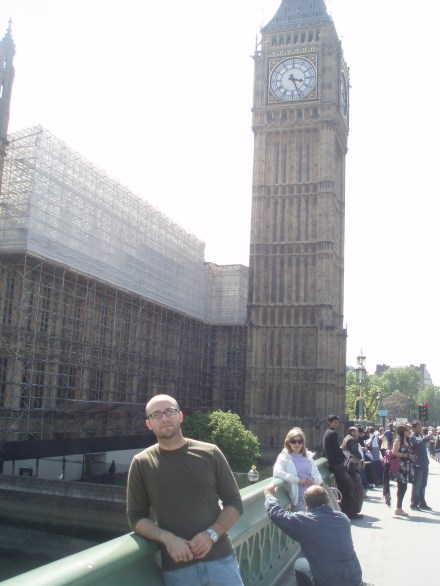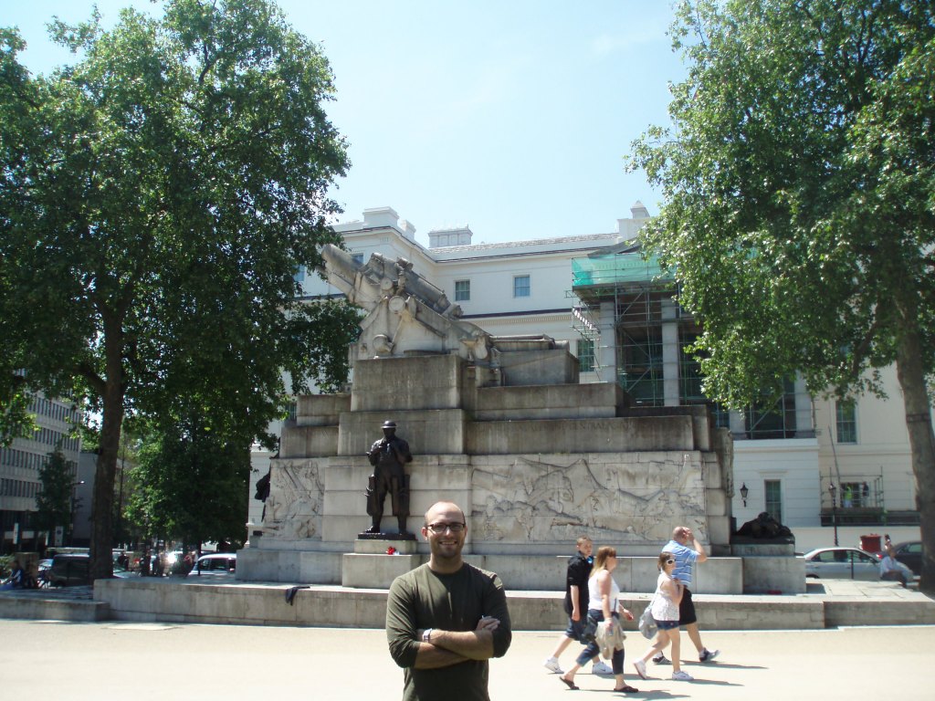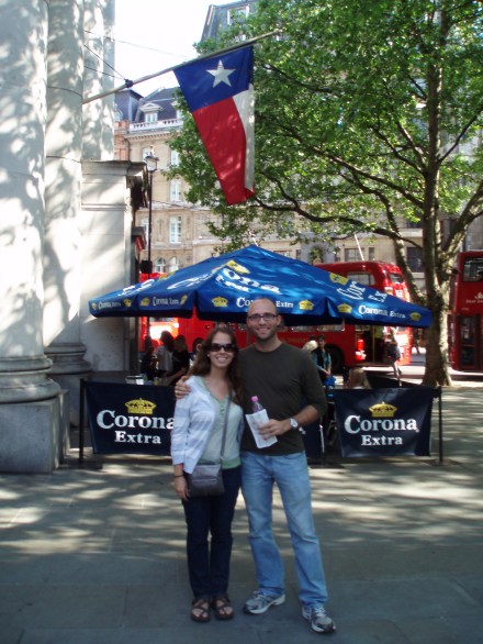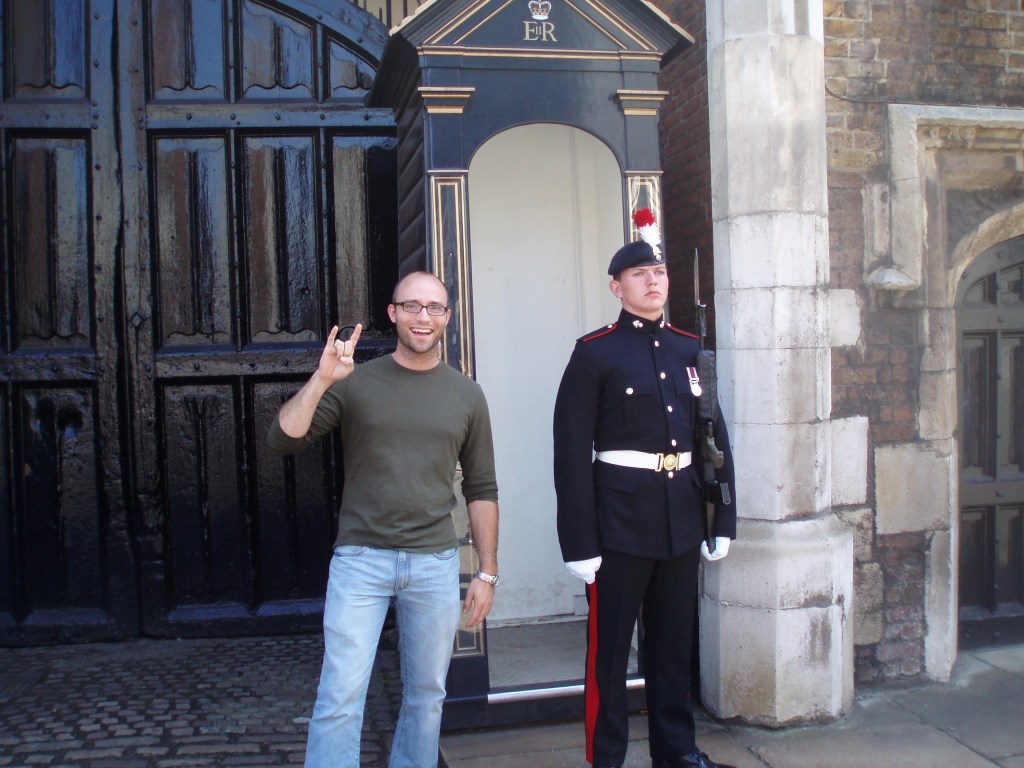 Yesterday we got a late start because we decided to sleep in. Our CS (couchsurfing) host, Mark, told us about a free walking tour in the city so we decided to do that first. Our guide, Renee, was an American from Round Rock! Small world. The tour was great. We began at Hyde Park Corner to see Wellington’s Arch, Wellington, and war memorials for Australia and New Zealand. Then we moved through Green Park to Buckingham Palace and St. James’s Palace. We took pictures with some of the guards too! No fluffy hats though. Then we went toward Trafalgar Square. On the way we saw the former Texas Embassy, now a cantina. After Trafalgar Sq. we went to Horse Guards Parade Grounds where London will have Olympic beach volleyball in 2012. We skipped St. James’s Park and headed to Big Ben, Westminster Abbey, and the Parliament houses.