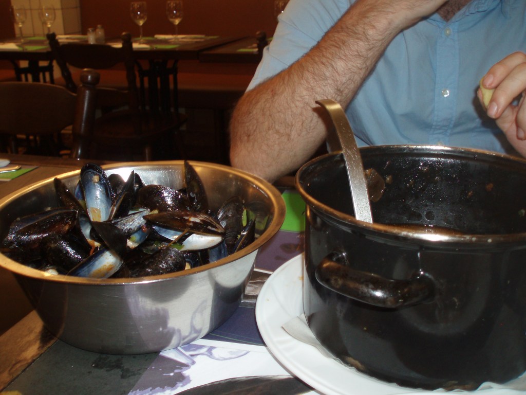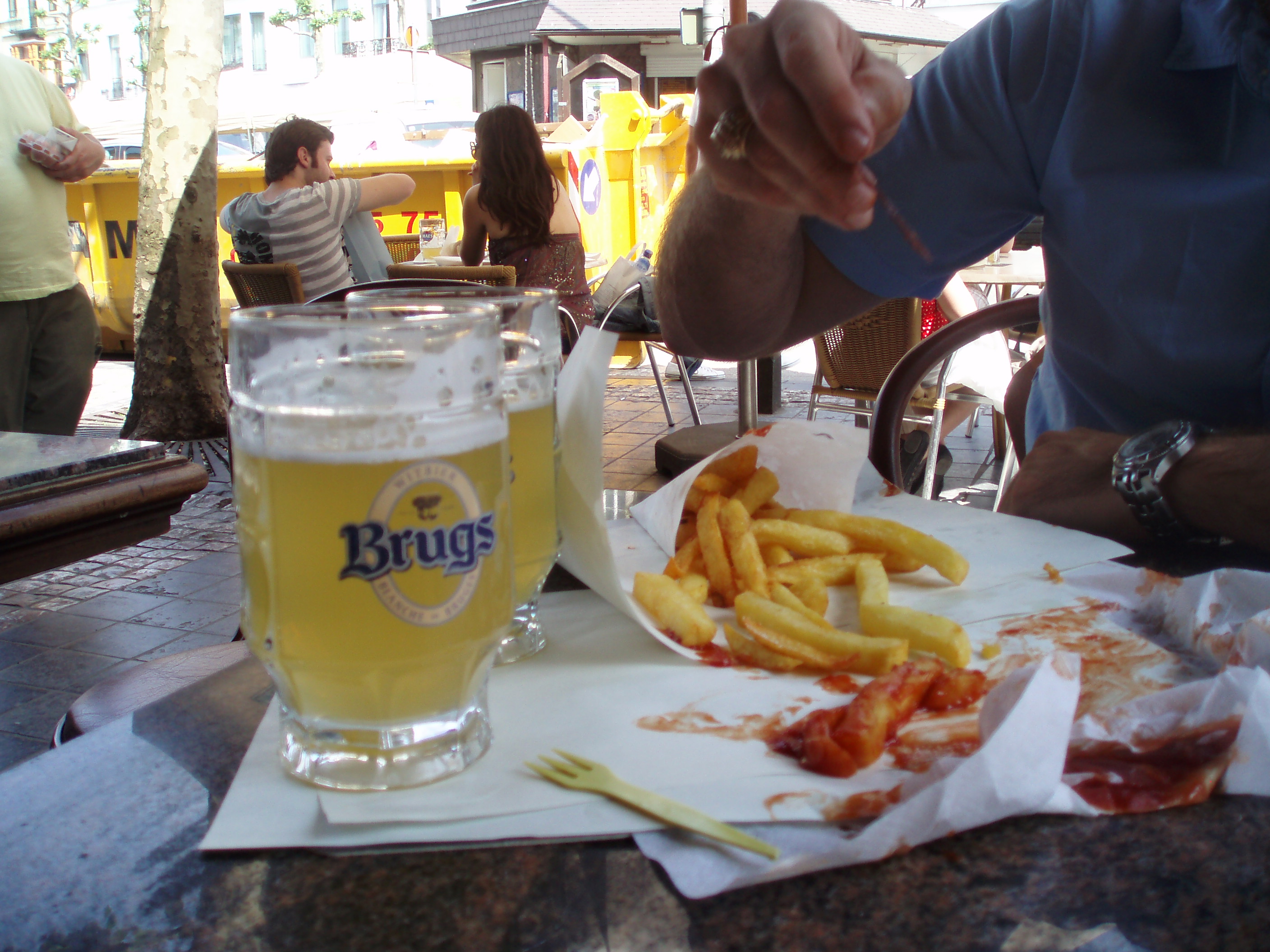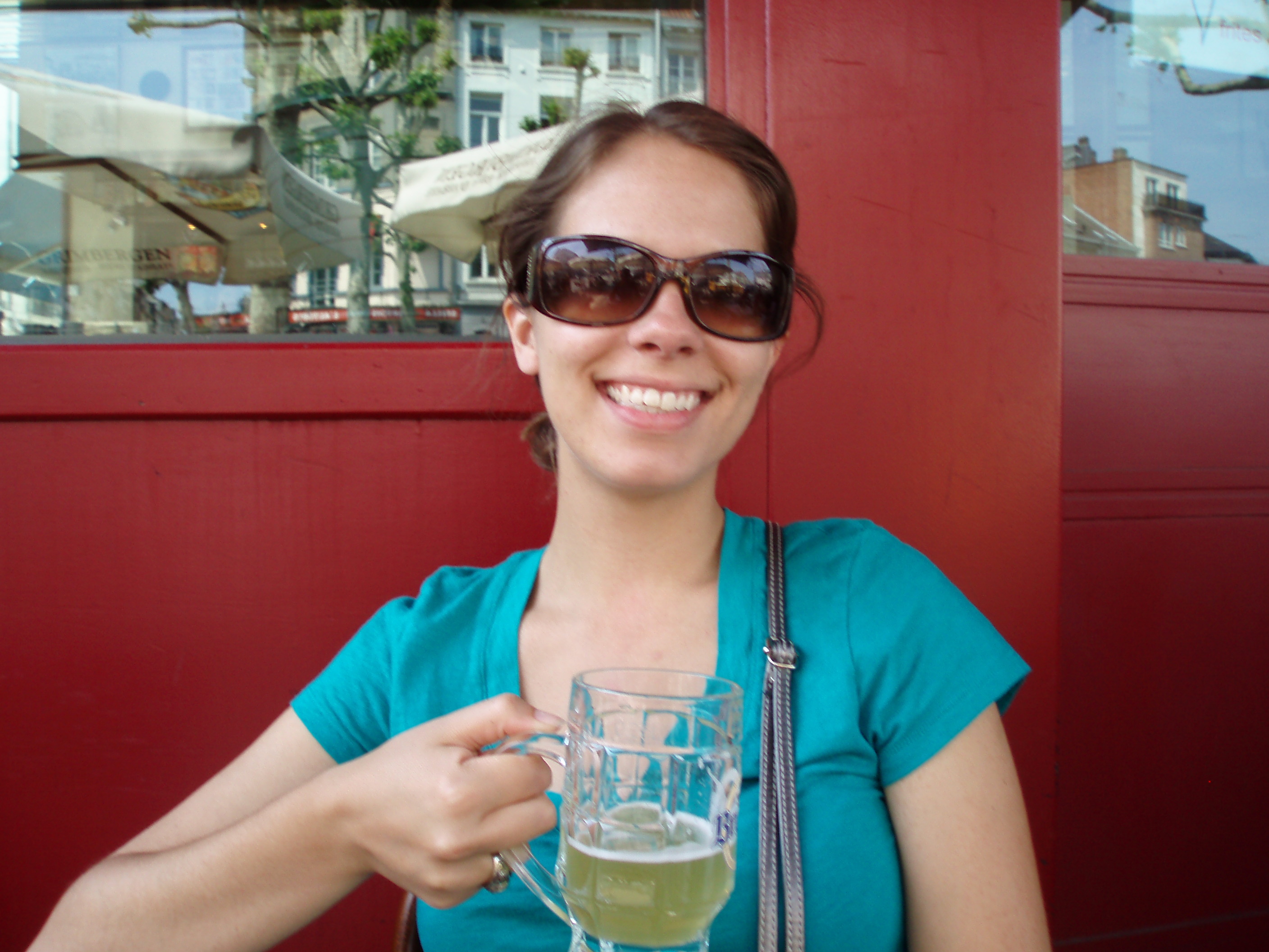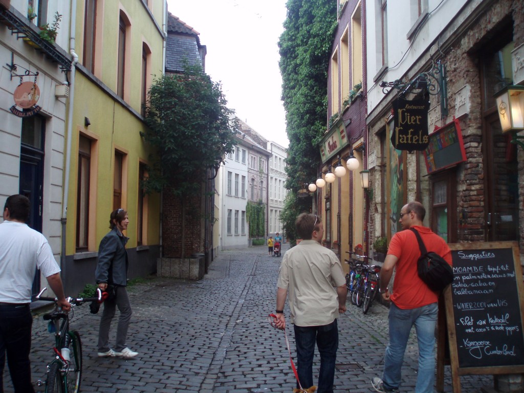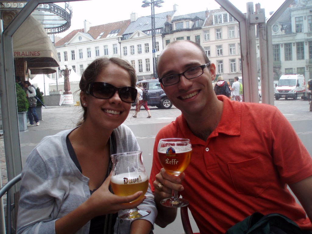 Brussels was interesting. It is the most cosmopolitan city in Belgium and the only city where both French and Flemish are spoken. In that way it was also a little confusing. All of the street signs are in both languages and change frequently; we got lost more than a few times. We spent Saturday wandering around the city. We went back to the Grande Place and then spent a couple of hours at the Musical Instruments Museum. They have the largest collection of instruments in the world and when you stand in front of different instruments a sample plays in your headphones. There aren’t many sites to go visit so after a few hours we felt like we still hadn’t seen much. We did have fries, or frites, at the famous Antoine’s at Place Jourdain and sat at a bar with some Blanche de Bruges. Since we were off the tourist path we did discover the real Brussels. We found Little Africa – where many immigrants from the Congo live – and a great little vintage store. Zach bought sunglasses and I found the best vintage purse ever! In fact I am using it now! Brussels is in many ways like a third world country, as our CS host Rajiv said. (Who was a fantastic host! Extremely hospitable and gracious. He would make us breakfast in the mornings and we would sit up at his dining table late into the night talking and drinking port.) It’s quite dirty with trash thrown all over the streets and sidewalks, broken glass and beer bottles littering old buildings and monuments. Brussels has its own little charm though. Rajiv took us and our fellow couchsurfer, Renato, to a great little local cafe where we were able to sample local foods and beers. Zach and I split a bucket of steamed mussels provencale – a national dish – and Renato had horse! – which we all tried of course.