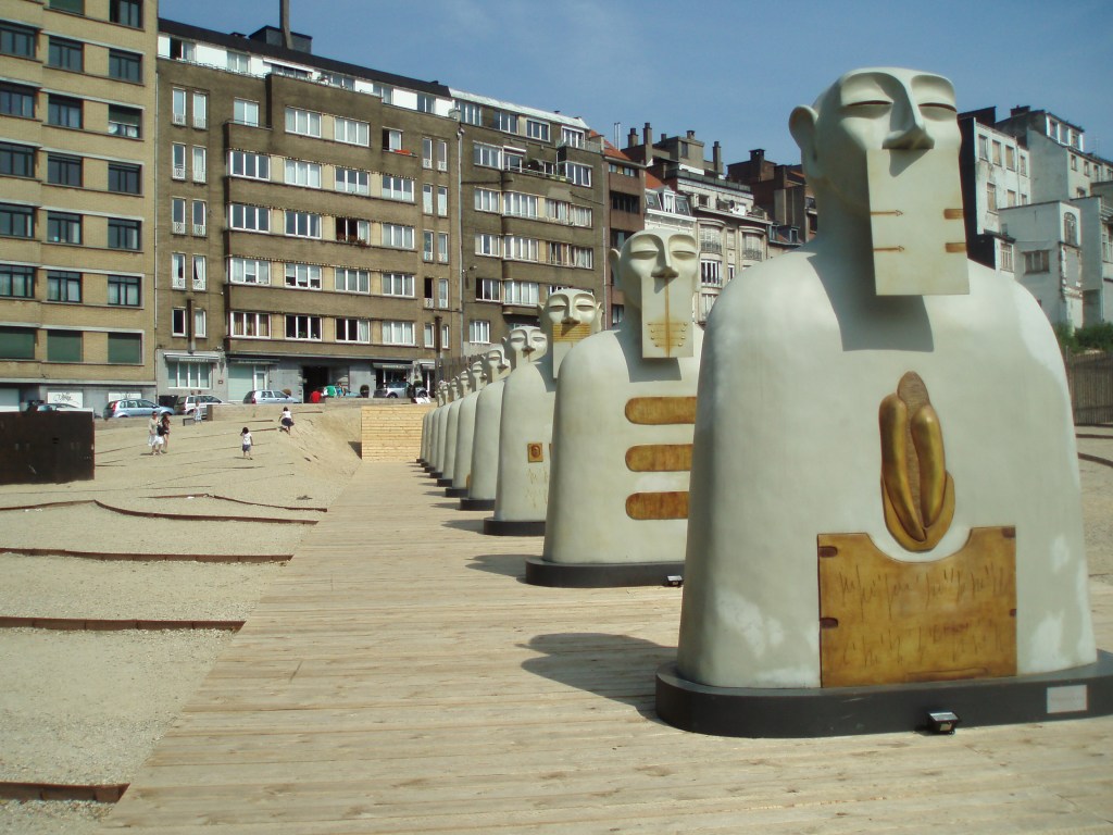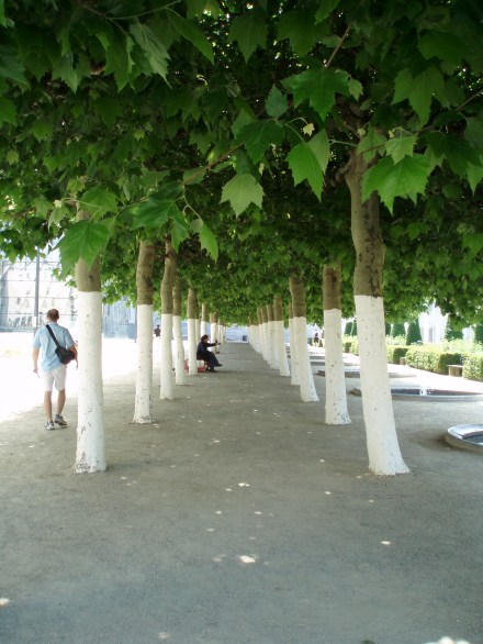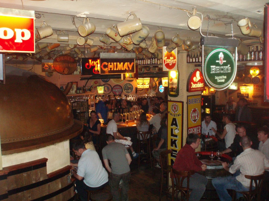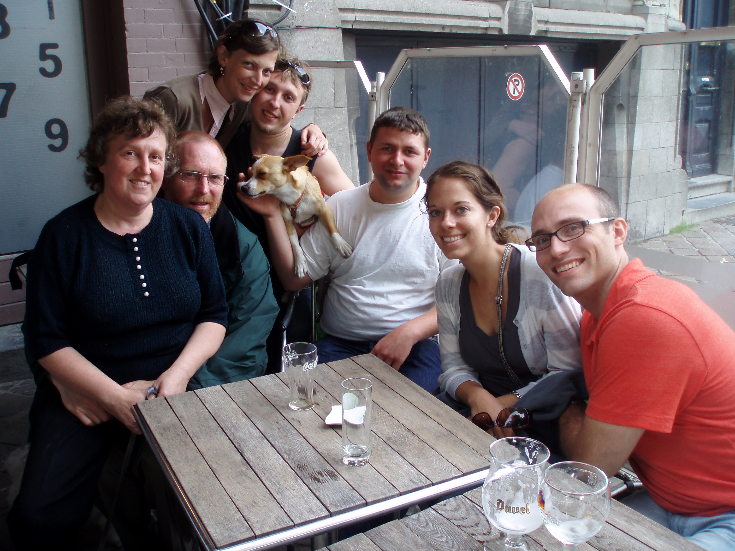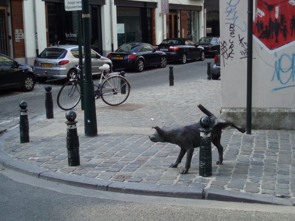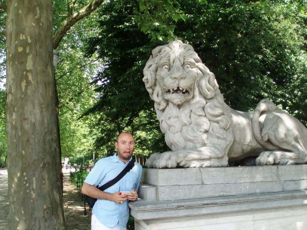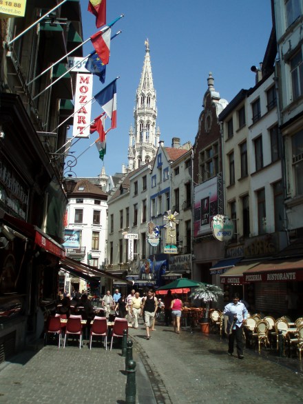 Brussels was interesting. It is the most cosmopolitan city in Belgium and the only city where both French and Flemish are spoken. In that way it was also a little confusing. All of the street signs are in both languages and change frequently; we got lost more than a few times. We spent Saturday wandering around the city. We went back to the Grande Place and then spent a couple of hours at the Musical Instruments Museum. They have the largest collection of instruments in the world and when you stand in front of different instruments a sample plays in your headphones. There aren’t many sites to go visit so after a few hours we felt like we still hadn’t seen much. We did have fries, or frites, at the famous Antoine’s at Place Jourdain and sat at a bar with some Blanche de Bruges. Since we were off the tourist path we did discover the real Brussels. We found Little Africa – where many immigrants from the Congo live – and a great little vintage store. Zach bought sunglasses and I found the best vintage purse ever! In fact I am using it now! Brussels is in many ways like a third world country, as our CS host Rajiv said. (Who was a fantastic host! Extremely hospitable and gracious. He would make us breakfast in the mornings and we would sit up at his dining table late into the night talking and drinking port.) It’s quite dirty with trash thrown all over the streets and sidewalks, broken glass and beer bottles littering old buildings and monuments. Brussels has its own little charm though. Rajiv took us and our fellow couchsurfer, Renato, to a great little local cafe where we were able to sample local foods and beers. Zach and I split a bucket of steamed mussels provencale – a national dish – and Renato had horse! – which we all tried of course.