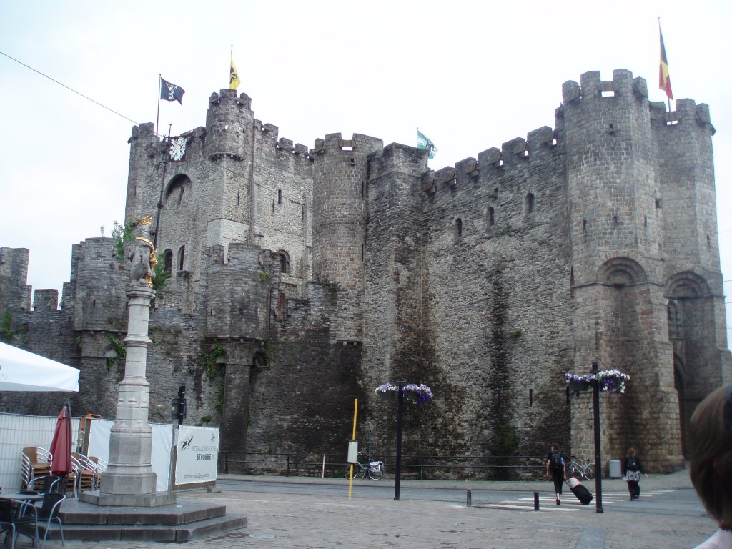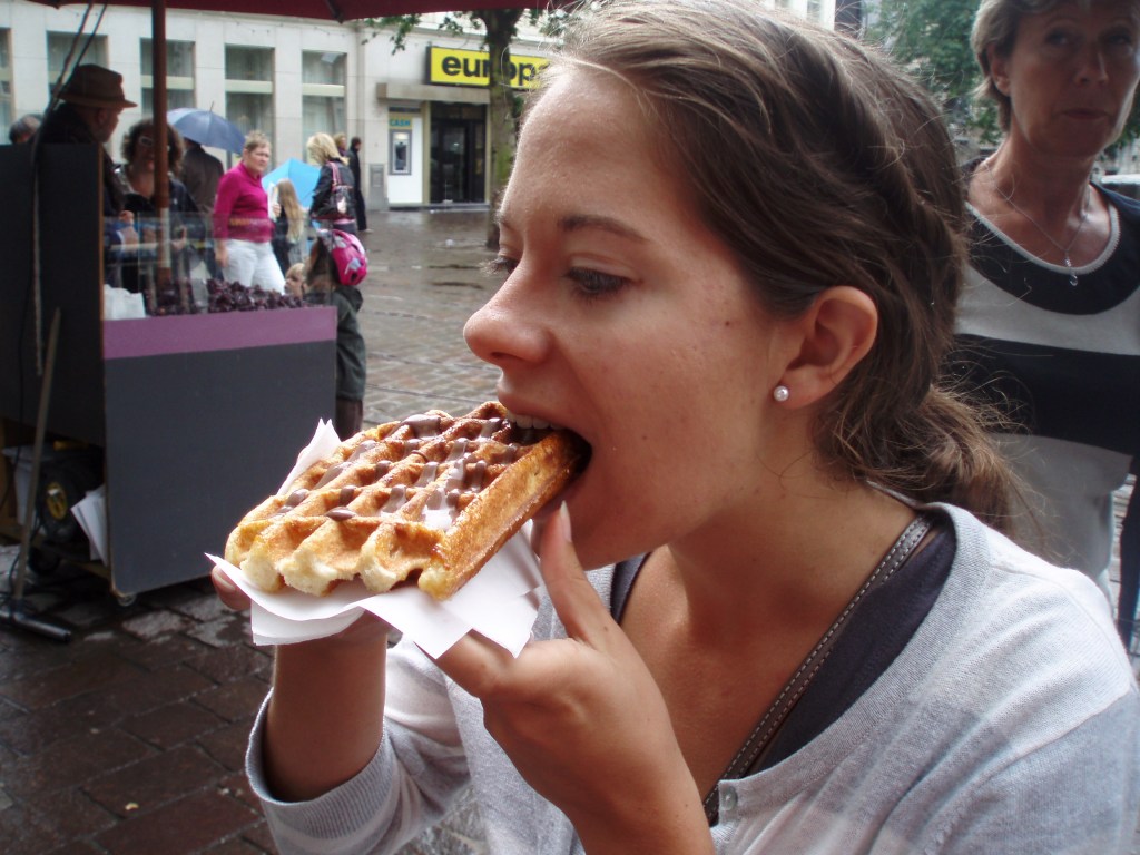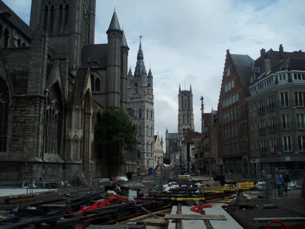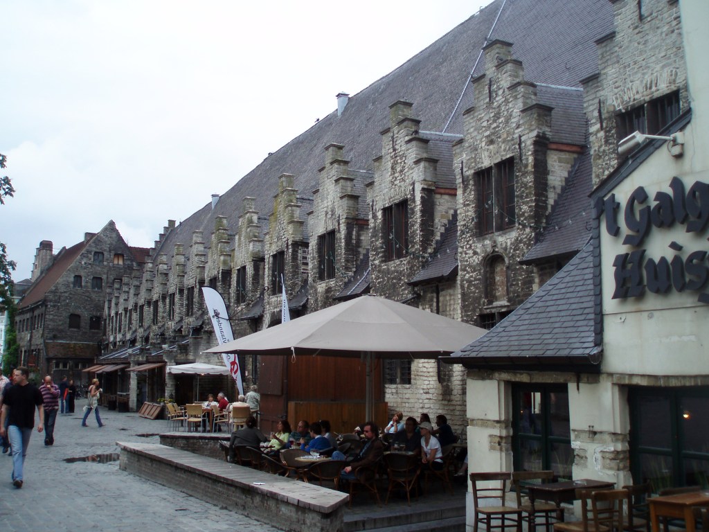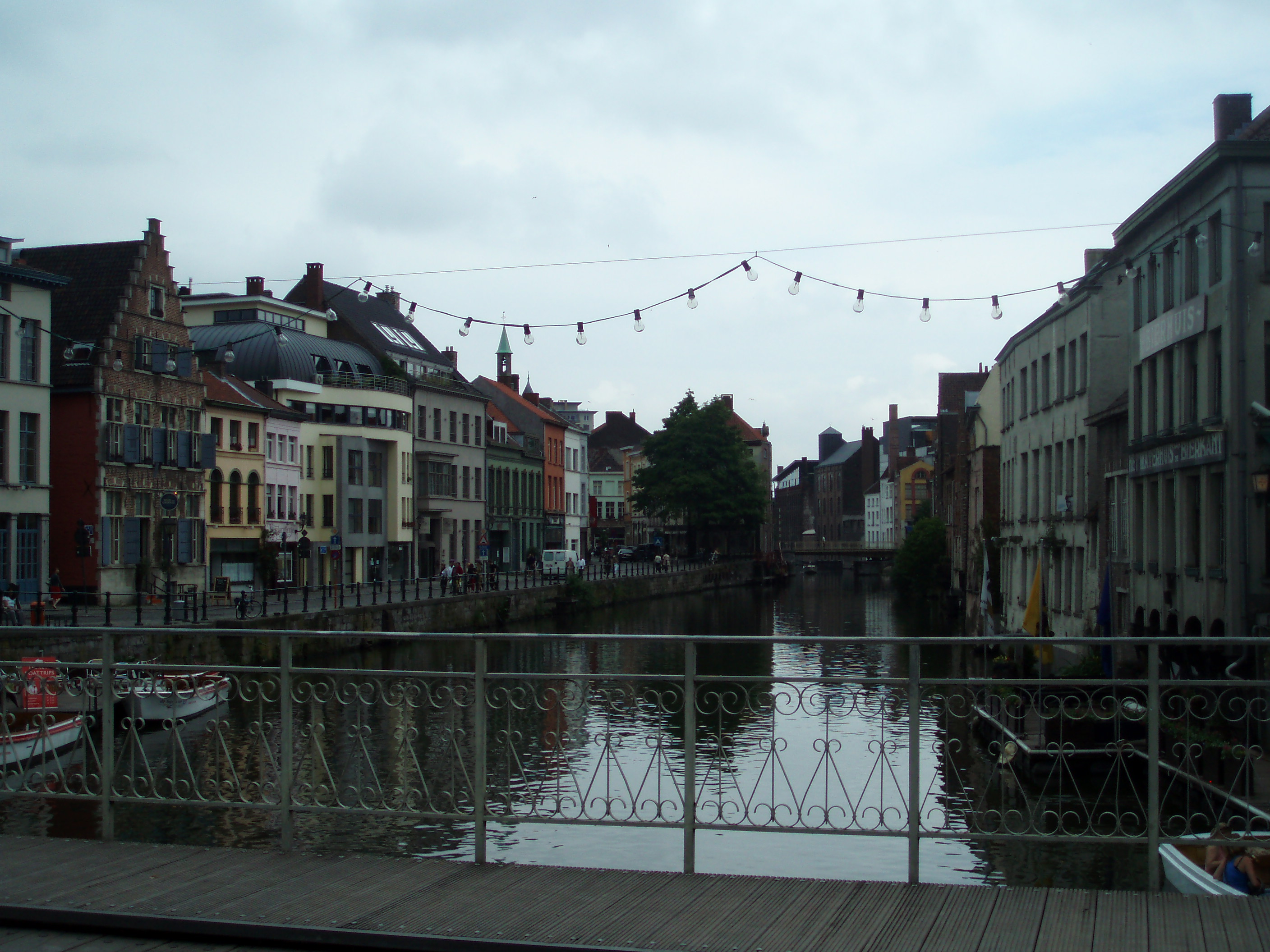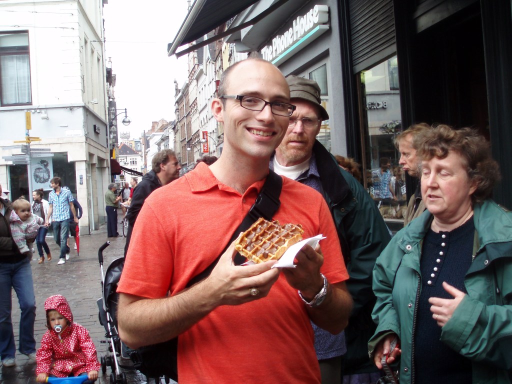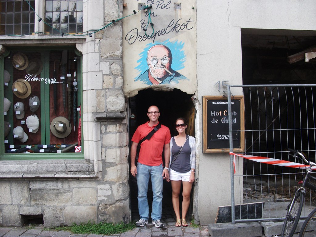 On Sunday Zach and I went to Ghent where we met up with the family Zach stayed with when he was in high school on a band tour. They were very anxious to show us around and were incredibly hospitable and excellent guides. The city is being torn up right now and when we first arrived the tram route was different than our map. We ended up riding the entire loop back to the station and starting over again – very frustrating in a city where all the signs are in Flemish! We eventually made it to one of the main squares and began our journey with the de Winnes. We strolled aimlessly for a bit passing the charming canals with boat tours chugging back and forth. We saw the medieval castle, but didn’t take the tour-next time we’ll have to. The meat house is an impressive old building and it was a huge meat market in the middle ages. We ate waffles (wafels) at Ghent’s oldest bakery, we saw the smallest building and the smallest cafe, as well as the smallest street. It seemed to be a theme that day… except when we took a picture in front of the largest cannon I’ve ever seen. We also bought some delectable Belgian chocolate and the shopkeeper promptly declared that Americans do not know how to make chocolate! He had tried some before… We walked all over the city and got a really intimate view of Ghent – one that we would not have received had it been just Zach and myself. They showed us a little local cafe called Pink Flamingo’s. It felt just like Austin. There was a barbie doll chandelier, antiques hanging all over the walls, Alp-themed knick-knacks, and other random accessories. It was like stepping into a cafe at home. Even though we had eaten Belgian fries in Brussels we decided to try some again from a street vendor with the national condiment: mayonnaise. Not really our favorite thing in Belgium… but it was a necessary experience at least once. After a quick train ride we were back at Rajiv’s flat in Brussels for one more night.