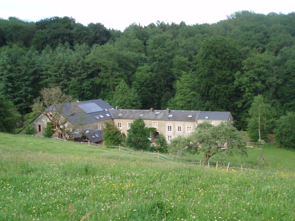 Well, we have been here at Bois le Comte in Villers-devant-Orval, Belgium for two days now. We arrived on Monday afternoon before dinner. We were already a little nervous about this place from the packet we received prior to our arrival and we knew it would be a bit of a change for us to eat vegetarian, but little did we know it would be more extreme: vegan macrobiotic. If you look it up you’ll know we eat a lot of grain-based items, including a grain coffee, and we eat a lot of beans and vegetables. Since it is mostly vegan we aren’t given anything that is produced by animals – eggs, chocolate, etc. Milk at breakfast is the only exception. Yay! So, needless to say, we have been quite hungry. We eat granola bars in our room at night and we may head down to the little grocery in the village to buy some other snacks soon…