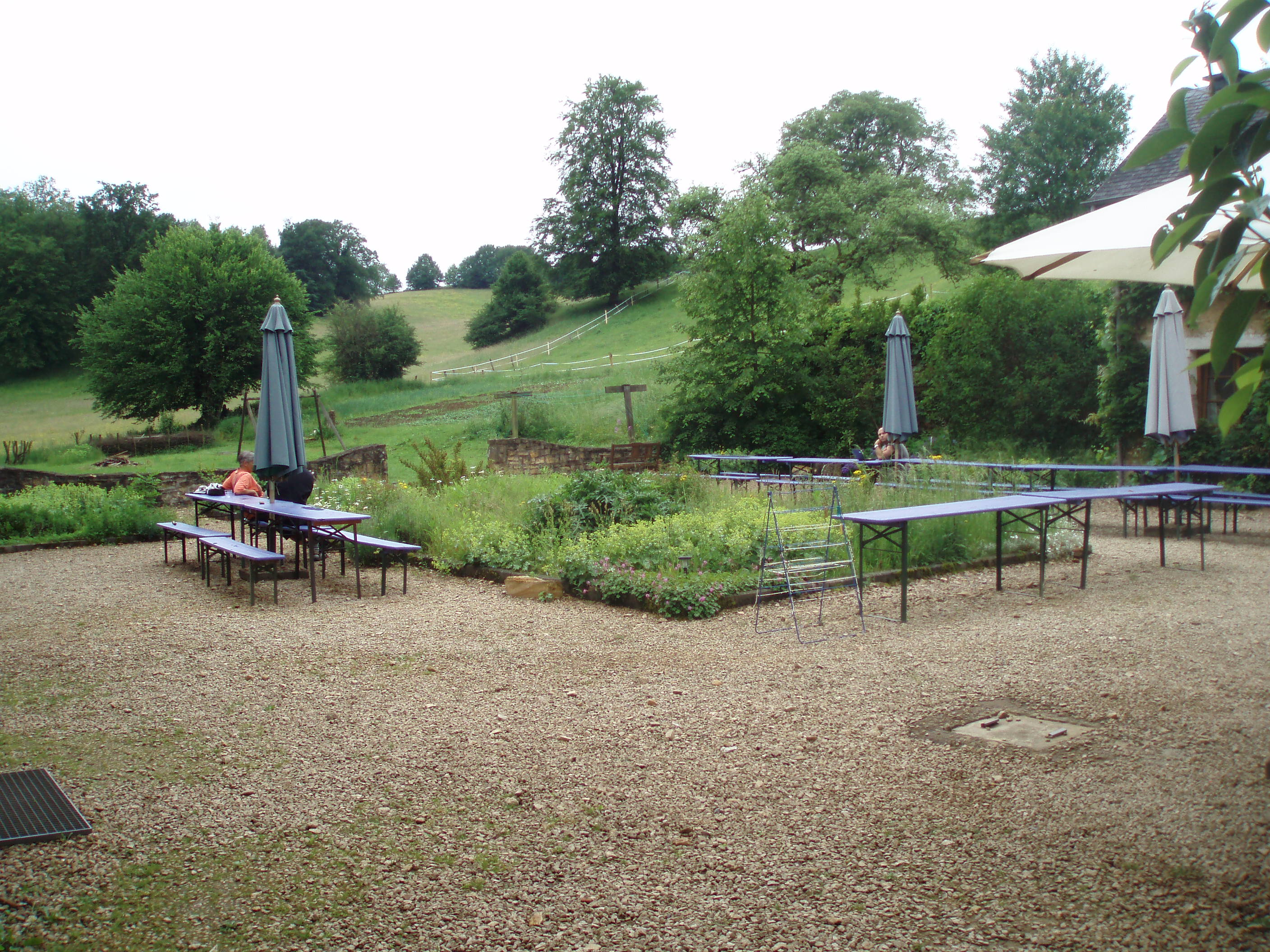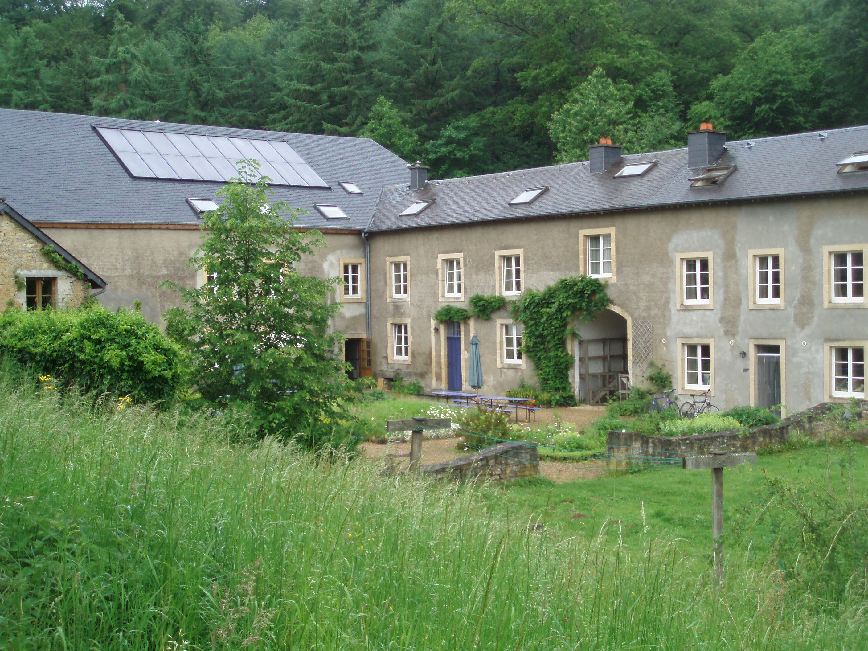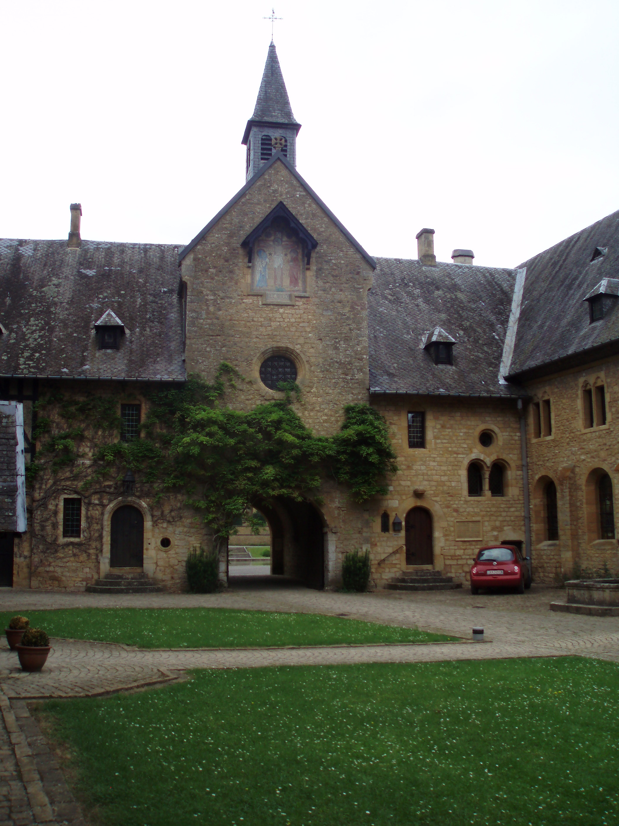 Well, we have been here at Bois le Comte in Villers-devant-Orval, Belgium for two days now. We arrived on Monday afternoon before dinner. We were already a little nervous about this place from the packet we received prior to our arrival and we knew it would be a bit of a change for us to eat vegetarian, but little did we know it would be more extreme: vegan macrobiotic. If you look it up you’ll know we eat a lot of grain-based items, including a grain coffee, and we eat a lot of beans and vegetables. Since it is mostly vegan we aren’t given anything that is produced by animals – eggs, chocolate, etc. Milk at breakfast is the only exception. Yay! So, needless to say, we have been quite hungry. We eat granola bars in our room at night and we may head down to the little grocery in the village to buy some other snacks soon…