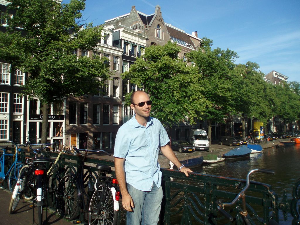 We made it to Amsterdam with no problem. Our train from Florenville was late and for a second I thought we were going to have to return to Bois le Comte for another night! Everything worked out fine; we didn’t have long waits between trains either. As we crossed into Holland Zach woke me up and we took in the flat beauty that is The Netherlands. It’s gorgeous in the sun. Flat, yes, but not Kansas or West Texas flat. It’s green. There are rows of vegetables, pockets of cattle (black and white!), horses in all sizes, ducks, traditional and modern windmills, and bike paths. It’s a pristine and precise landscape. Nothing appears to be out of order or happenstance, but intended.