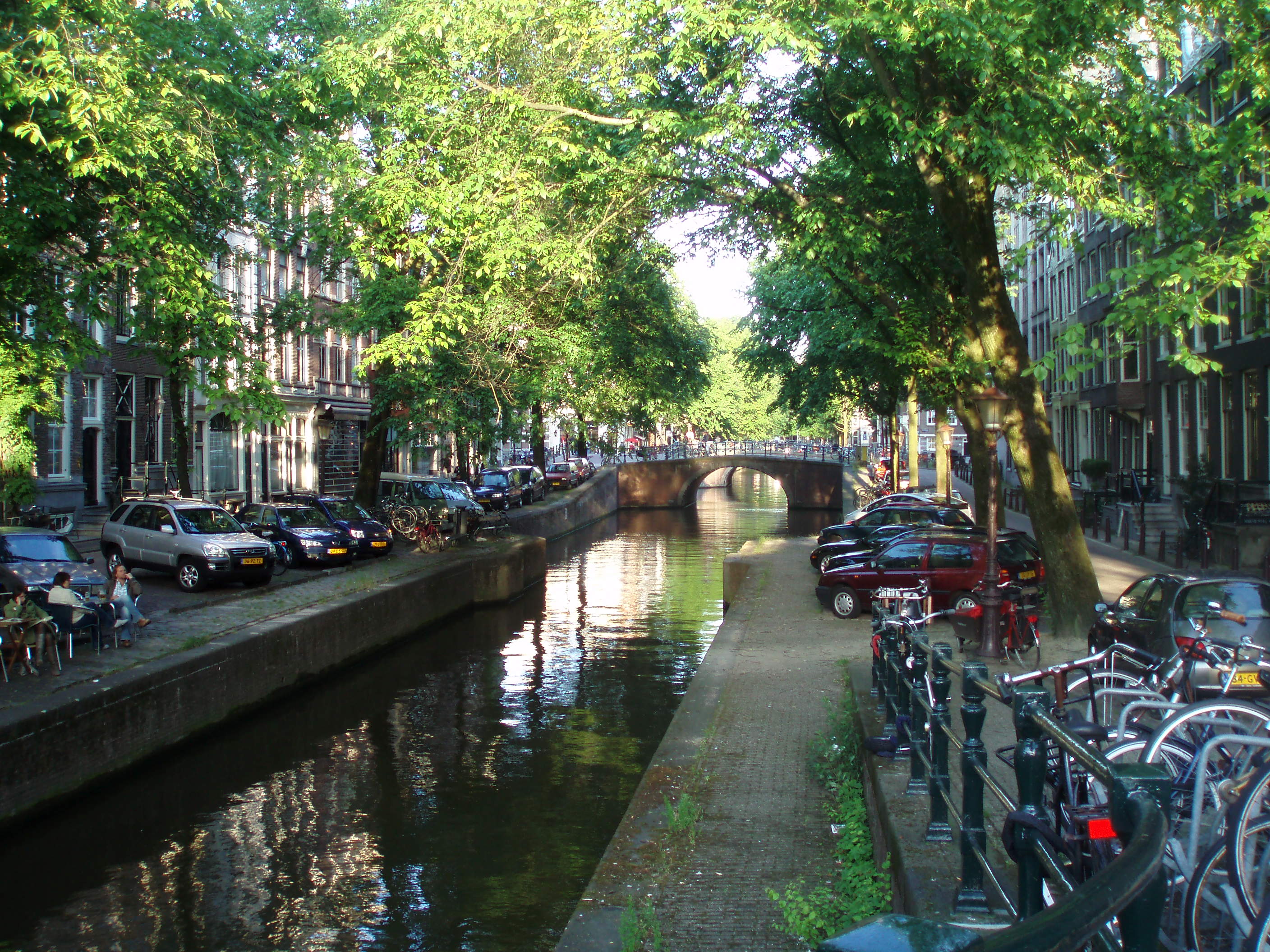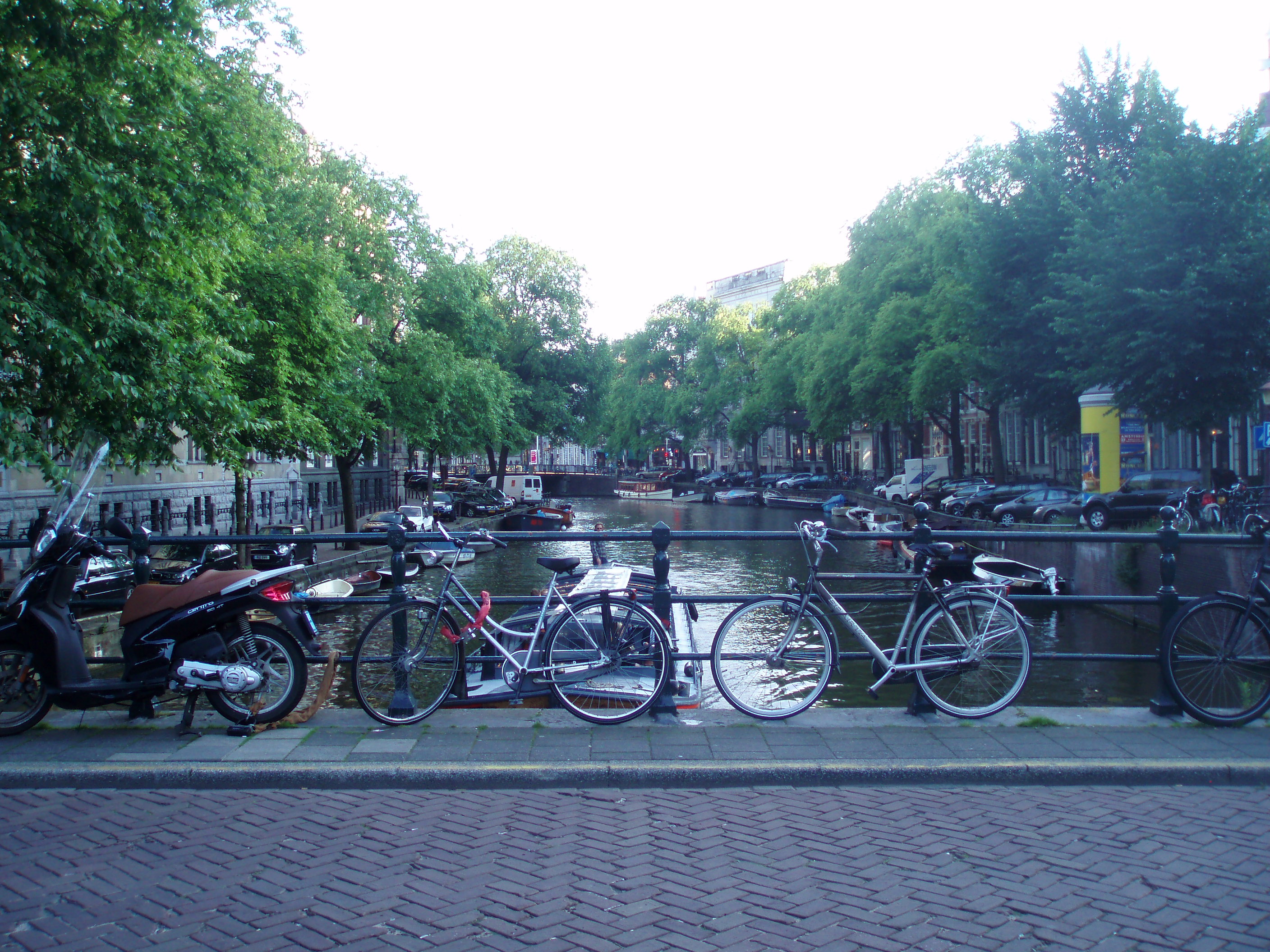 We made it to Amsterdam with no problem. Our train from Florenville was late and for a second I thought we were going to have to return to Bois le Comte for another night! Everything worked out fine; we didn’t have long waits between trains either. As we crossed into Holland Zach woke me up and we took in the flat beauty that is The Netherlands. It’s gorgeous in the sun. Flat, yes, but not Kansas or West Texas flat. It’s green. There are rows of vegetables, pockets of cattle (black and white!), horses in all sizes, ducks, traditional and modern windmills, and bike paths. It’s a pristine and precise landscape. Nothing appears to be out of order or happenstance, but intended.