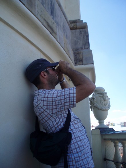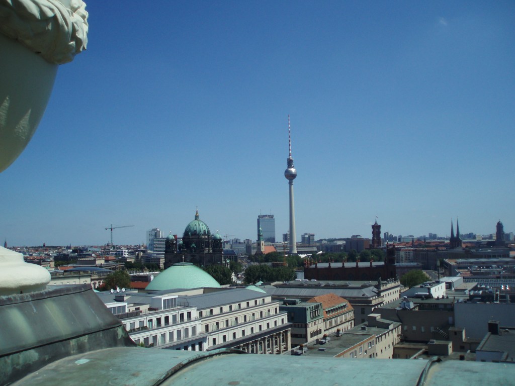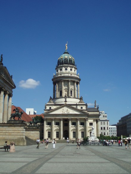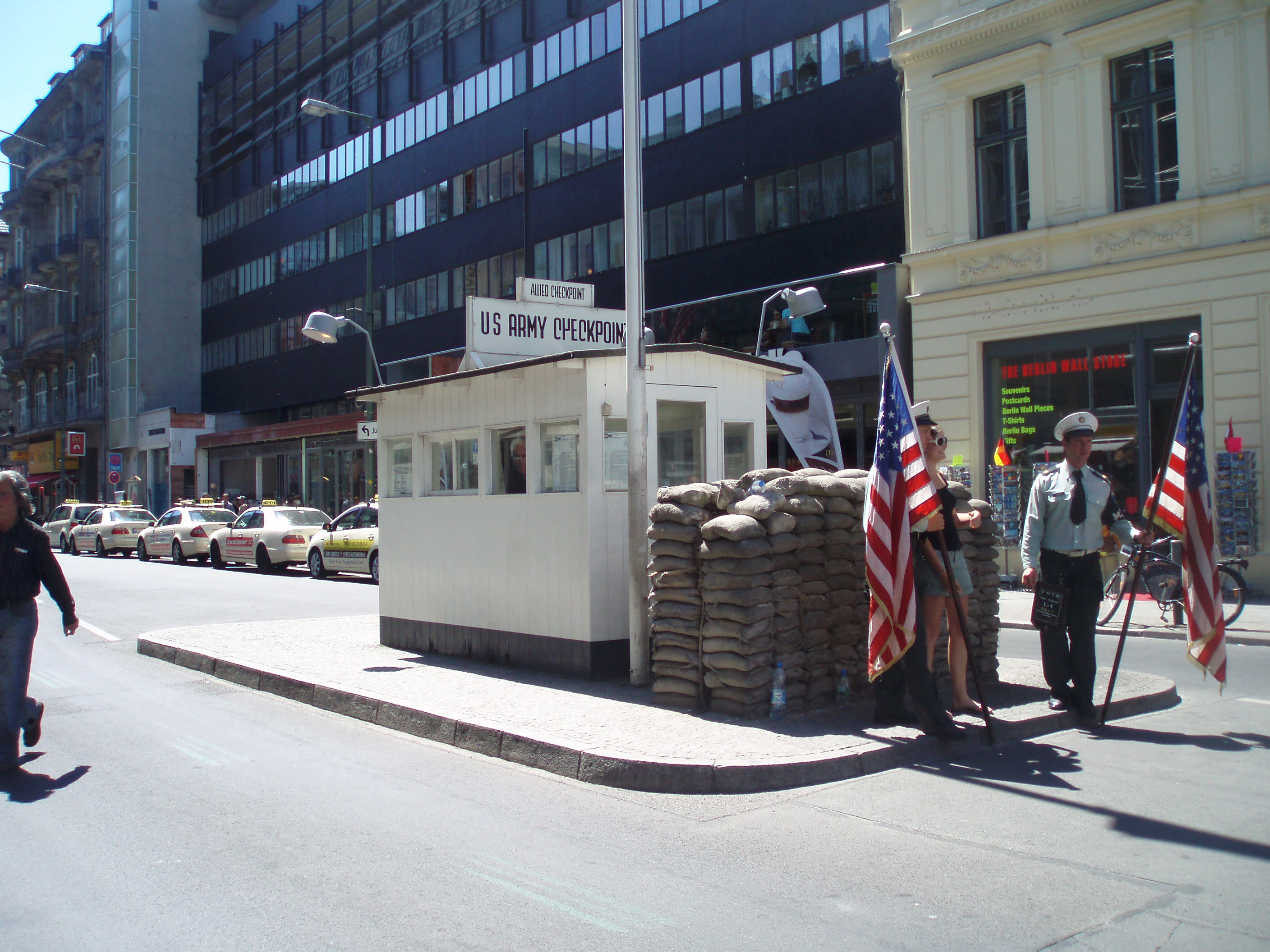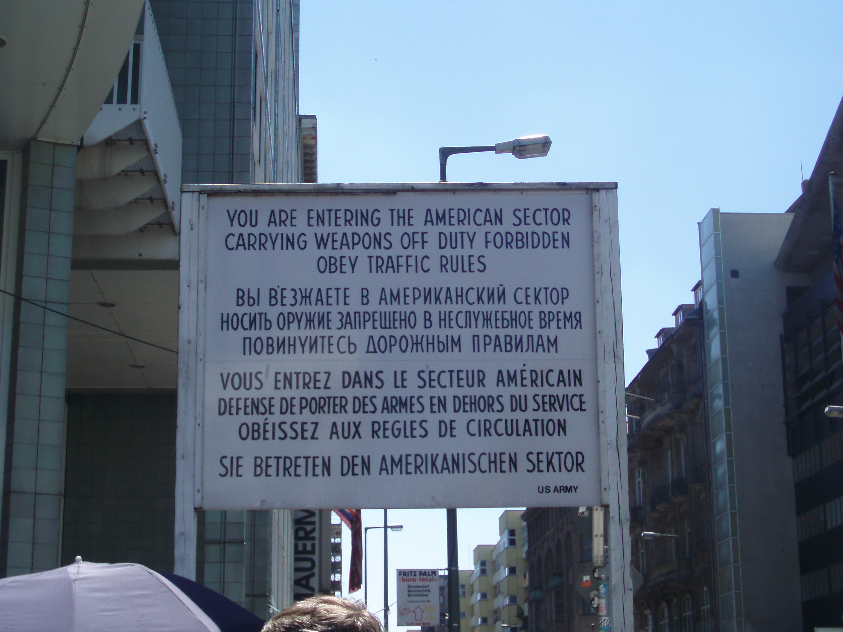 Sunday morning we got up a little late and headed out to Gendarmenmakt. It’s a plaza – some say one of the most beautiful in Europe – with the Konzerthaus in the middle of twin German and French cathedrals. The French cathedral, Franzosischer Dom, allows visitors into the dome for a small fee. Once at the top you can see all of Berlin. It was the perfect day for such a trek – blue skies, clear view. We had a little time to kill before the box office opened at the Konzerthaus so we walked down Friedrichstrasse to Checkpoint Charlie. An incredibly important historical marker of post-war Germany and the Cold War era, it has been exploited as a tourist attraction. Zach and I were greatly disappointed when we arrived and saw tourists taking pictures with men dressed as US soldiers and holding the American flag. It was a mecca for run-of-the-mill tourists; we didn’t stay more than a few minutes. However, along with the messy touristy site it has become, there was a wall filled with photos and the chronological events that led up to Checkpoint Charlie and the US/Soviet stand-off, as well as the reunification of Berlin. Then we walked back over to the Konzerthaus and bought discounted tickets for the afternoon performance of the Konzerthausorchester!