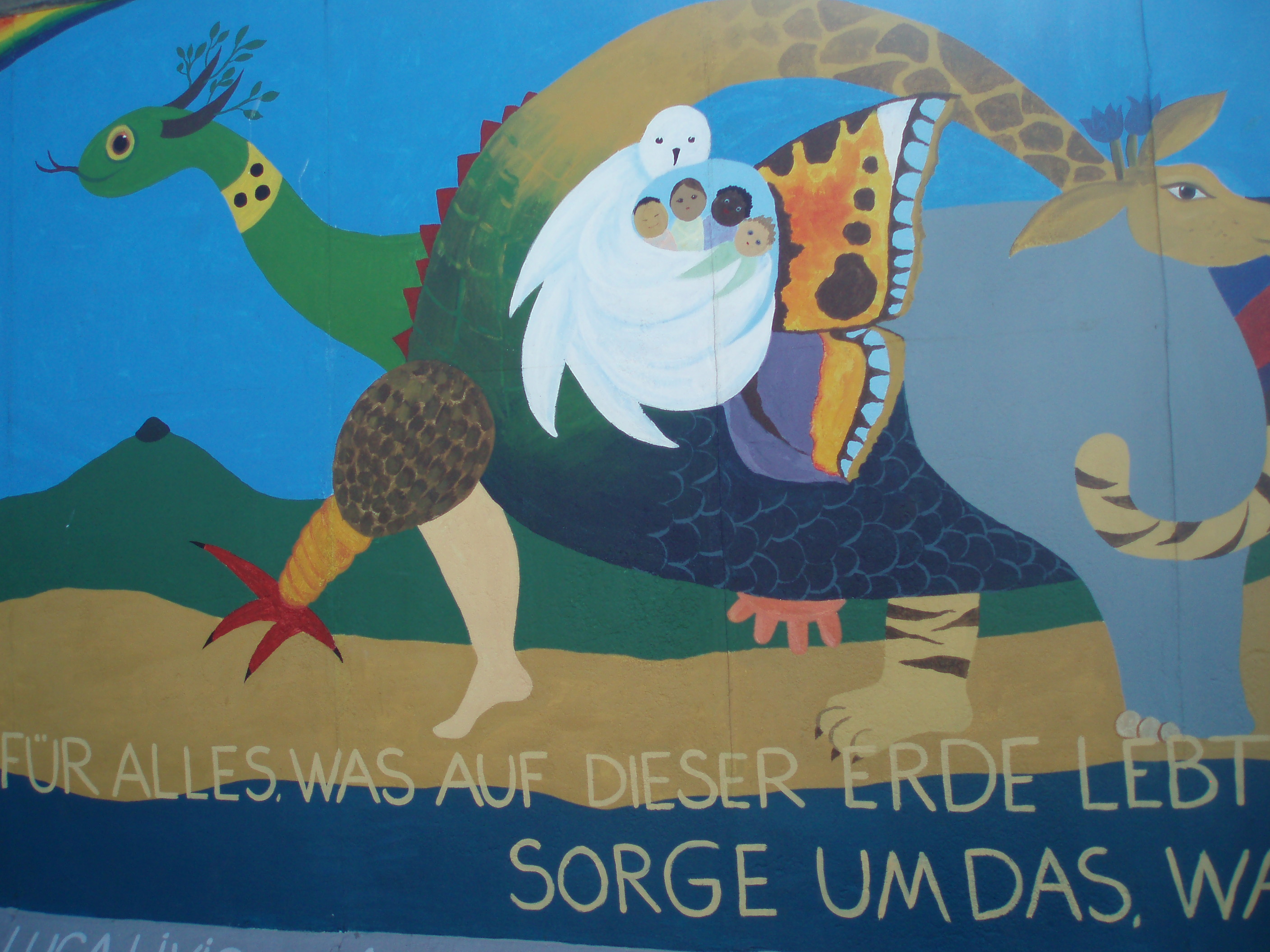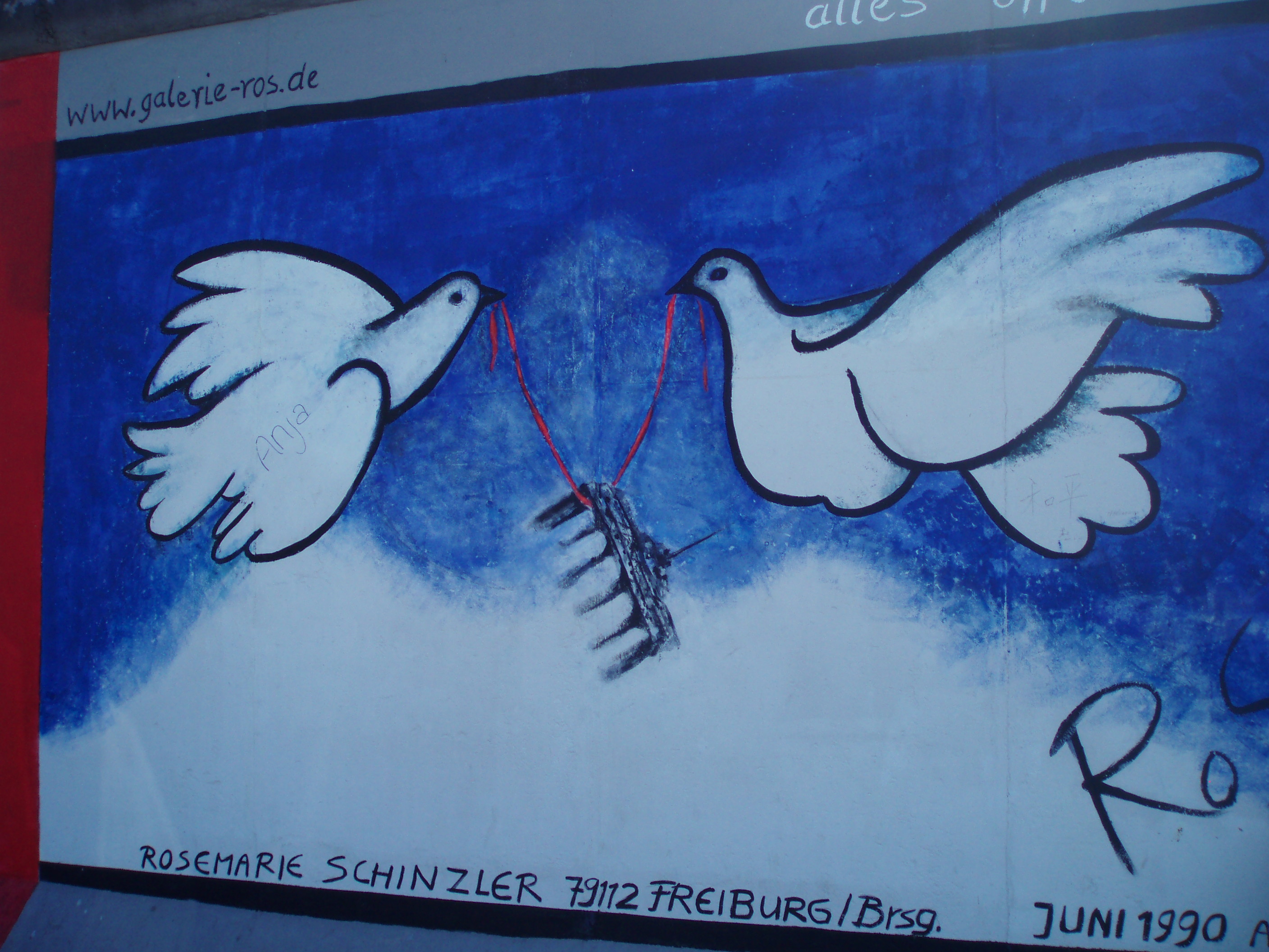 Since we had a couple of hours before the concert we decided to go over to the East Side Gallery. The East Side Gallery is a 1.3km stretch of the Berlin Wall that remained after the rest of the Wall was torn down in 1989. In 1990 artists from 21 different countries came to paint the Wall to celebrate its demolition. This part of the Wall now acts as an open-air gallery. It was incredible to see the artwork displayed across the Wall. We only walked a small part of the way, but we left inscriptions of our own on the Wall in a whitewashed space full of signatures, quotes, and drawings.