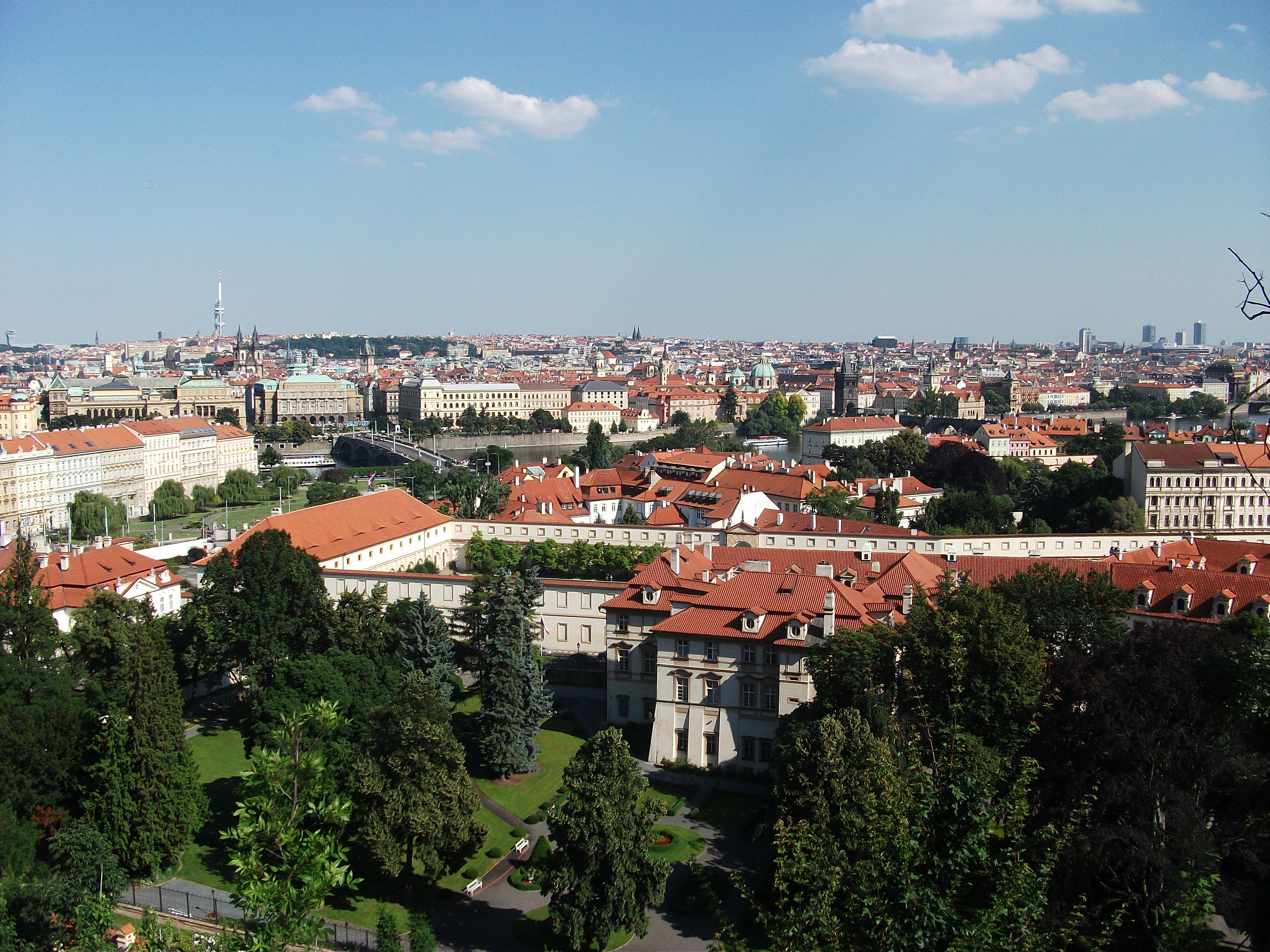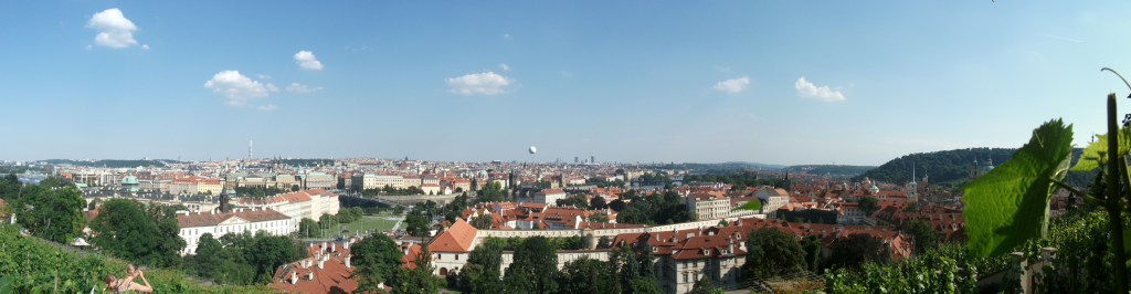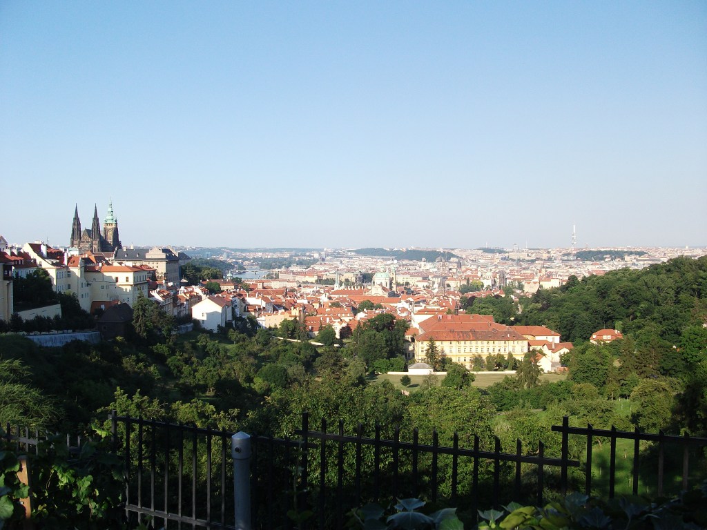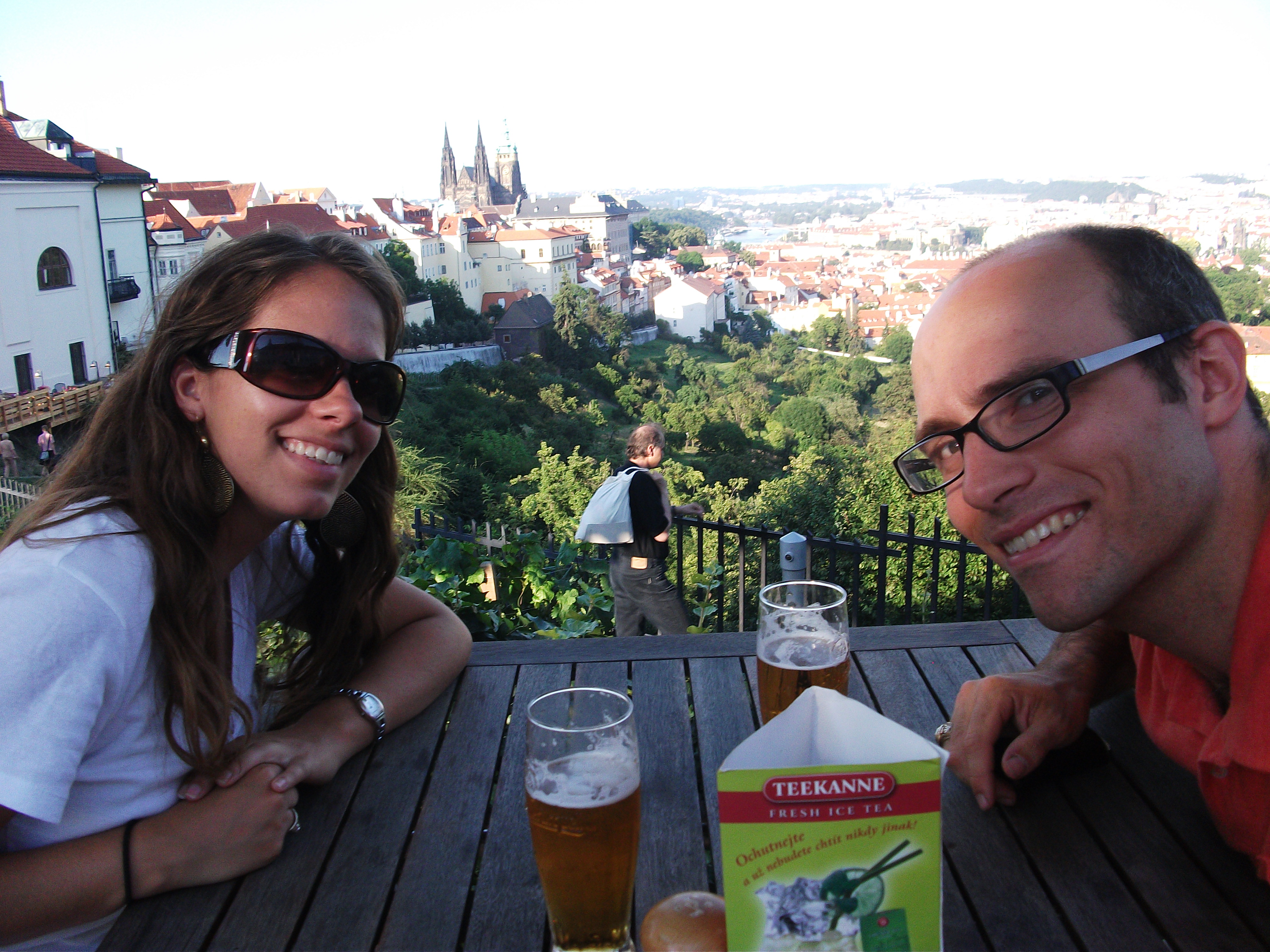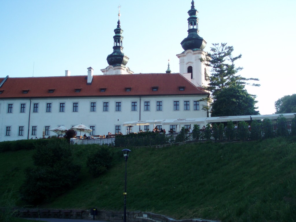 The next morning we decided to go into the city centre and explore some of the tourist sites. We hopped onto a tram and headed toward Prague Castle. The morning was nice. There were few tourists out and the streets were still quiet. We decided to have breakfast at Bohemia Bagel and plan the day. By the time we left, the tourists had awoken and were out in full swing. Crossing the Charles Bridge was an obstacle course; dodging an Asian tour group, families, and the elderly, the bridge lost its charm entirely. Once on the other side and in Old Town we visited the Rudolfinium, Old Town Square, and Municipal House. It was beginning to warm up and we didn’t have much direction – we were basically wandering around. It wasn’t ideal. After some fruit and a short rest in the grass by the main train station we decided to give up and visit Prague Castle. We bought tickets for the short visit and finished in less than an hour. It wasn’t much to see; in fact we could have gotten away with just strolling through the courtyard. The best part is the view of Prague from the castle. We ate some ice cream and looked out over Prague and then headed back down the hill. We caught a funicular back up to Petrin Hill and strolled through the quiet park to a monastery where we intended to eat and drink some of the beer. There were no seats however, so instead we picked a nice Italian restaurant, Bella Vista, which overlooked Prague. It was definitely a better view than the monastery.