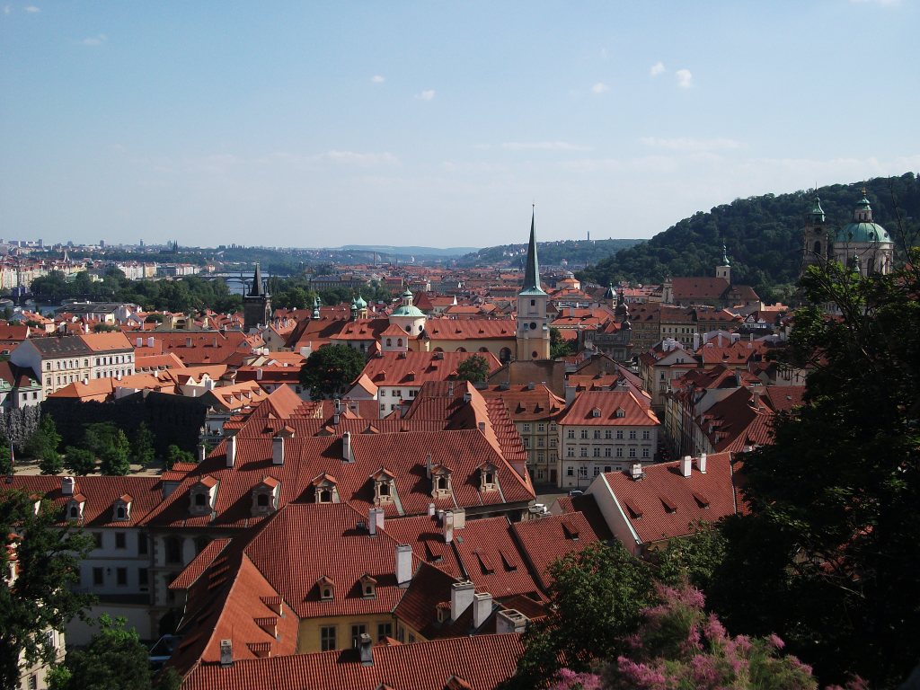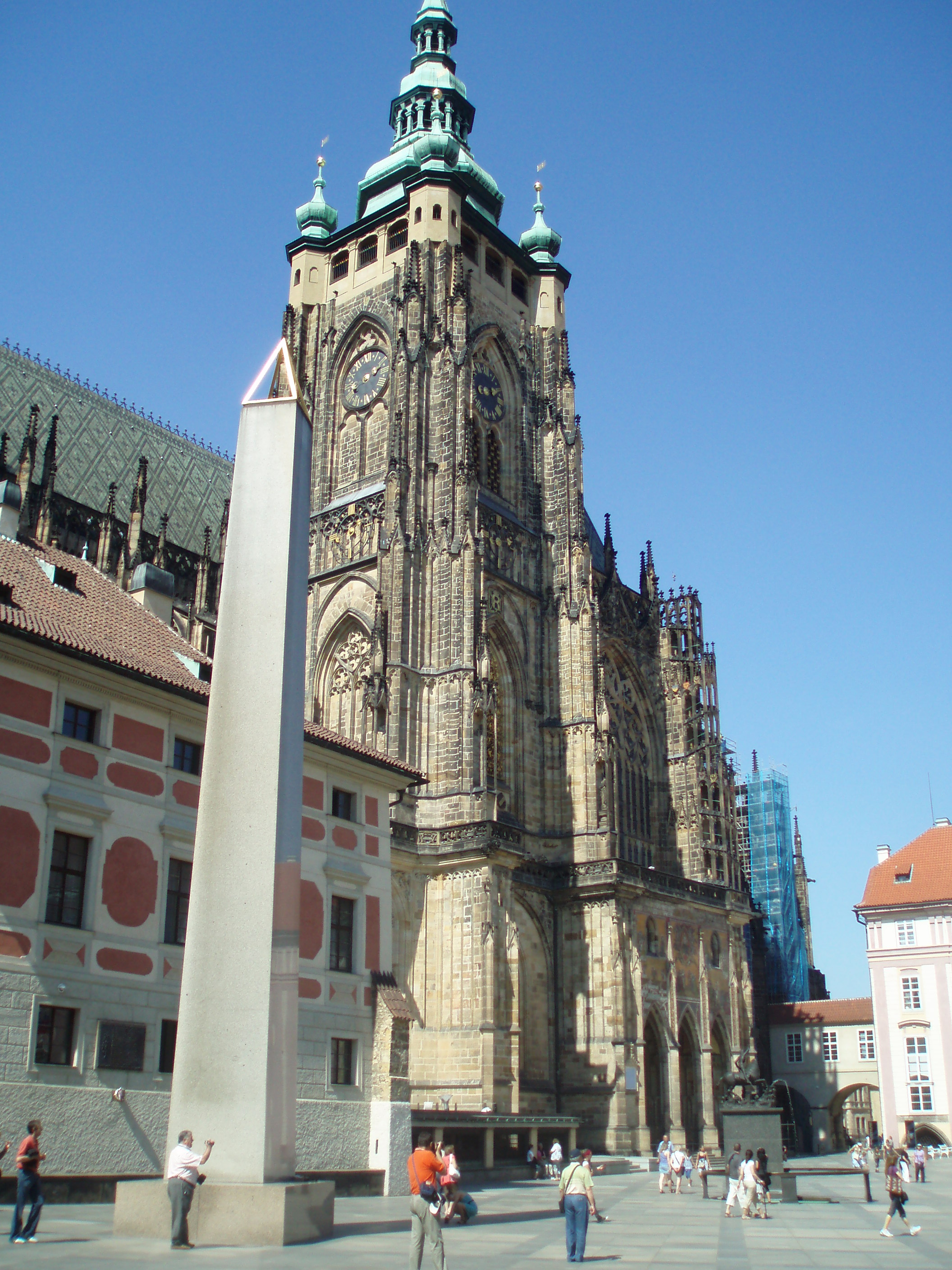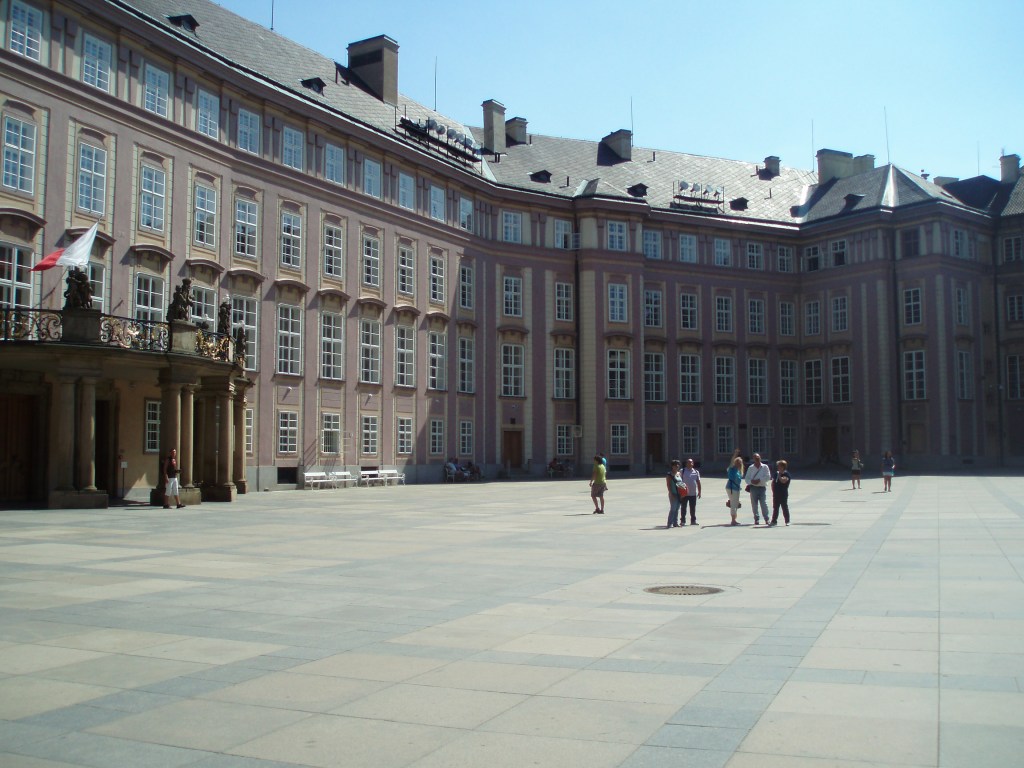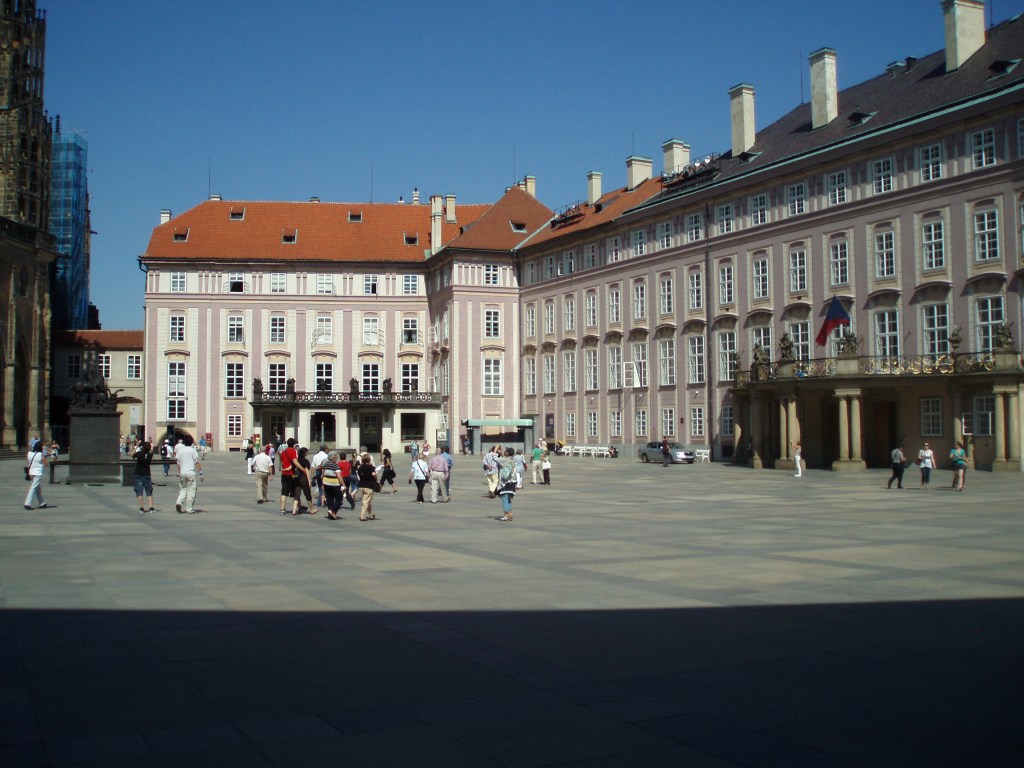 The next morning we decided to go into the city centre and explore some of the tourist sites. We hopped onto a tram and headed toward Prague Castle. The morning was nice. There were few tourists out and the streets were still quiet. We decided to have breakfast at Bohemia Bagel and plan the day. By the time we left, the tourists had awoken and were out in full swing. Crossing the Charles Bridge was an obstacle course; dodging an Asian tour group, families, and the elderly, the bridge lost its charm entirely. Once on the other side and in Old Town we visited the Rudolfinium, Old Town Square, and Municipal House. It was beginning to warm up and we didn’t have much direction – we were basically wandering around. It wasn’t ideal. After some fruit and a short rest in the grass by the main train station we decided to give up and visit Prague Castle. We bought tickets for the short visit and finished in less than an hour. It wasn’t much to see; in fact we could have gotten away with just strolling through the courtyard. The best part is the view of Prague from the castle. We ate some ice cream and looked out over Prague and then headed back down the hill. We caught a funicular back up to Petrin Hill and strolled through the quiet park to a monastery where we intended to eat and drink some of the beer. There were no seats however, so instead we picked a nice Italian restaurant, Bella Vista, which overlooked Prague. It was definitely a better view than the monastery.