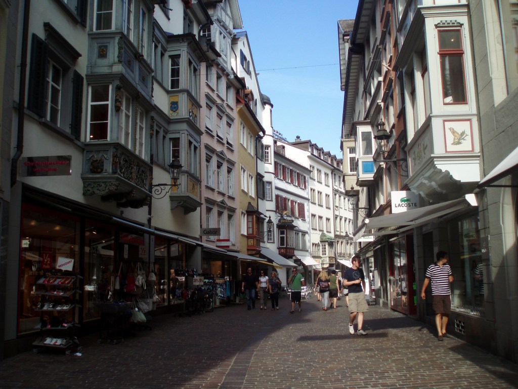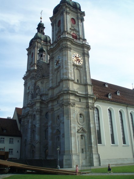 We arrived in St. Gallen around 4pm and our host, Cristof, picked us up from the train station – which was awesome! It’s the first time anyone has done that for us this entire trip! We relaxed a little bit at the flat before venturing out. We had plans to meet Roger – a friend of Zach’s dad – at seven so we wandered around the town a little bit. It’s surreal. Everything looks so quintessentially Swiss. We walked inside the main cathedral – wow. It’s one of the most beautiful churches we have been in so far. We walked in during a service so I didn’t take any pictures, but we will go back before we leave.