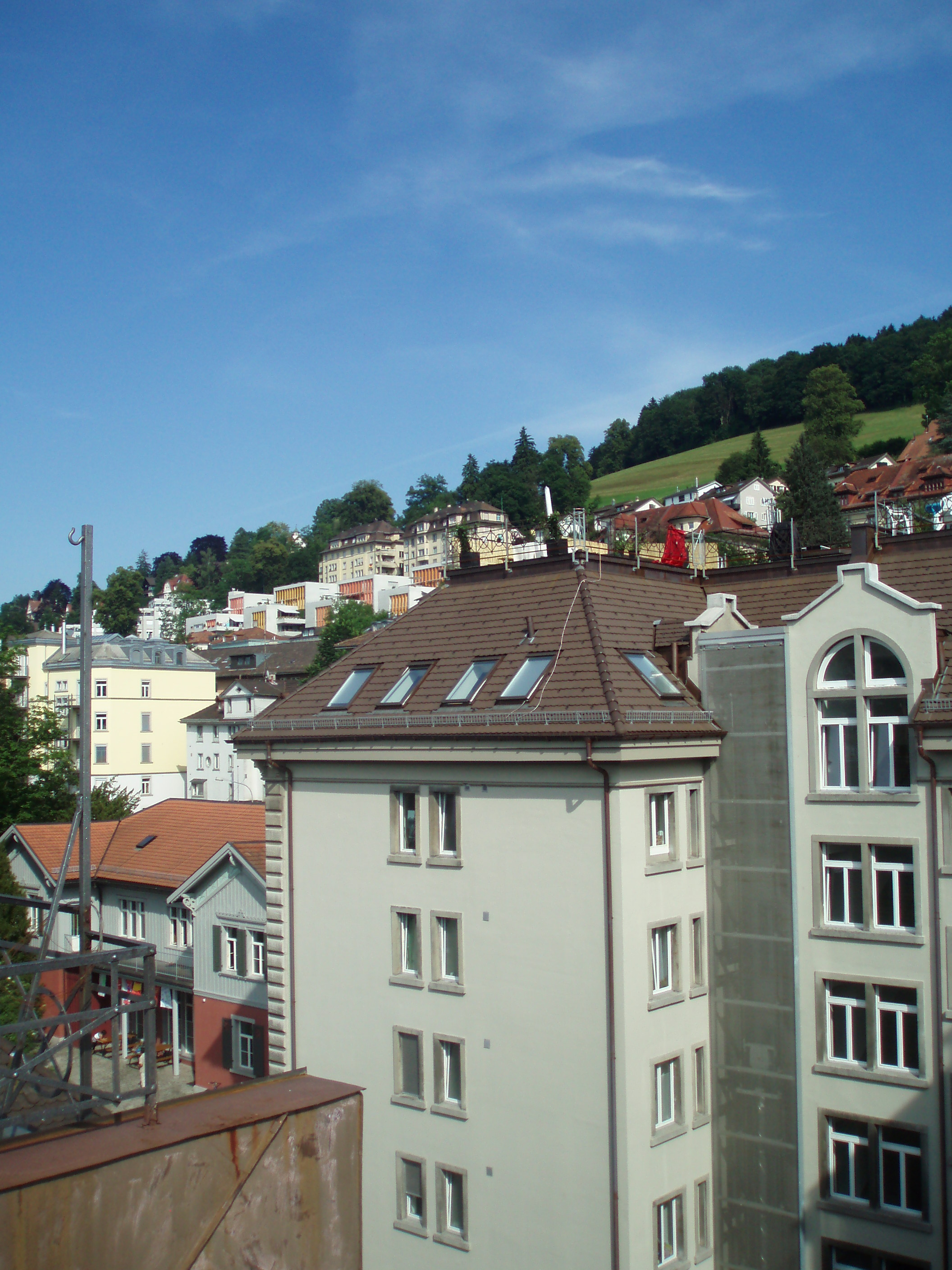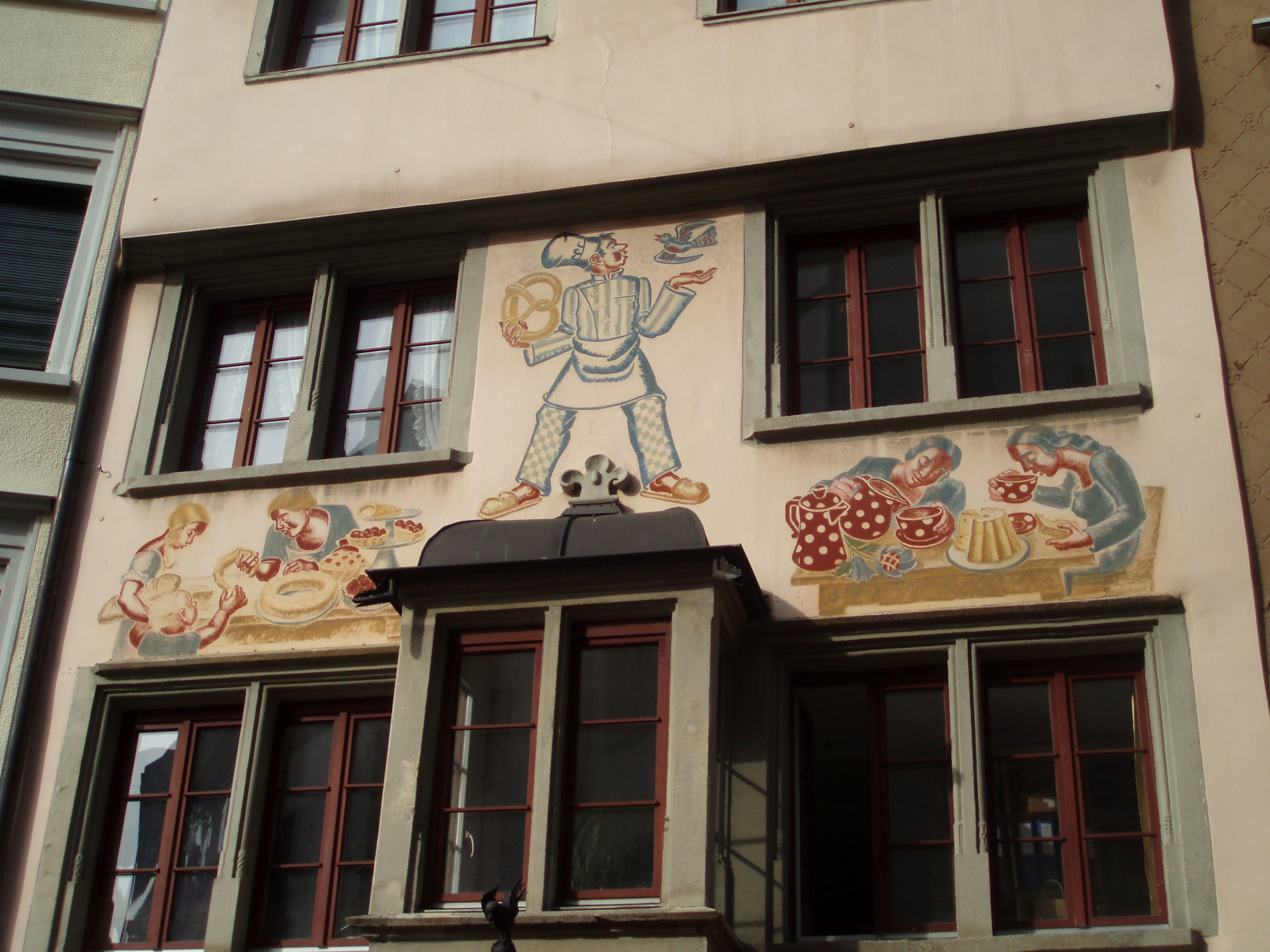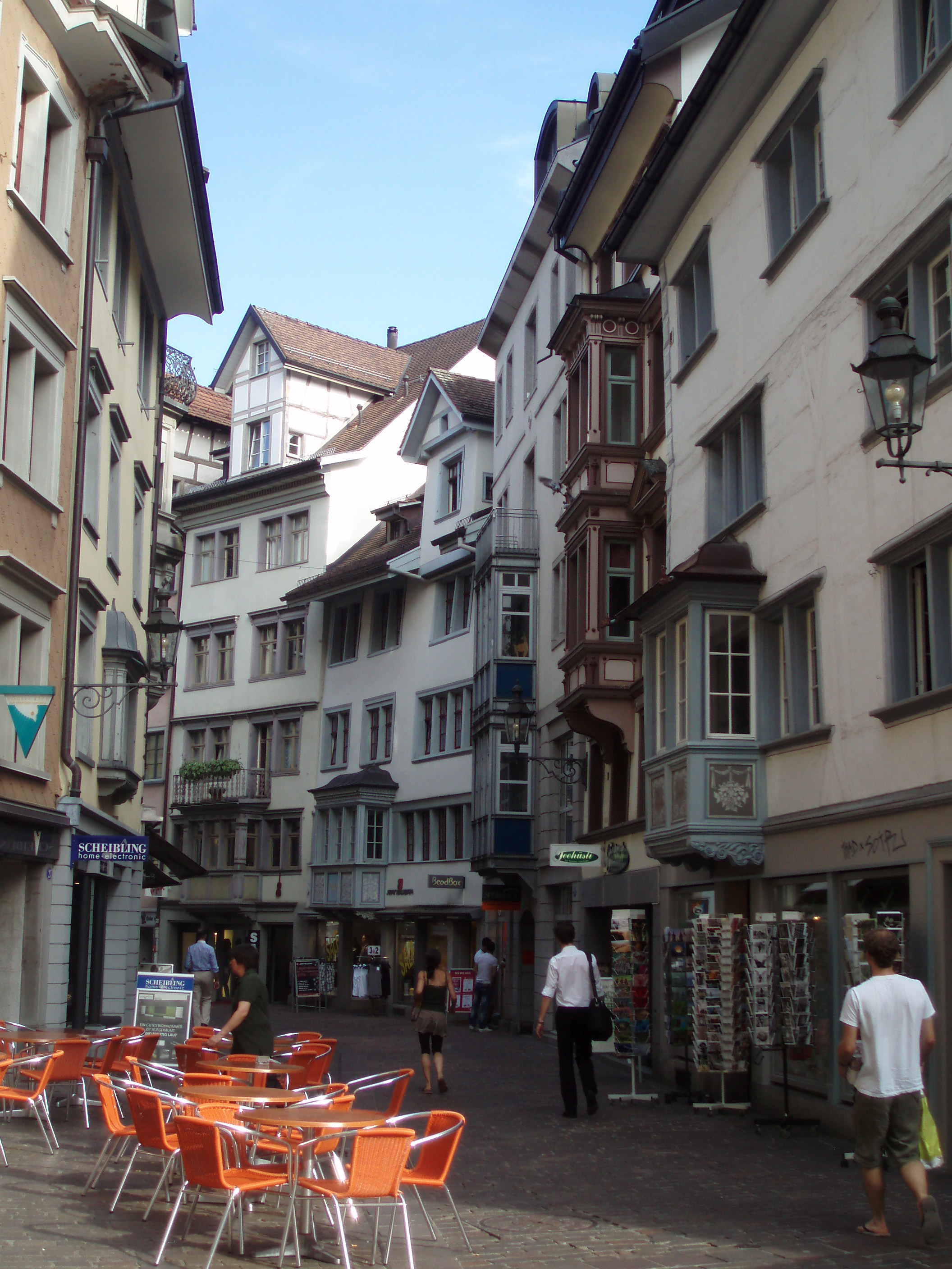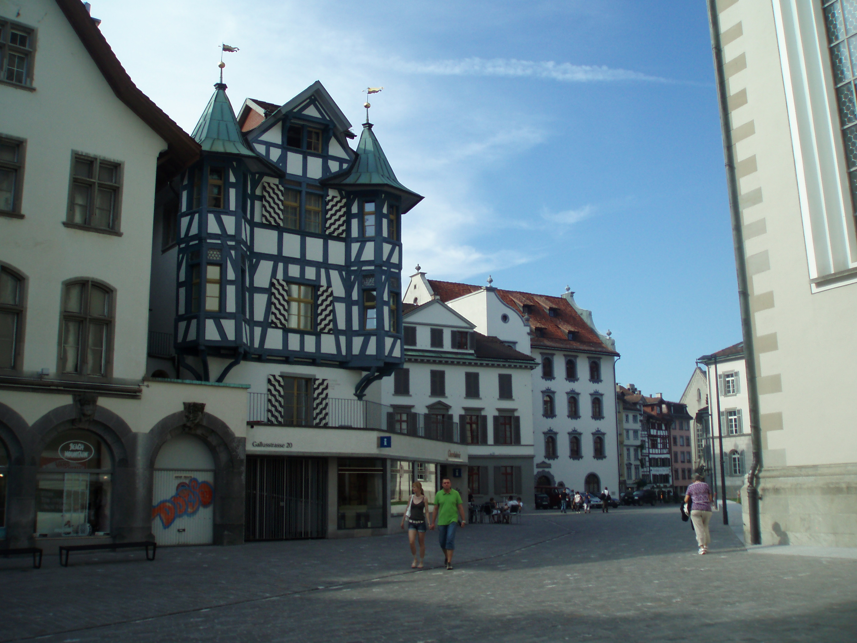 We arrived in St. Gallen around 4pm and our host, Cristof, picked us up from the train station – which was awesome! It’s the first time anyone has done that for us this entire trip! We relaxed a little bit at the flat before venturing out. We had plans to meet Roger – a friend of Zach’s dad – at seven so we wandered around the town a little bit. It’s surreal. Everything looks so quintessentially Swiss. We walked inside the main cathedral – wow. It’s one of the most beautiful churches we have been in so far. We walked in during a service so I didn’t take any pictures, but we will go back before we leave.