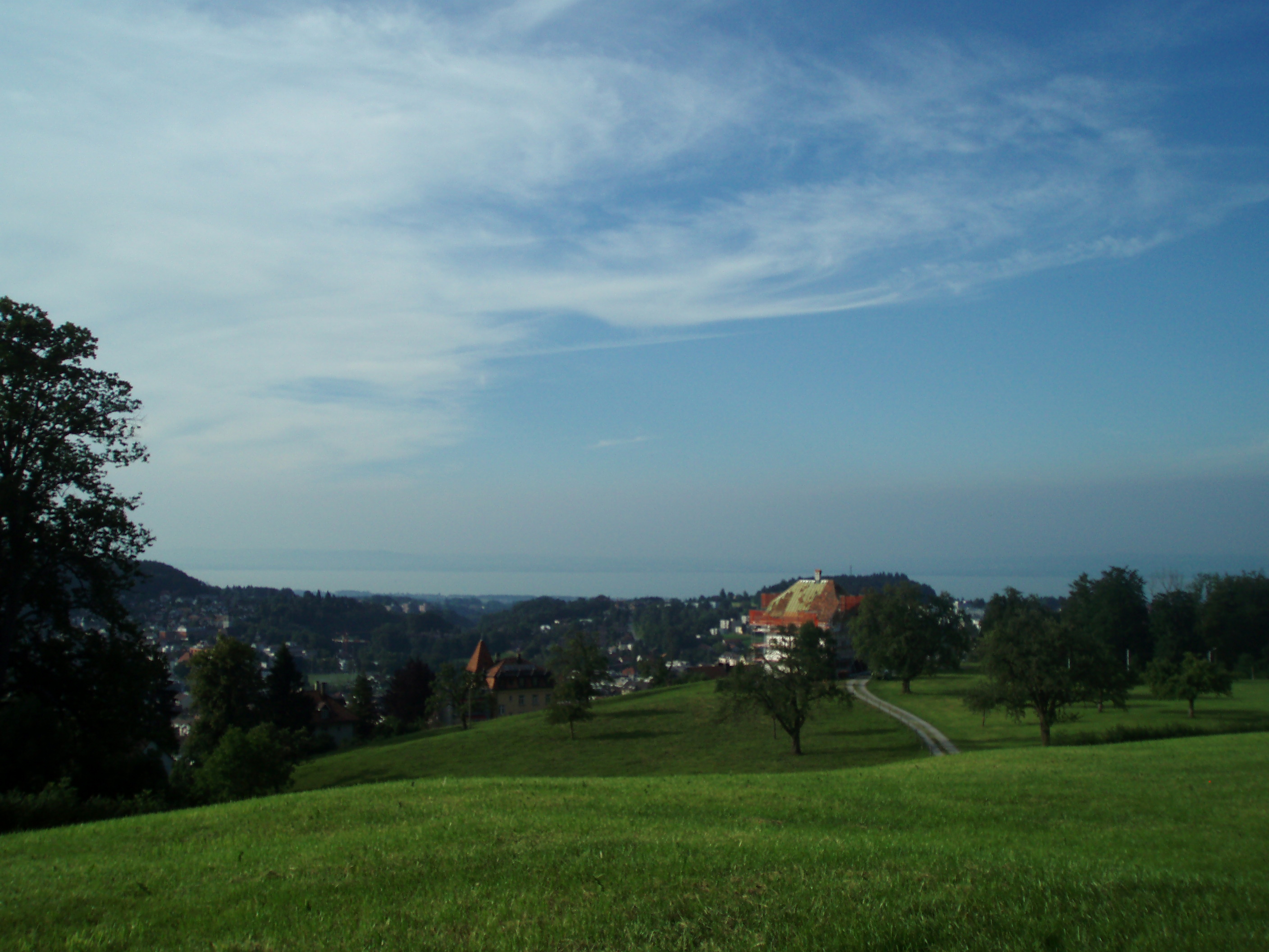 Now we are in Switzerland! When we crossed the border at Lindau I saw Lake Constance out the window and was stunned. What a gorgeous landscape. It was like riding through a postcard scene. The water was a beautiful turquoise color and there were mountains in the distance – wow.