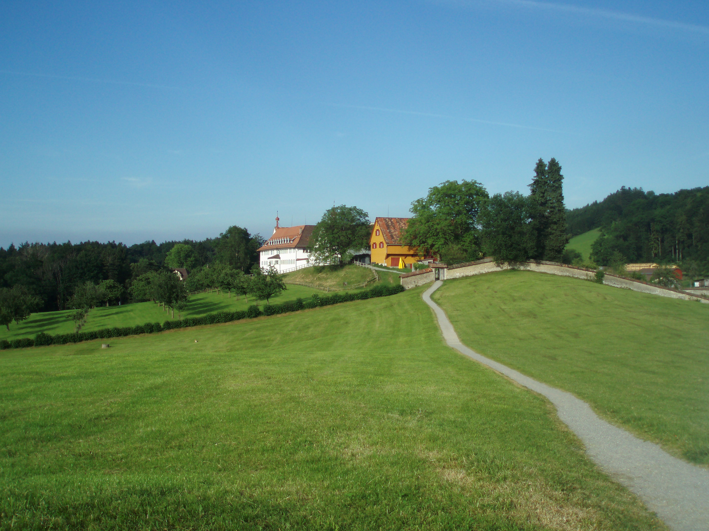 We met Roger, Josef, and Peter in front of that church and they took us to a restaurant overlooking the entire valley. They had reserved a table to ensure we had the best view while we ate! The view was fantastic – we could see Lake Constance in the distance – and the food was amazing! I had cordon bleu made with St. Gallen cheese and Zach had a huge hunk of lamb. We had the St. Gallen beer, Schutzengarten, and a nice Cabernet also. After our long, European dinner we headed back down the mountain to their favorite place, Tres Amigos, for some margaritas. Not exactly the type of margarita I had expected, but there were delicious; a frozen mango maracuya (passionflower) margarita. We met the owner, David, who is from the Gulf of Mexico and then we surprised Zach’s dad by calling him and passing the phone around the table. It was a fun end to a lovely beginning in Switzerland.