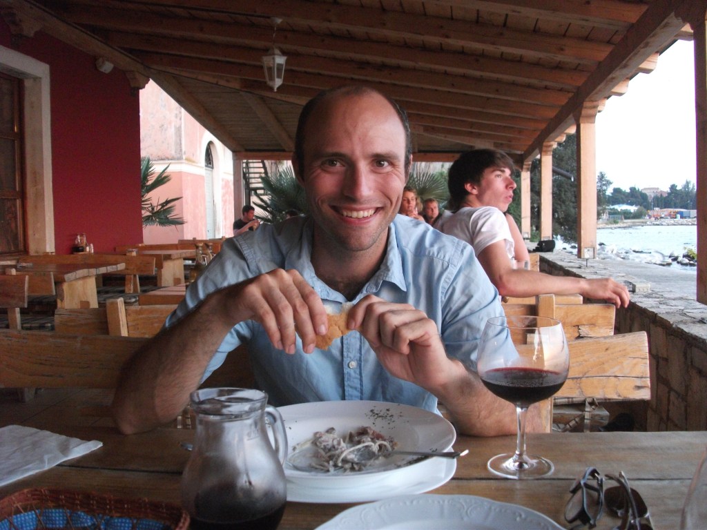 We stayed out there for a few hours and then headed back toward Poreč to catch dinner and the sunset. There was a restaurant close to our apartment which had the perfect view of the sunset over the sea – incidentally it was called Sunset Restaurant… a little reminiscent of The Oasis, but cheaper! It was a lovely dinner and a gorgeous sunset over the water – a very picturesque end to our vacation from traveling.