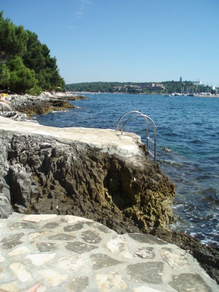 Only one month left of our travels. Yesterday we relaxed quite a bit. We slept late and lazed around a little. We went into the centre and did a little gift shopping and then returned to our apartment for a spaghetti lunch. After a little more lazing around, we headed out to the beach. We decided to try a different spot for our final day so we took a little tourist train to Plava Laguna. Plava Laguna is home to a really nice resort and it ended up being perfect for our last day of sunbathing. The water was refreshingly cool.
