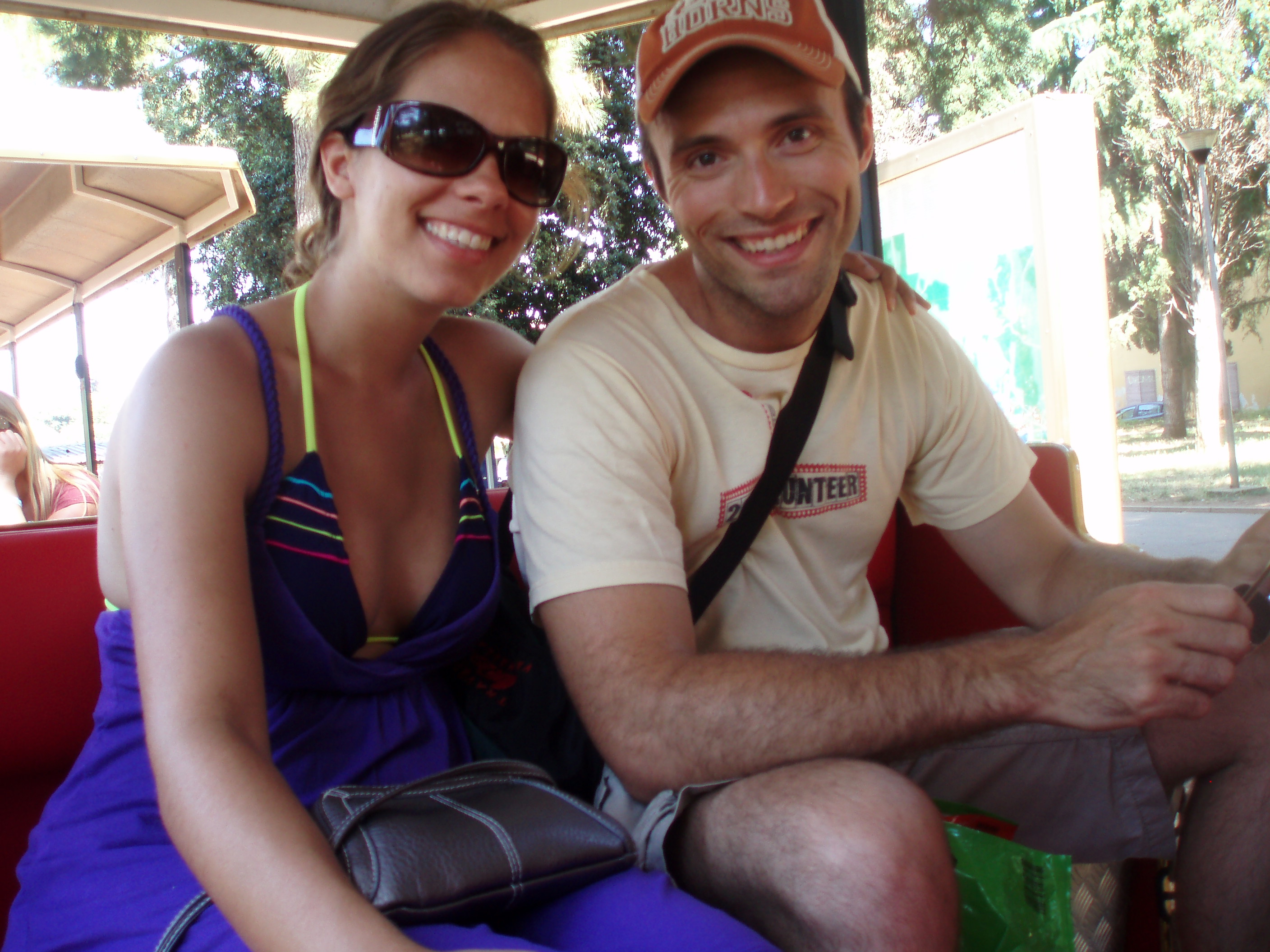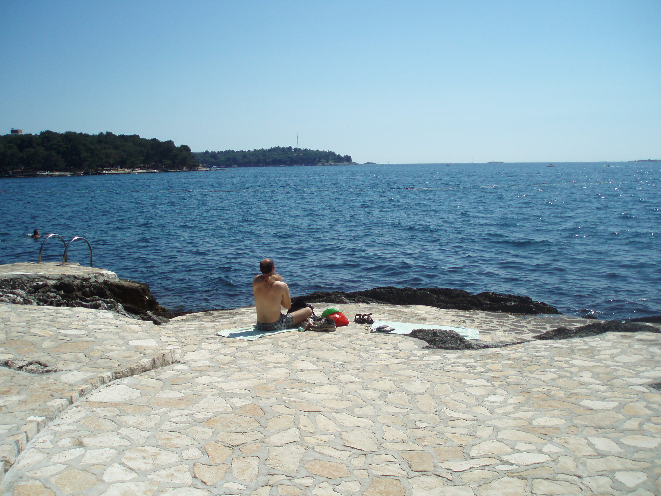 Only one month left of our travels. Yesterday we relaxed quite a bit. We slept late and lazed around a little. We went into the centre and did a little gift shopping and then returned to our apartment for a spaghetti lunch. After a little more lazing around, we headed out to the beach. We decided to try a different spot for our final day so we took a little tourist train to Plava Laguna. Plava Laguna is home to a really nice resort and it ended up being perfect for our last day of sunbathing. The water was refreshingly cool.