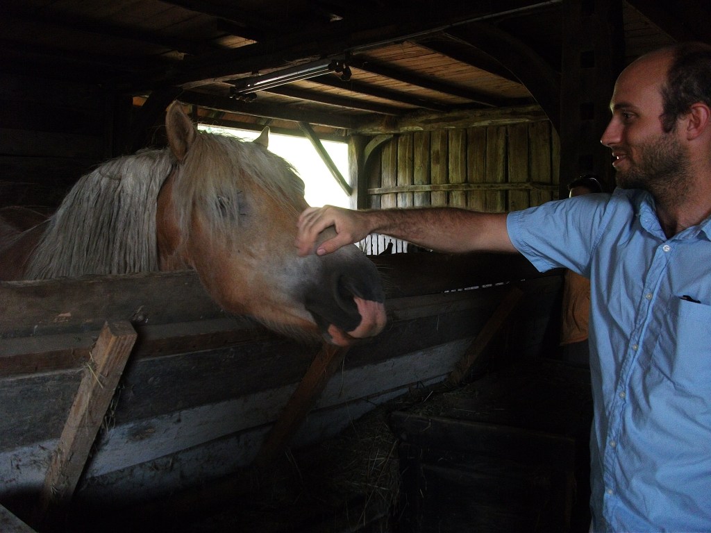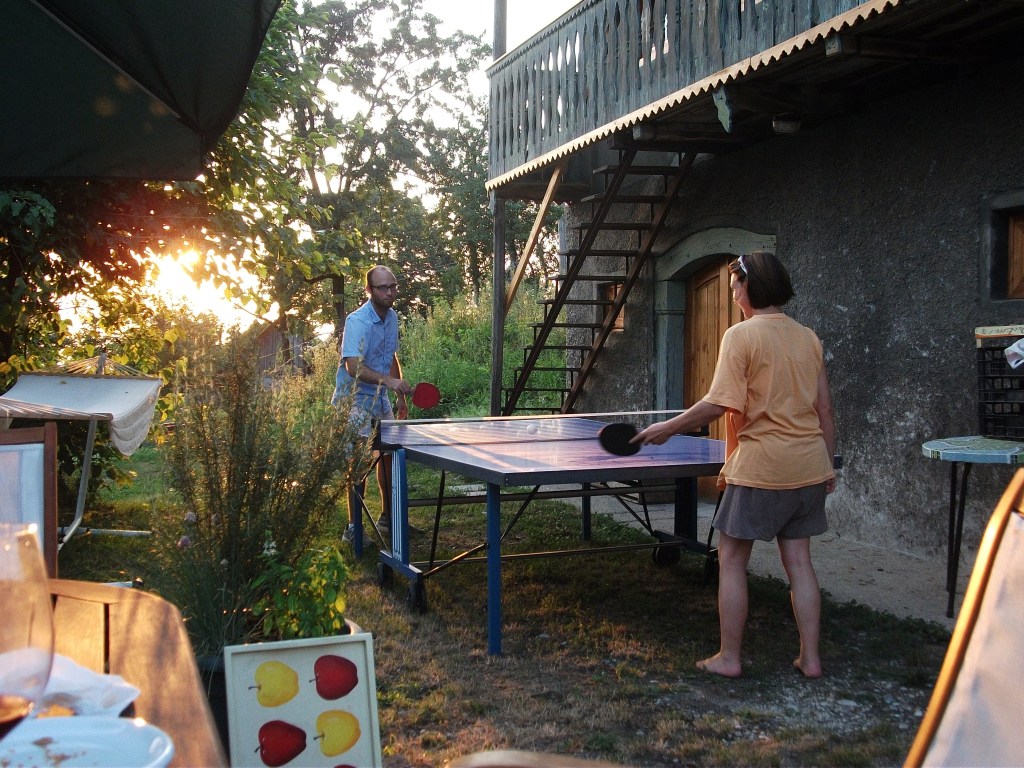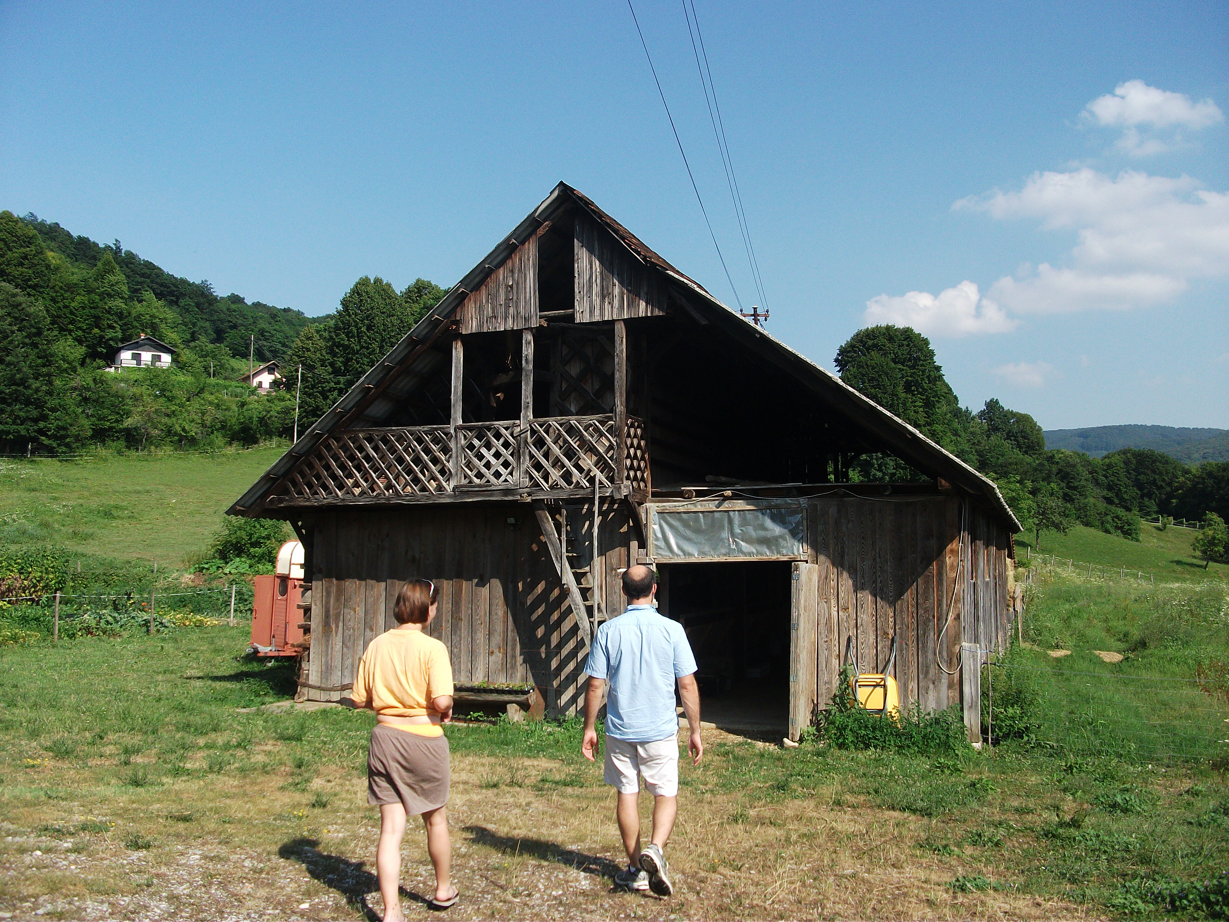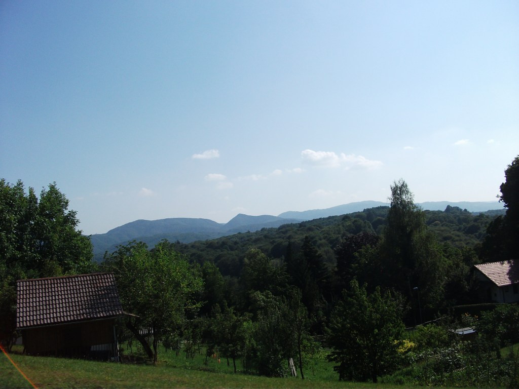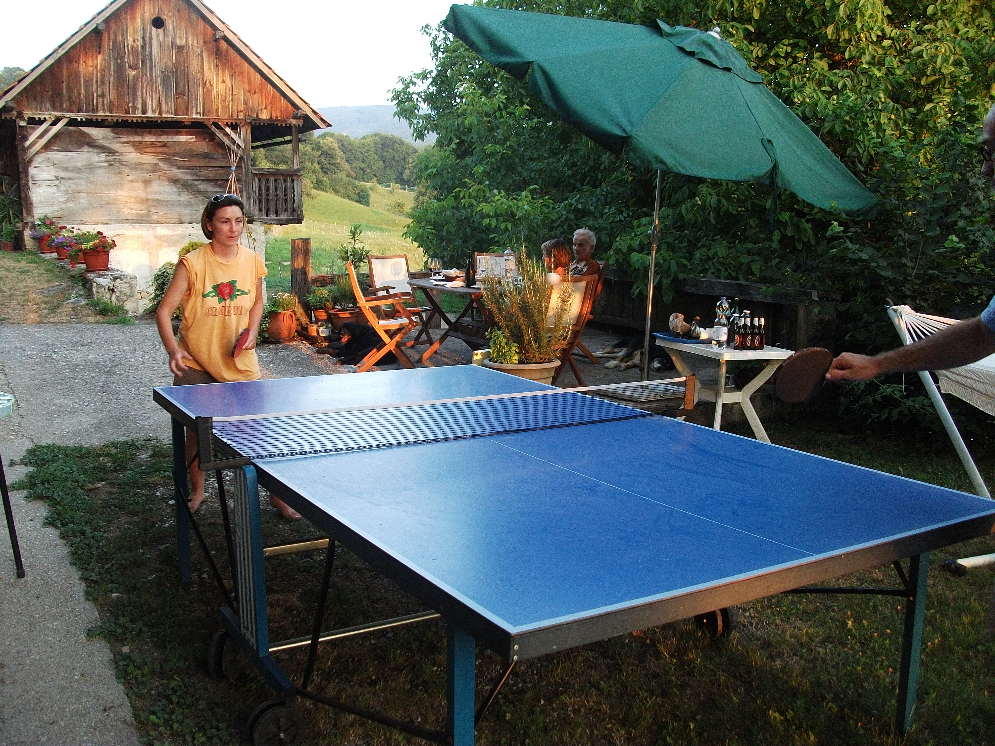 The dinner at Josie’s (the British ex-pat) on Friday night was wonderful. She played hostess incredibly well – snacks and beer when we arrived, homemade elderflower soda, homemade salami, Slovenian wine with basque chicken, salad, a cheese course with french bread and a heavier Slovenian wine, and the finale: double chocolate brownies with walnut ice cream. It was fantastic! We played a little ping pong and became friends with the horses – Bob and Bryn. It was still pretty hot in the afternoon when we arrived, but as evening set it cooled down. And best of all, she had a real bathroom! We both enjoyed our little dinner party and the chance to hear someone else’s opinion of Slovenia.
