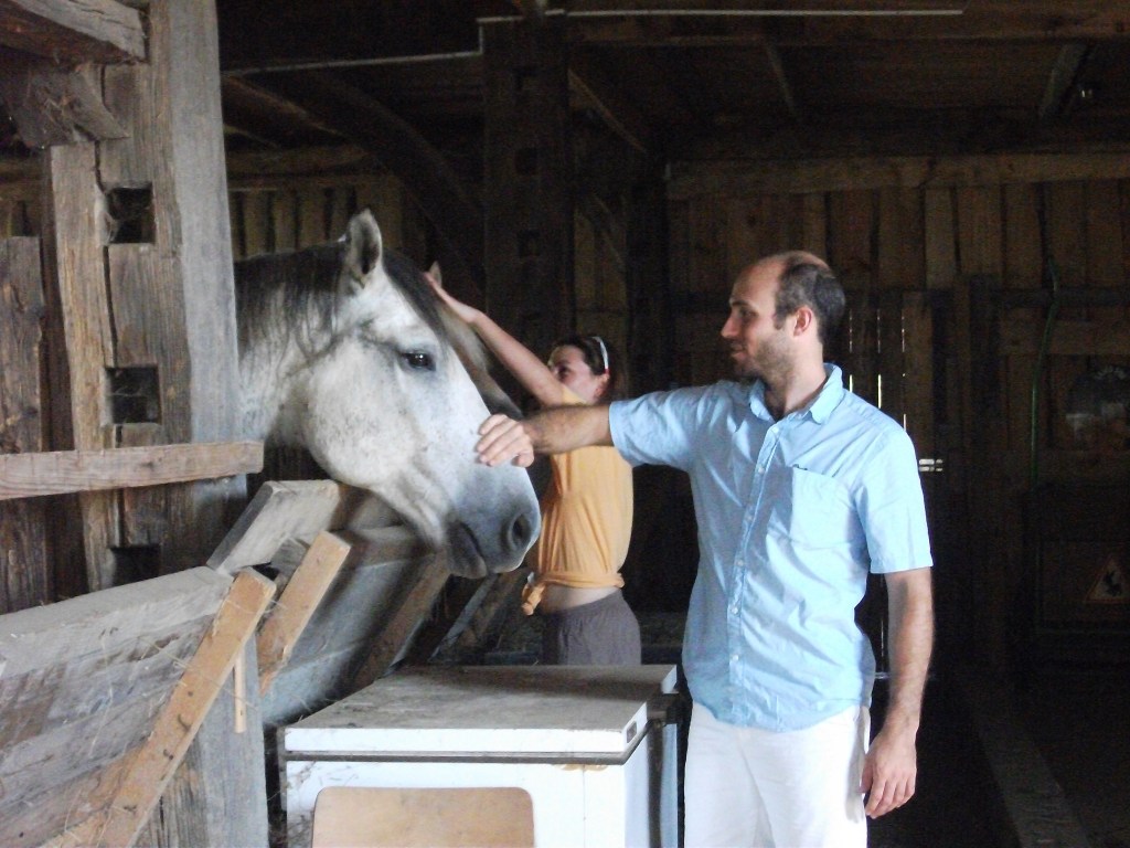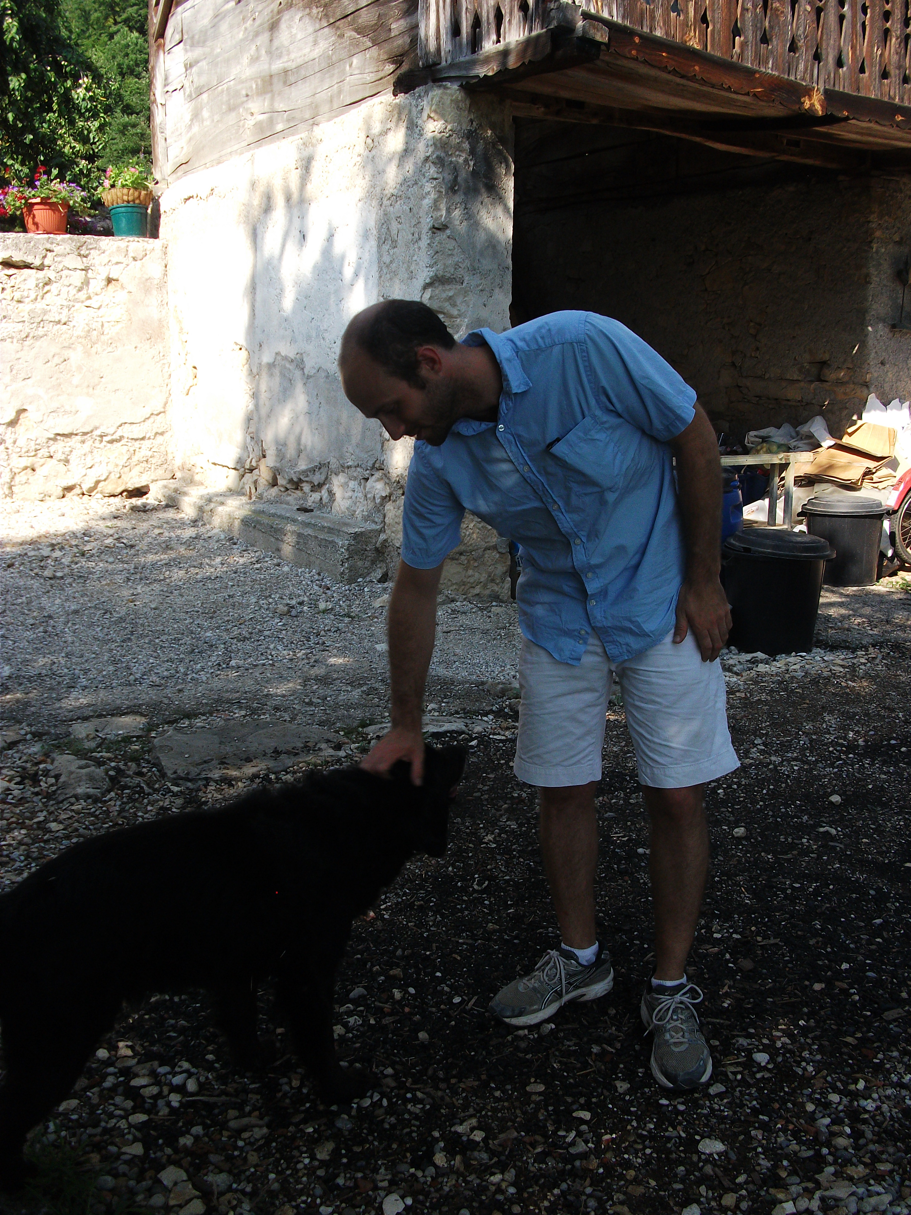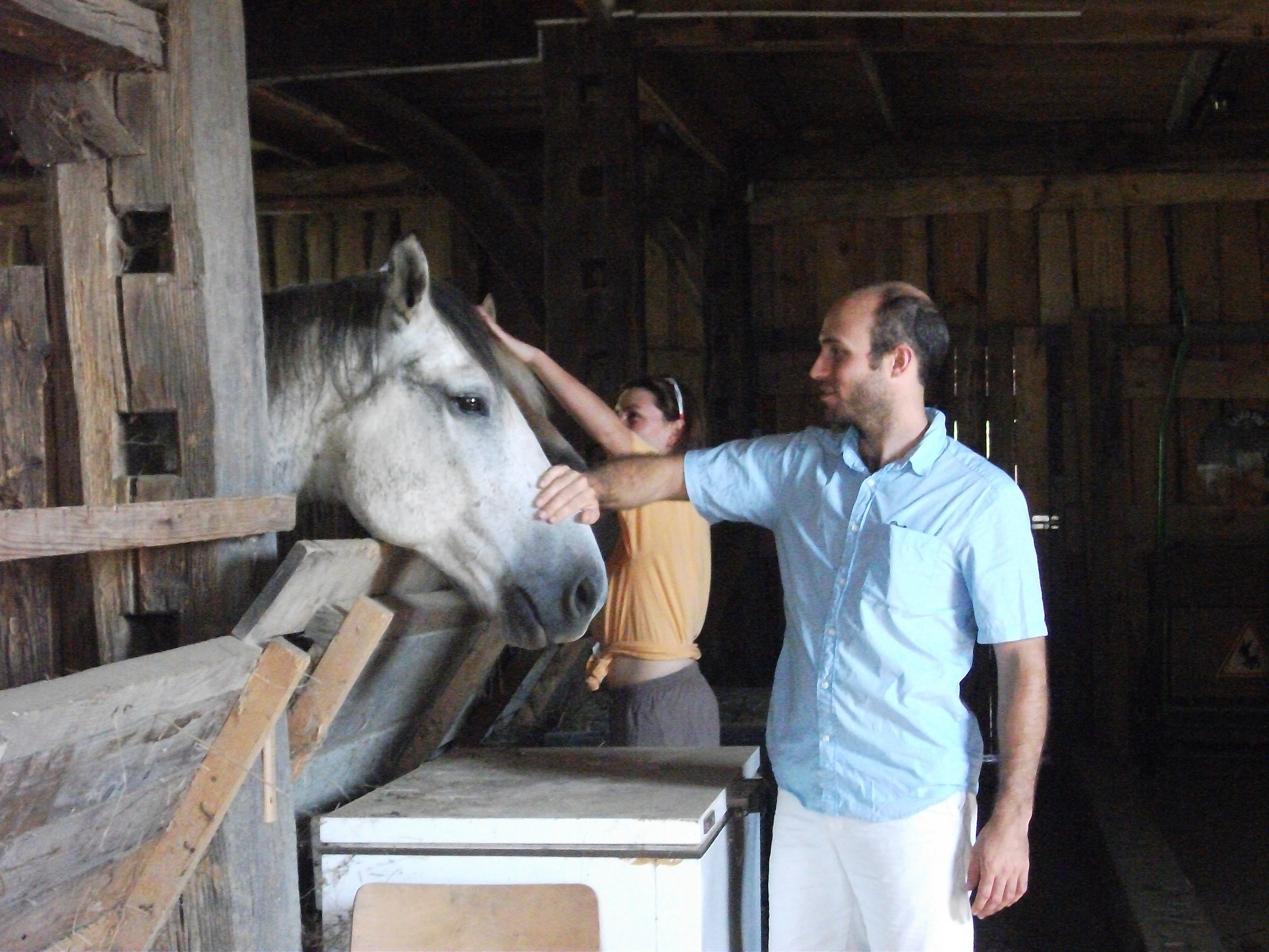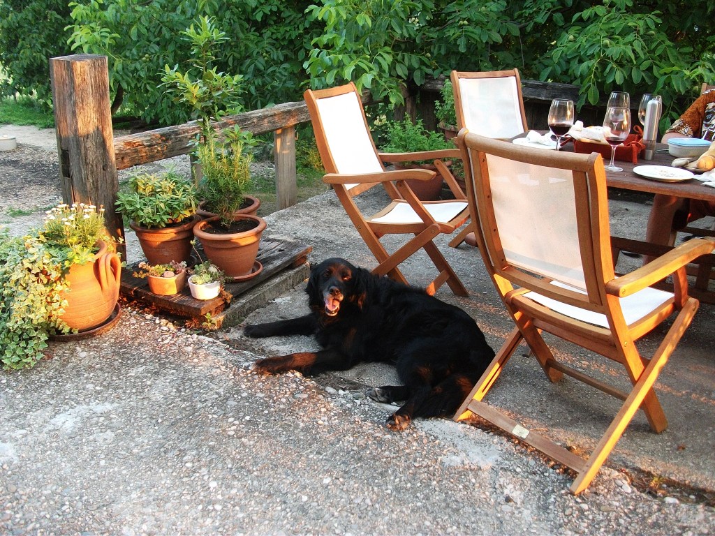The dinner at Josie’s (the British ex-pat) on Friday night was wonderful. She played hostess incredibly well – snacks and beer when we arrived, homemade elderflower soda, homemade salami, Slovenian wine with basque chicken, salad, a cheese course with french bread and a heavier Slovenian wine, and the finale: double chocolate brownies with walnut ice cream. It was fantastic! We played a little ping pong and became friends with the horses – Bob and Bryn. It was still pretty hot in the afternoon when we arrived, but as evening set it cooled down. And best of all, she had a real bathroom! We both enjoyed our little dinner party and the chance to hear someone else’s opinion of Slovenia.