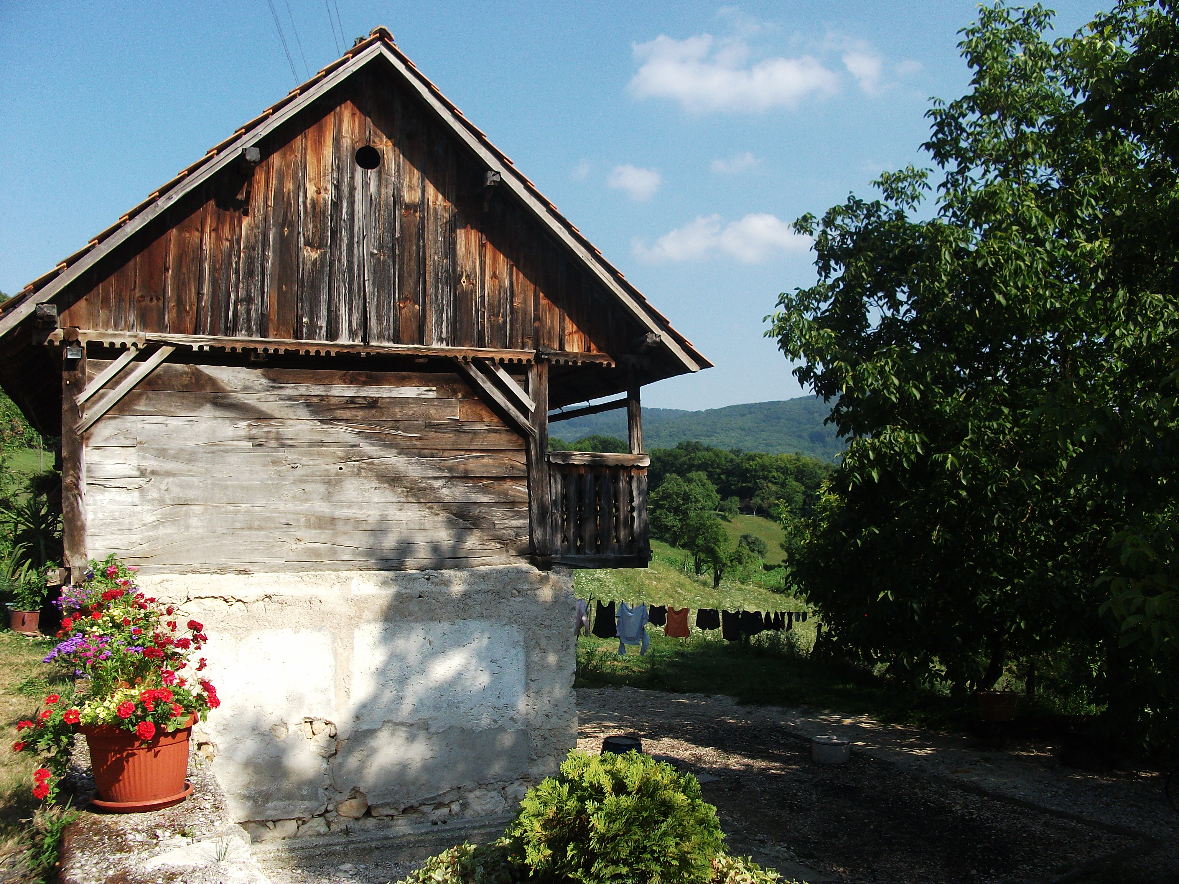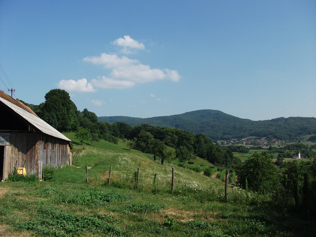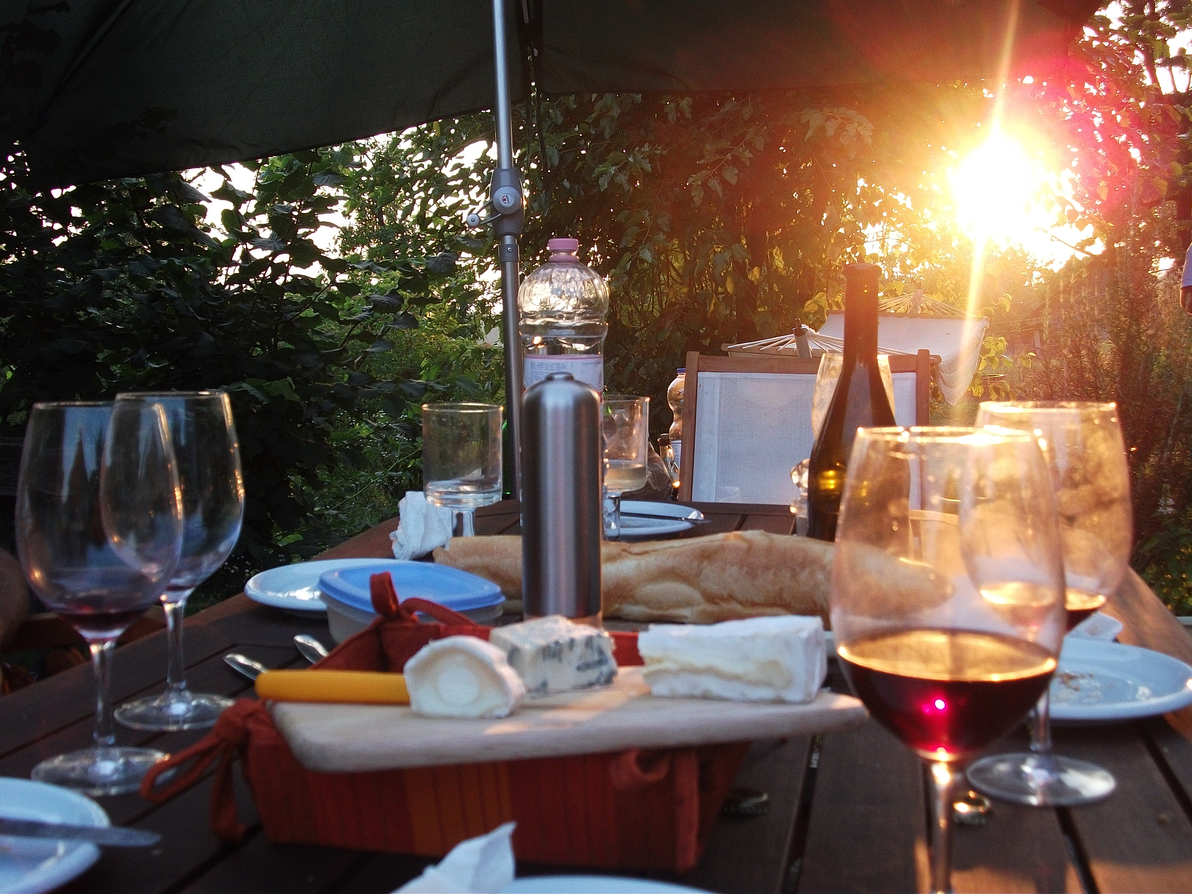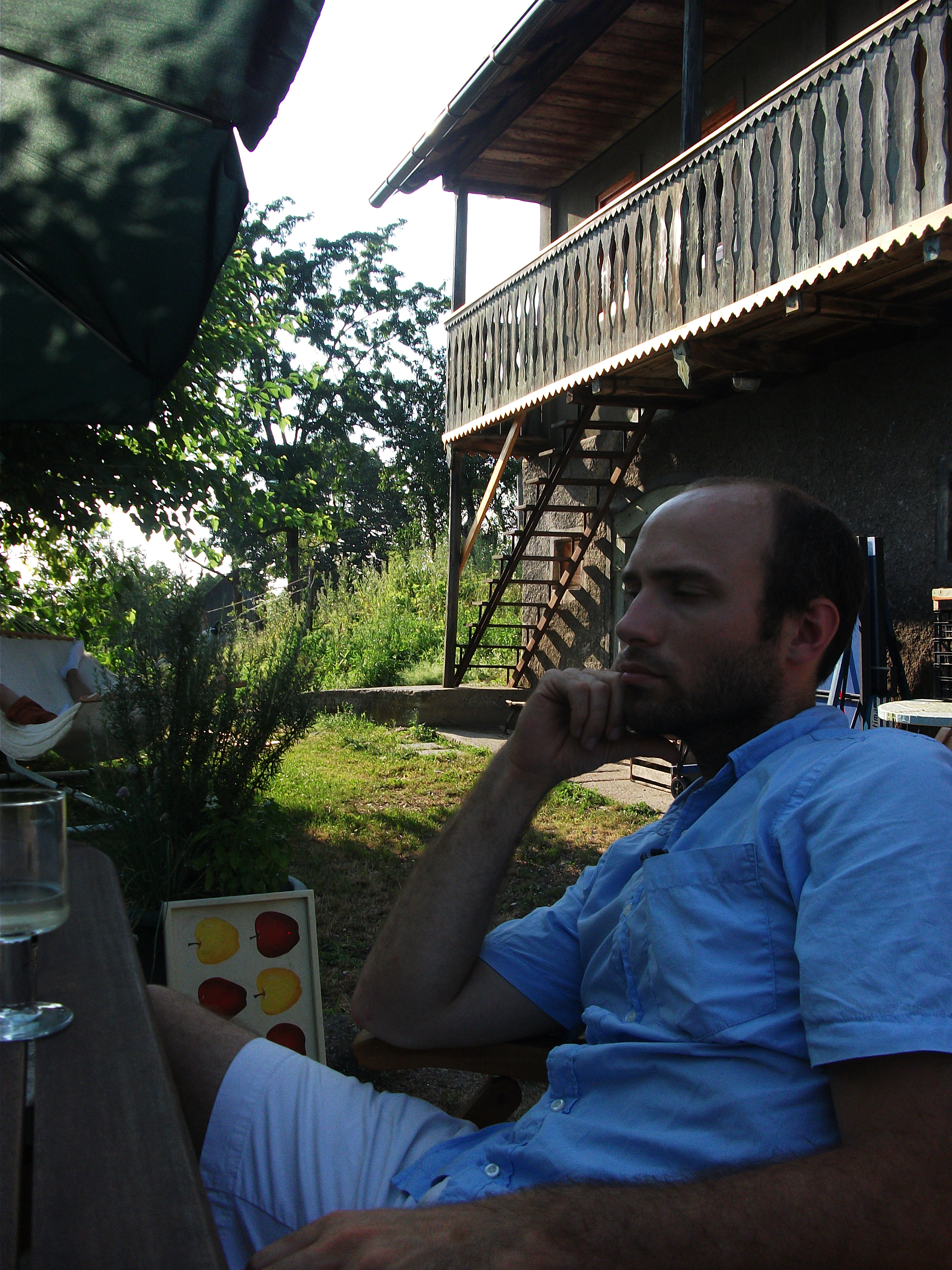 The dinner at Josie’s (the British ex-pat) on Friday night was wonderful. She played hostess incredibly well – snacks and beer when we arrived, homemade elderflower soda, homemade salami, Slovenian wine with basque chicken, salad, a cheese course with french bread and a heavier Slovenian wine, and the finale: double chocolate brownies with walnut ice cream. It was fantastic! We played a little ping pong and became friends with the horses – Bob and Bryn. It was still pretty hot in the afternoon when we arrived, but as evening set it cooled down. And best of all, she had a real bathroom! We both enjoyed our little dinner party and the chance to hear someone else’s opinion of Slovenia.
