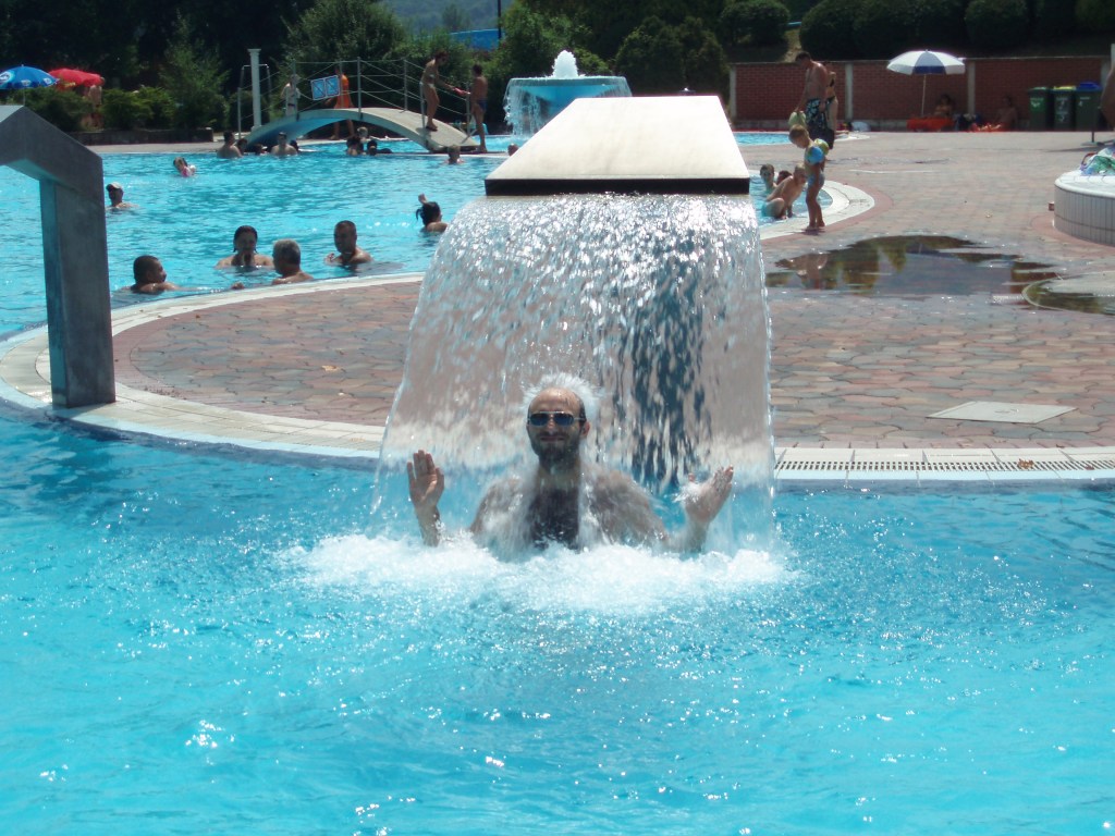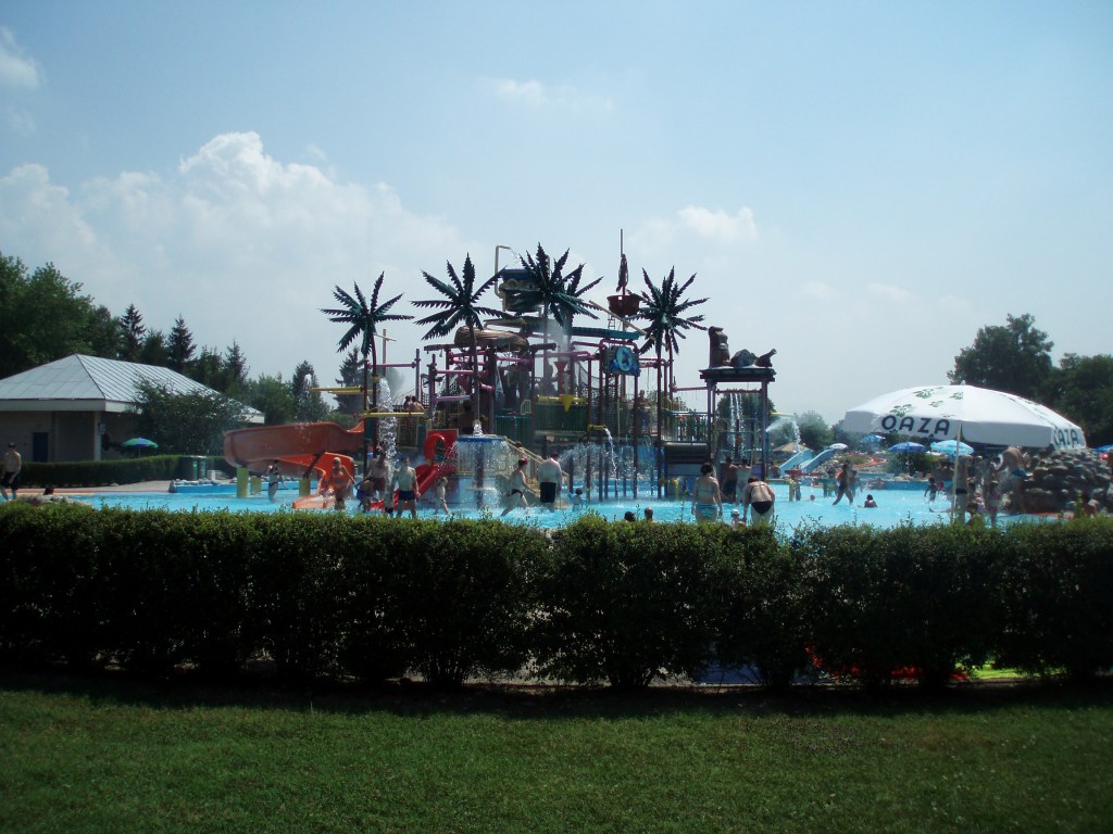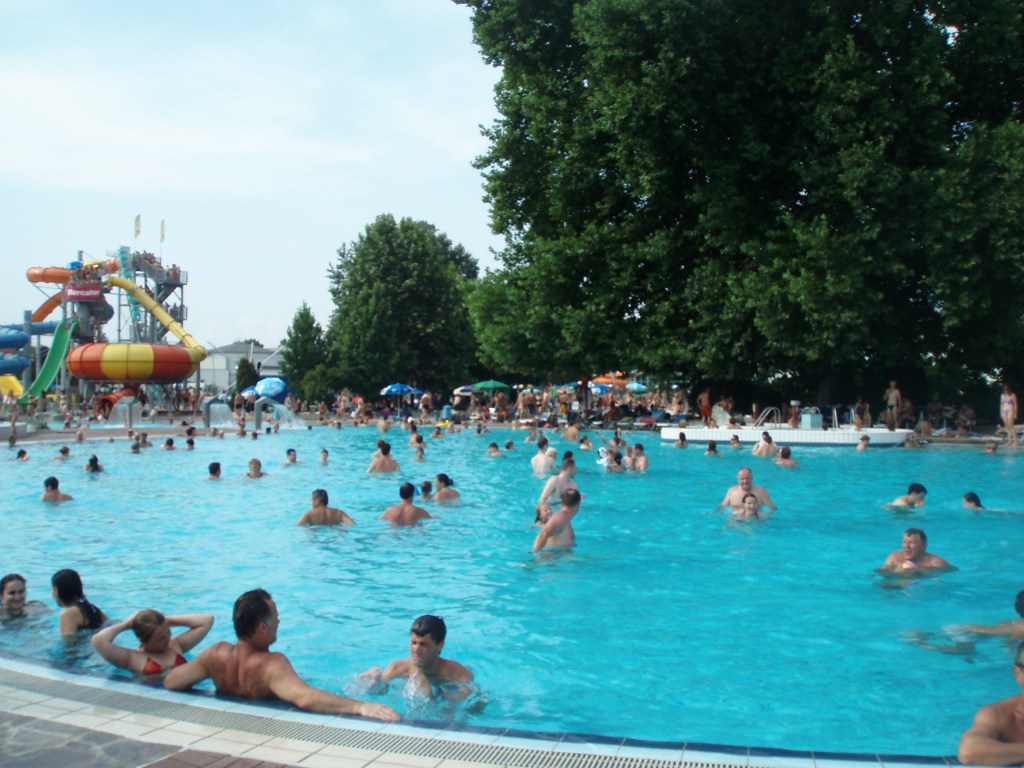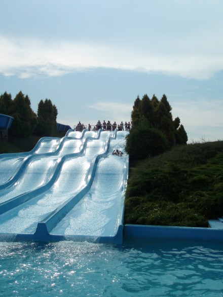 Yesterday was our day off. So we decided to spend the day at Terme Čatež, a resort a couple of towns away with a water park. In fact, Terme Čatež has Slovenia’s biggest water park. We borrowed John and Nathalie’s bikes and rode about 15km. It was no Schlitterbahn (much smaller and cheaper), but it was great to be in the water. We swam, went down a few of the slides (there were only 5 total), and relaxed in the shade with our books. We even had dinner at a restaurant just outside of the park. The pizzas were delicious! Some of the best we have had thus far. Then we began the bike ride back… not a fun ride. It was mostly uphill and we were filled with pizza. It took about an hour and ten minutes, but we finally made it back to John and Nathalie’s. We ended our evening with movie night – Shutter Island. They have a projector and a white cloth so that we can watch it in the living area/our bedroom. The best part of the night though was the installation of a FAN by our bed!! It made such a difference. What a glorious feeling – air being blown on your face. Needless to say, we both slept incredibly well last night.
