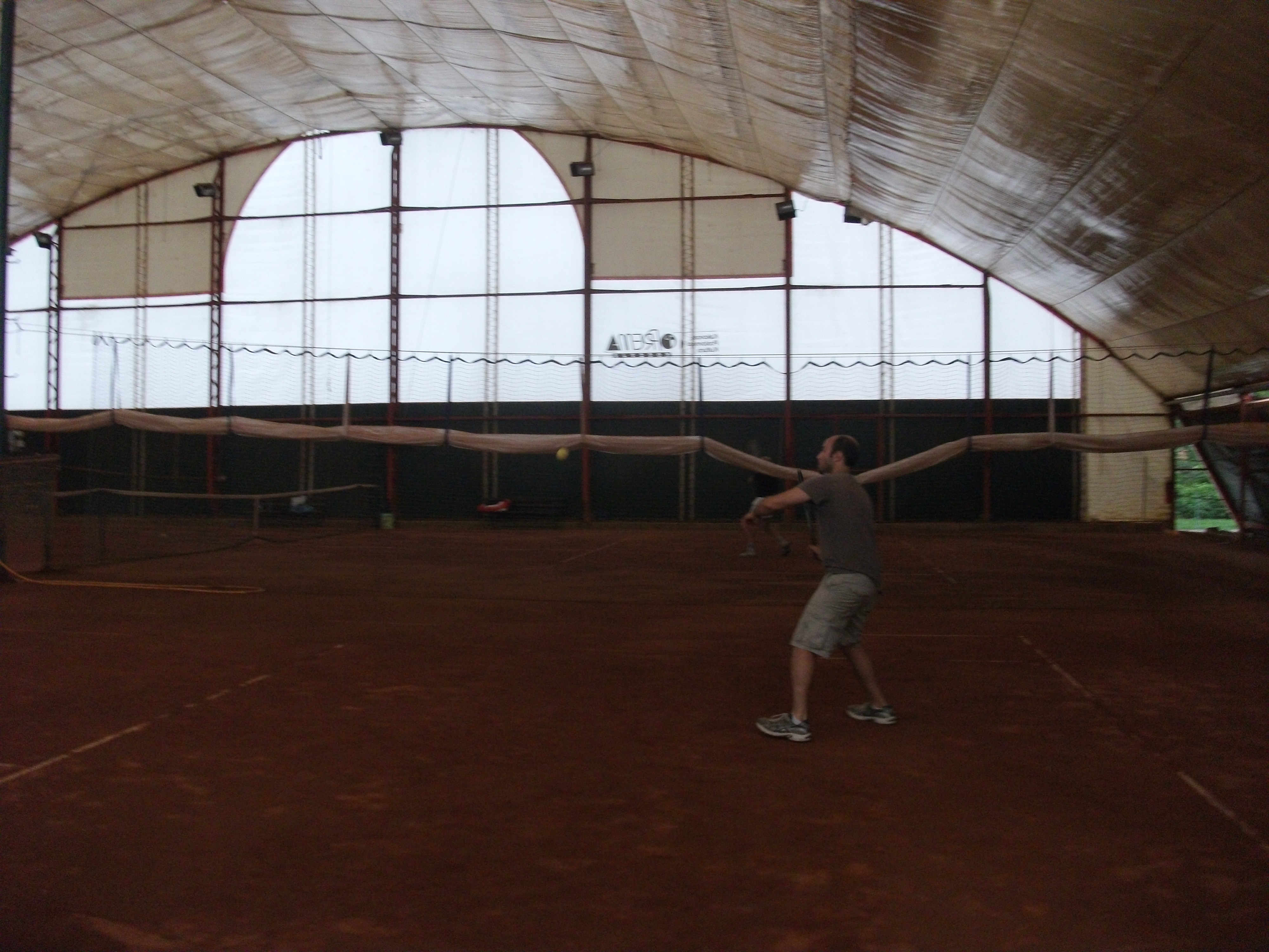 Tonight Nathalie and I had our last tennis date. Not to brag… no, we both played really well and it felt nice to stretch my legs on the court. We were very evenly matched. Afterwards we SHOWERED!!! It was our first shower since Sunday! It was amazing. What a feeling. Then we went to dinner in Brežice at a Gostilna (eatery). We sat on the back patio and relaxed in the cool shade of the evening. I think it was a great way to end our time here. Nathalie, Zach, and I shared a meat platter. Wow. Turkey in gorgonzola sauce, pork schnitzel, more pork, meat on skewers, Serbian flat bread, cheese pinwheel pastries, and roasted potatoes. Soooo good. We stuffed ourselves silly. We even have some for tomorrow.