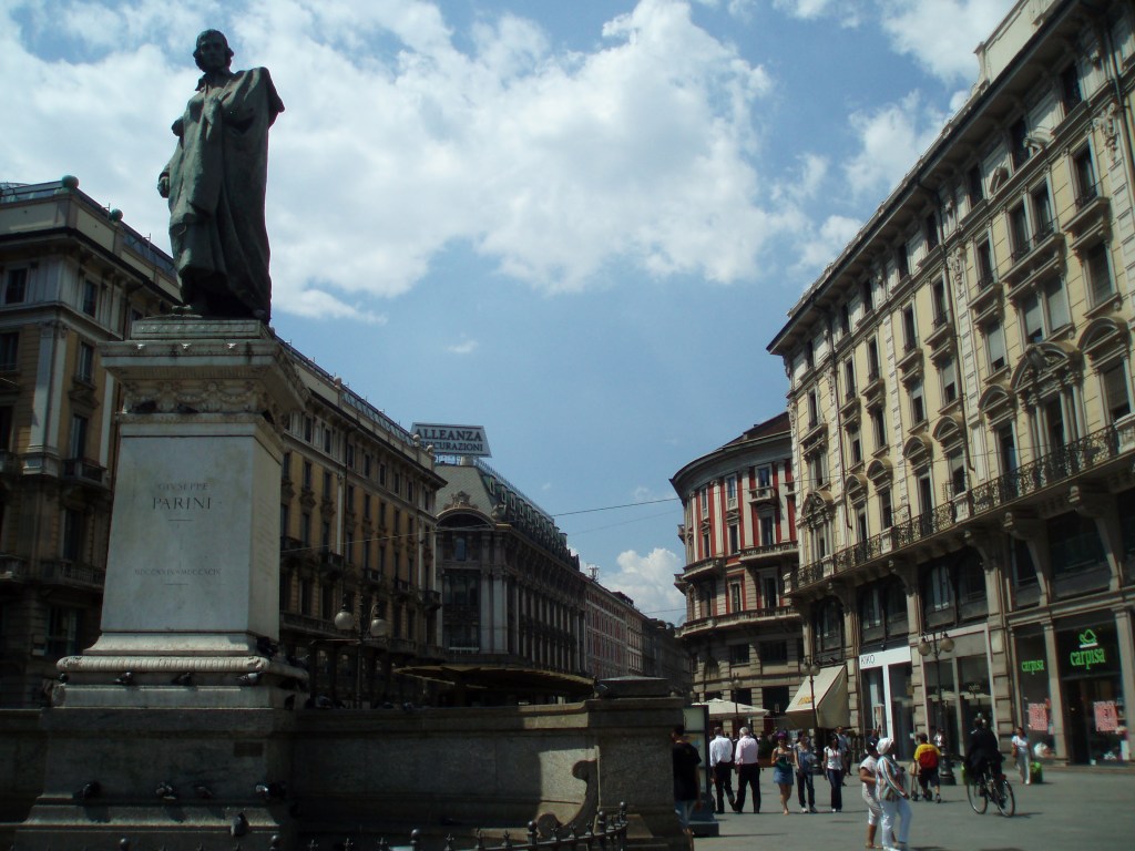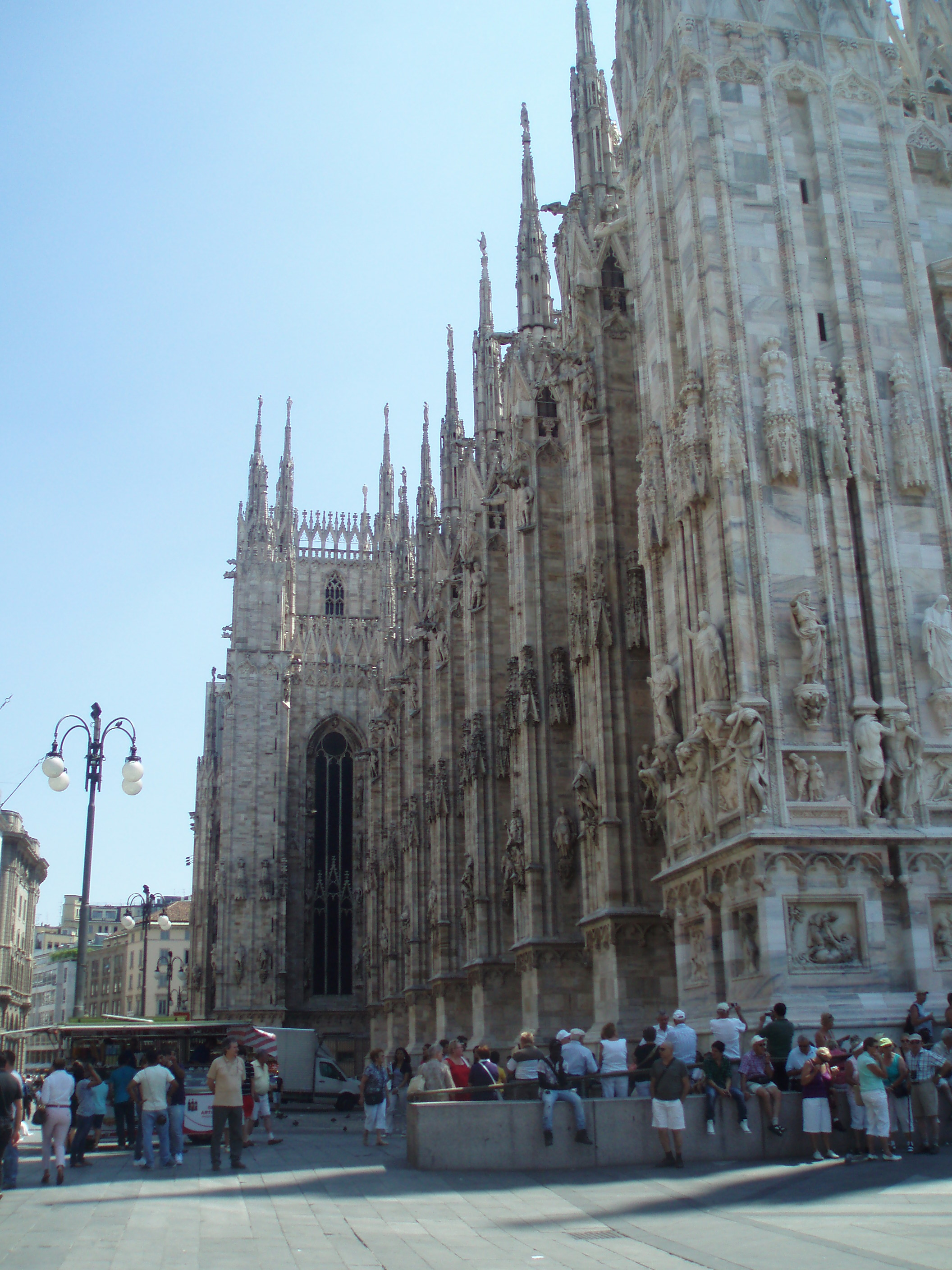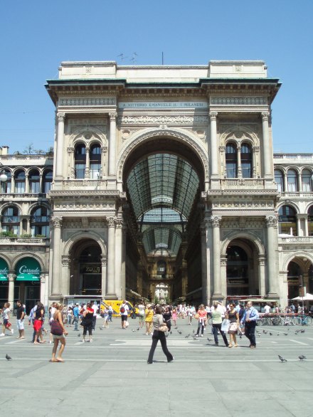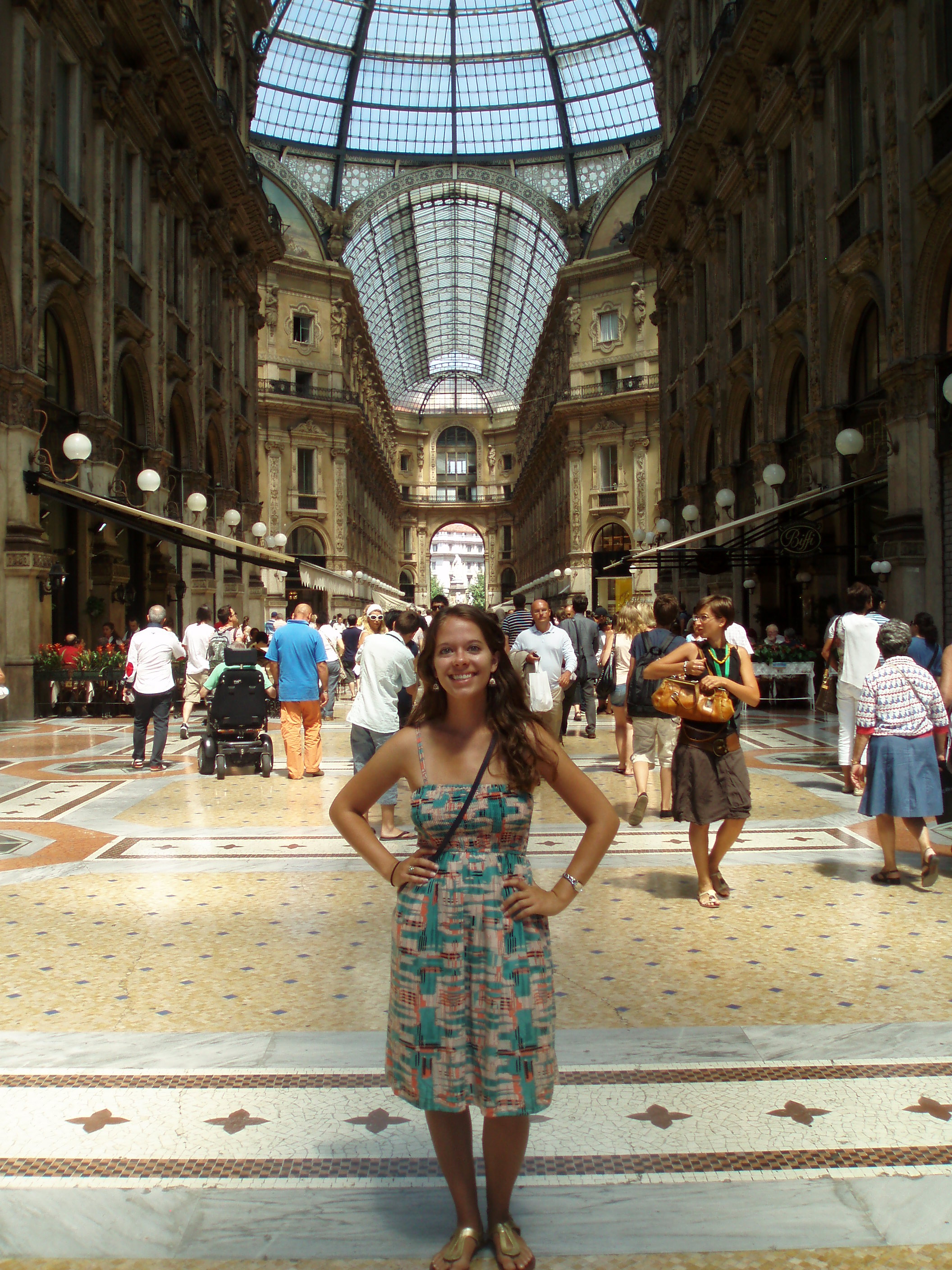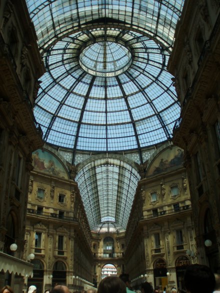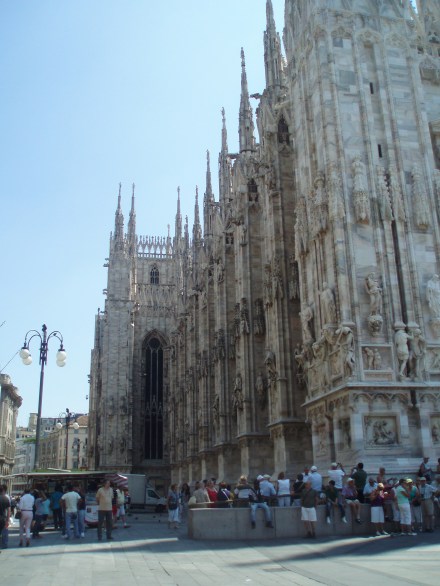 Tuesday we slept in and then ventured out into Milan. We took the subway into the centre; as we emerged from the stairwell the first thing I saw was Il Duomo. Wow. What a spectacular sight. It’s massive. Since I forgot a wrap to cover my shoulders we couldn’t go inside yet, so instead we marveled at its beauty from the outside. Then we walked through the plaza to the Galleria. It’s gorgeous – open with mosaic floors and glass ceilings. It truly stops one in their tracks. We walked through the Galleria and came out the other side in front of Teatro alla Scala, the famous opera house. Unfortunately since it was almost August there were no performances, but we could still tour the building. It was phenomenal! Simply amazing. I would love to see an opera there. The rest of the day we mainly wandered around – through the castle, in the park, into an expensive vintage designer store, and then back to Violetta’s to cool down. We found an independent film – Life During Wartime – at one of Milan’s art houses and Violetta invited some friends of hers to meet us. We had kebabs and then rushed to the theater only to discover that we were at the wrong theater! A nice Italian couple offered to drive us to the other theater so me, Zach, and Violetta piled into the backseat of their car and made it to the film. We only missed the first 5 minutes!