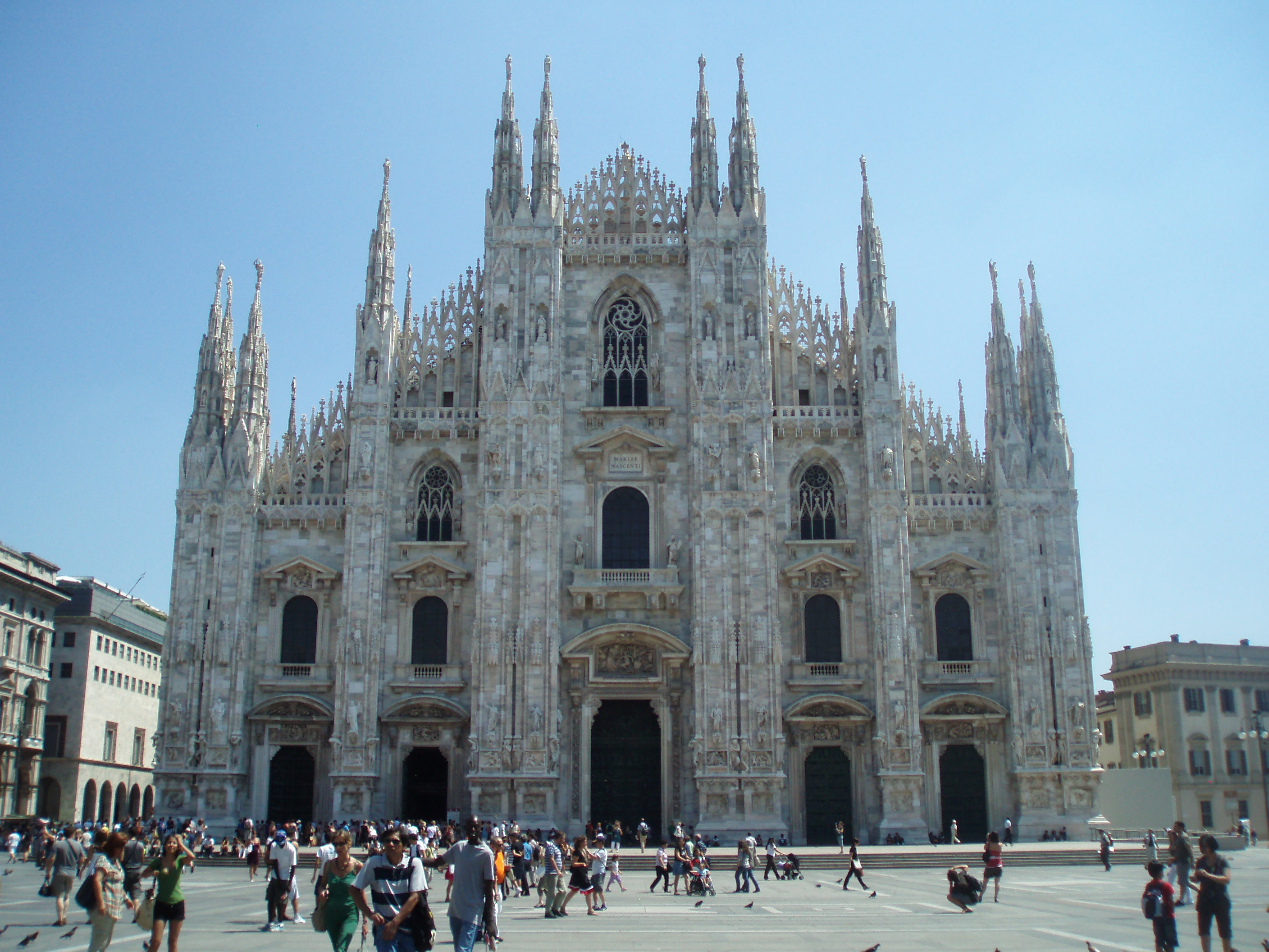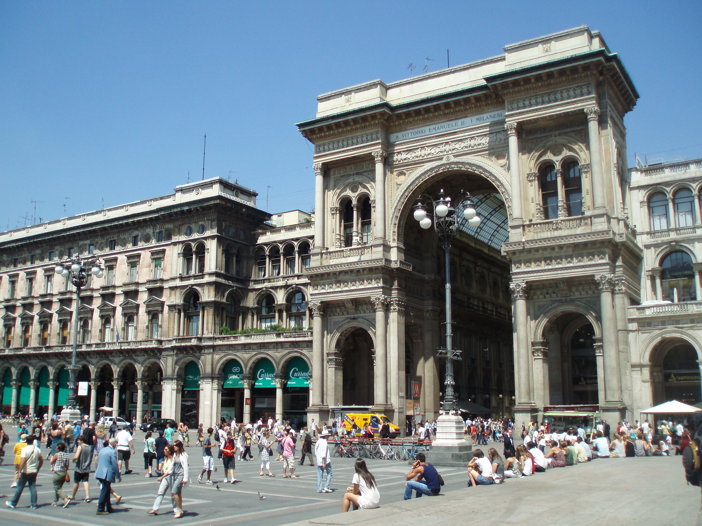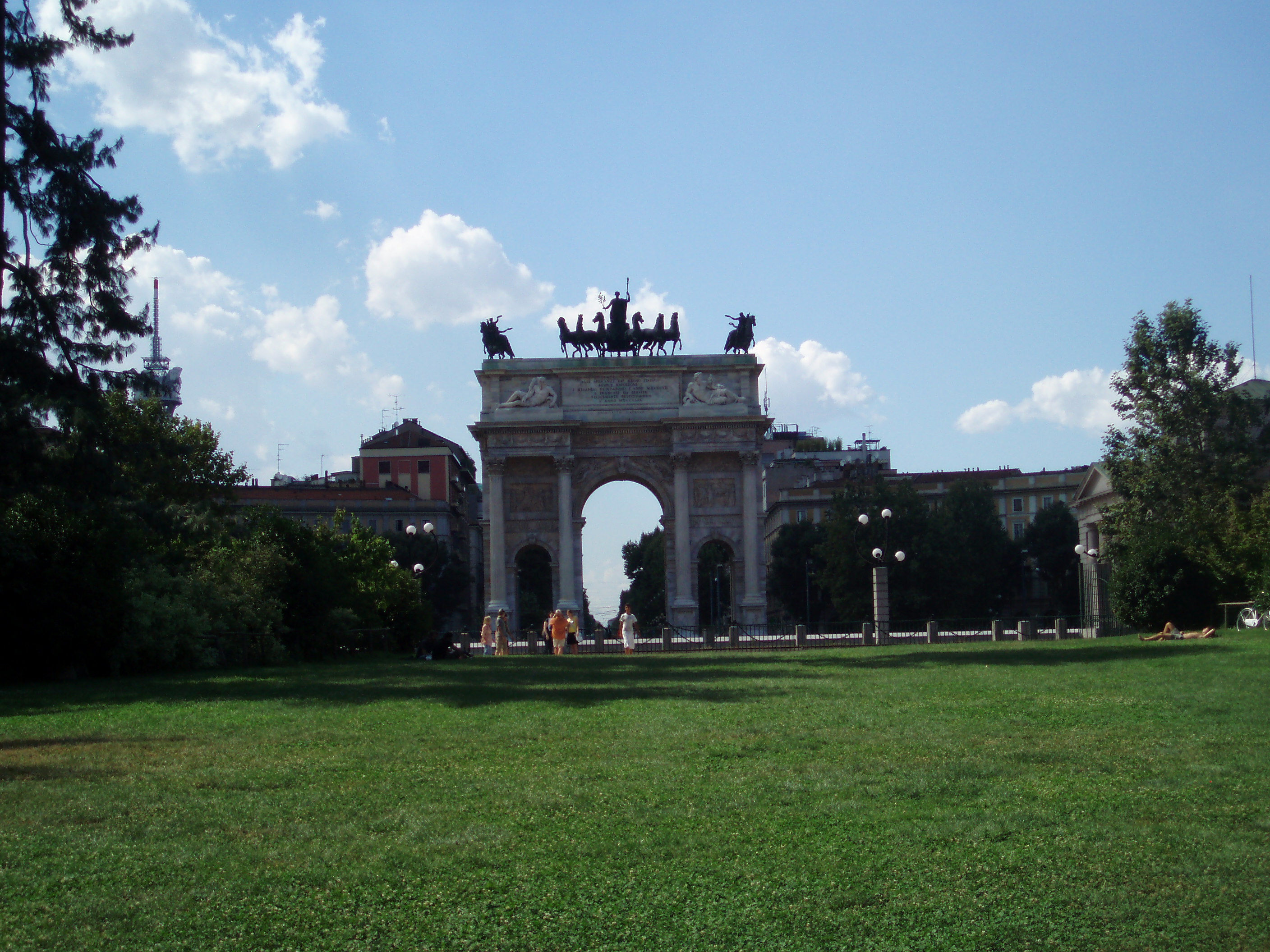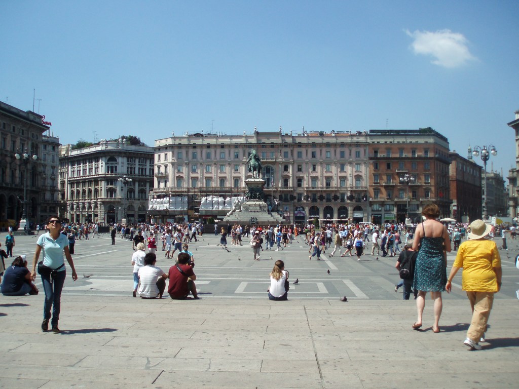 Tuesday we slept in and then ventured out into Milan. We took the subway into the centre; as we emerged from the stairwell the first thing I saw was Il Duomo. Wow. What a spectacular sight. It’s massive. Since I forgot a wrap to cover my shoulders we couldn’t go inside yet, so instead we marveled at its beauty from the outside. Then we walked through the plaza to the Galleria. It’s gorgeous – open with mosaic floors and glass ceilings. It truly stops one in their tracks. We walked through the Galleria and came out the other side in front of Teatro alla Scala, the famous opera house. Unfortunately since it was almost August there were no performances, but we could still tour the building. It was phenomenal! Simply amazing. I would love to see an opera there. The rest of the day we mainly wandered around – through the castle, in the park, into an expensive vintage designer store, and then back to Violetta’s to cool down. We found an independent film – Life During Wartime – at one of Milan’s art houses and Violetta invited some friends of hers to meet us. We had kebabs and then rushed to the theater only to discover that we were at the wrong theater! A nice Italian couple offered to drive us to the other theater so me, Zach, and Violetta piled into the backseat of their car and made it to the film. We only missed the first 5 minutes!