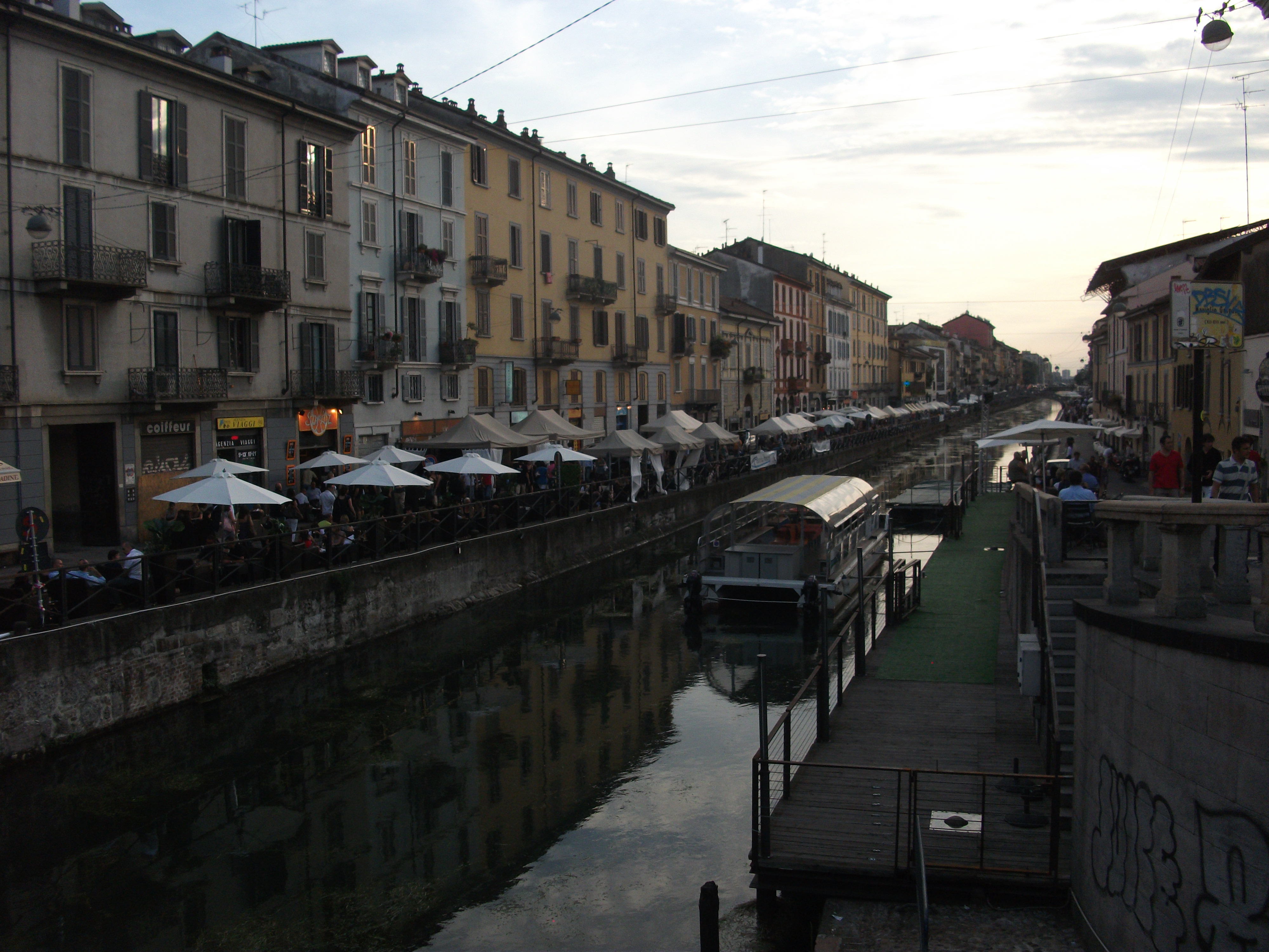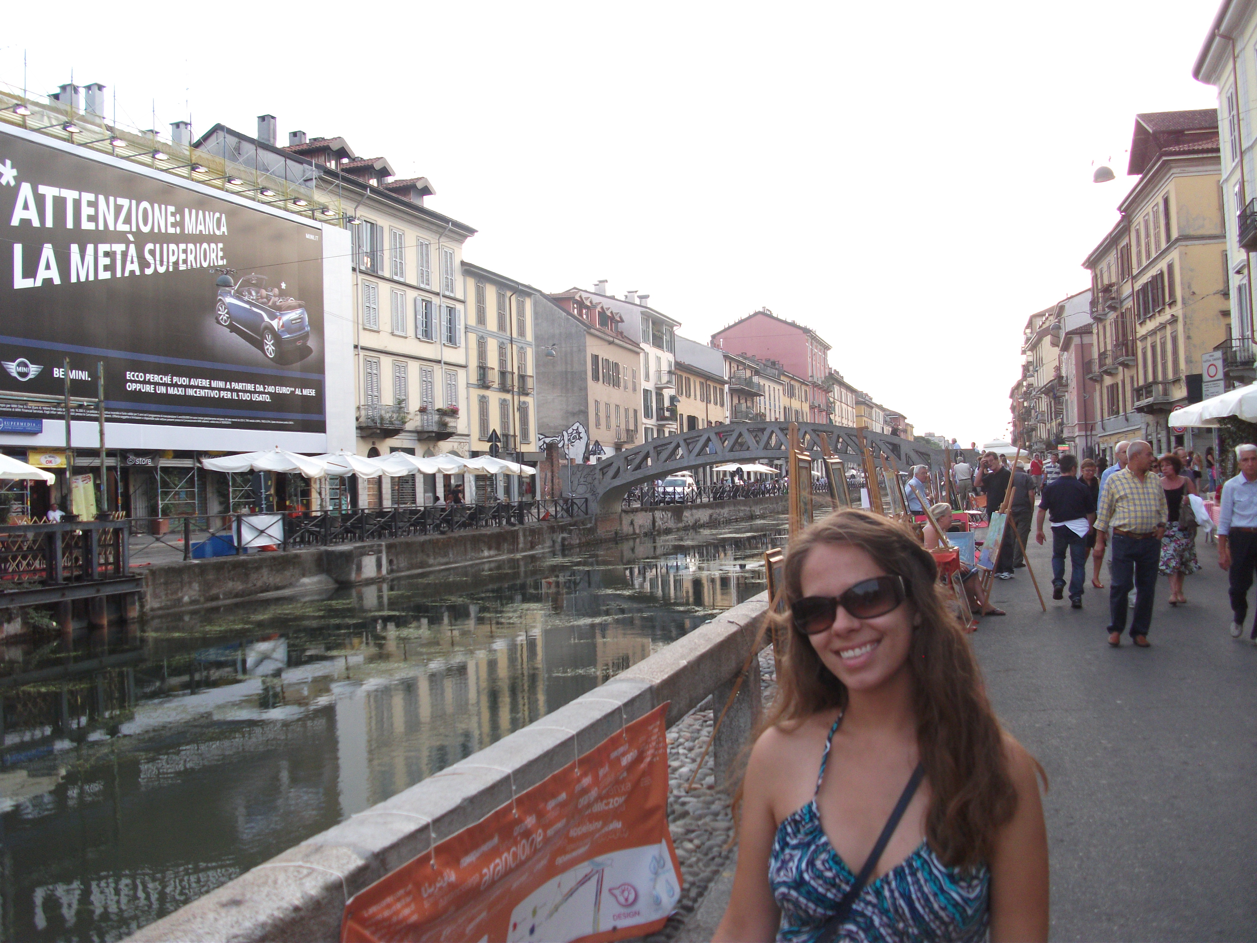 Afterwards we went over to another side of town and visited the Museum of Modern Art – which is housed in the mansion Napoleon lived in while Milan was the capital of the Napoleonic Kingdom of Italy. First we saw an exhibition by Zhang Huan, one of China’s foremost artists, and then we toured the halls of Napoleon’s former residence – gorgeous. We left and decided to take a break from walking and the heat at Violetta’s, where we passed a couple of hours before venturing back into the city. We went across town to stroll by the canals in the Navigli district – the Venice of Lombardy – and wound up at a famous bakery in Milan – Il Forno de Navigli. We chose a delectable tart filled with chocolate and topped with candied walnuts… amazing! The Navigli was gorgeous; restaurants lined the canal and each had a terrace for al fresco dining. We ducked into a few stores along the way – I made it away unscathed, but Zach bought a book and a record – and then eventually made our way back to Violetta’s to pack our things and prepare for an early departure Thursday morning. We drank a couple more Italian beers, chatted a bit with Violetta, and then settled in for our final night in Italy.
