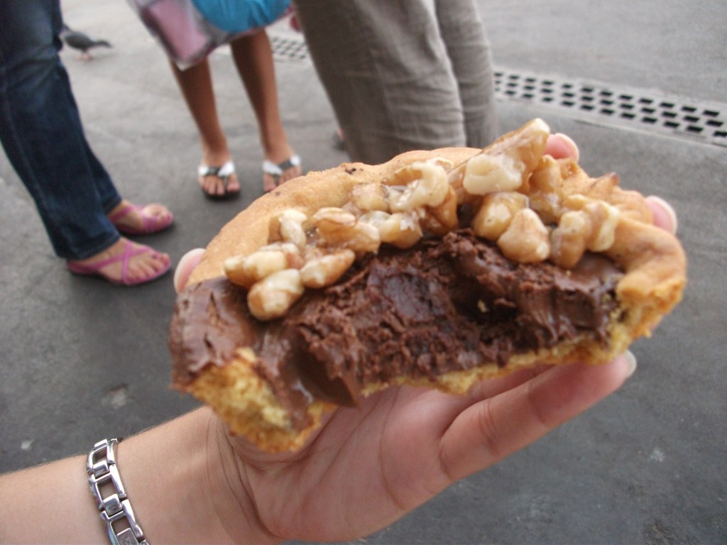 We arrived in Milan around 7:30pm on Monday evening and met Violetta, our host, at the end of the platform. Immediately we loved her. She was sweet, funny, gracious, and bore a slight resemblance to Tina Fey. It was about a 20 minute walk to her flat and since we were so exhausted from the day and night before she offered to make us pasta. We enthusiastically accepted and greedily watched a genuine Italian prepare pasta. It was simple – noodles, chunks of mozzarella, quarters of tomatoes – but absolutely delicious.