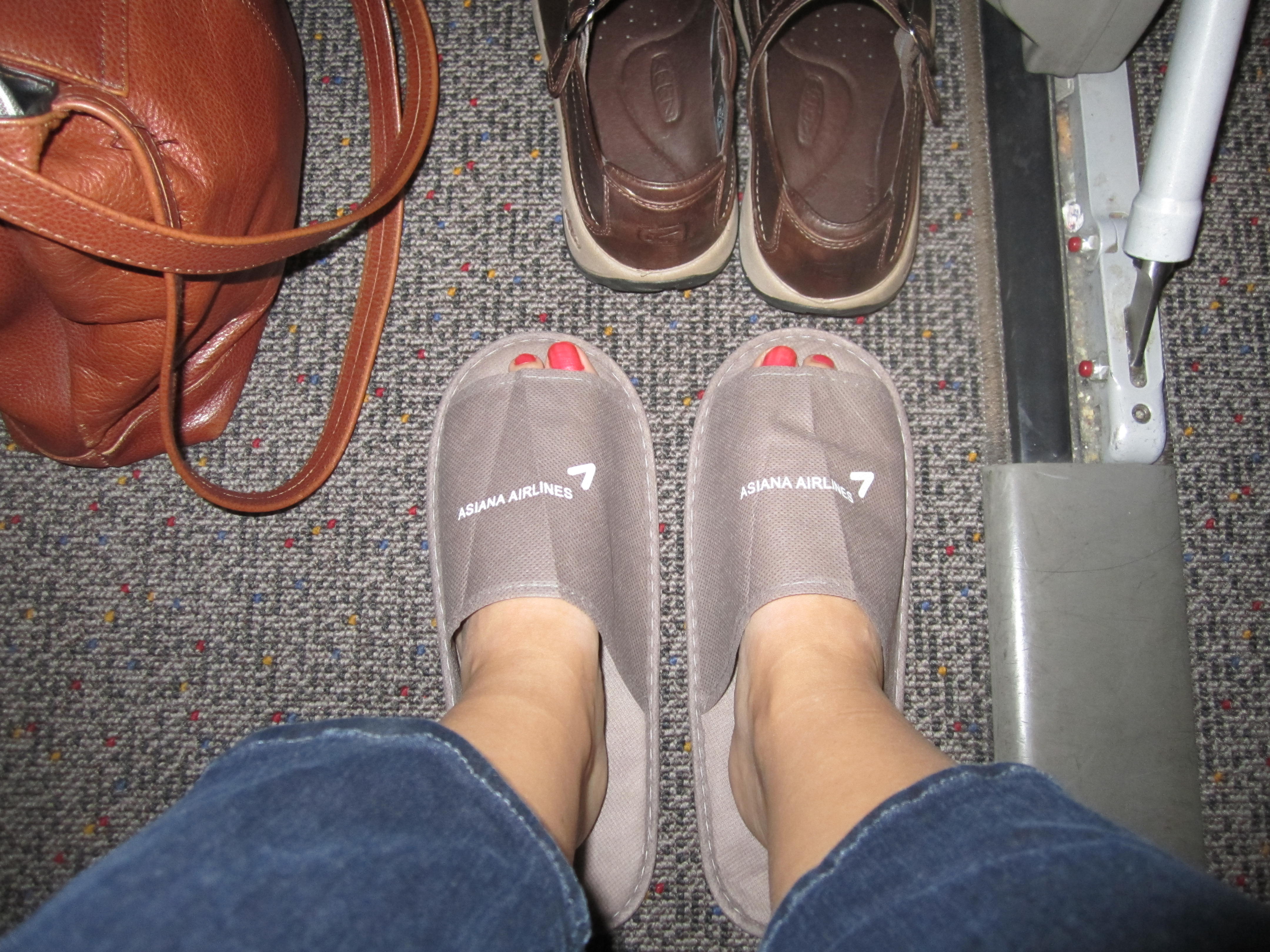 Asiana Airlines is amazing! I never want to fly internationally on an American carrier again! When we got off the plane at LAX we had to wait for the Asiana counter to open so that we could get our boarding passes. As we sat upstairs waiting we watched the staff of Asiana come out, what I took to be the manager addressed those standing in line in Korean, and then the entire staff bowed to the passengers. When we stepped on the plane and sat down we were first greeted with headphones for our televisions. Pretty standard. But then we were given hot towels (how refreshing!) and then SLIPPERS! Seriously, every airline needs to give out slippers for their international flights – how comfortable! The meals were stellar – we chose the Korean meal, Bibimbap, a traditional steamed rice and veggie dish – and the attendants were continually walking up and down the aisle providing drinks and extra snacks. Did I mention that the wine and beer were also complimentary!? Plus the flight attendant uniforms took us back to a time that we never had the chance to experience – the “glory days” of American airlines, like PanAm. Overall, Asiana Airlines makes even Travel Class (coach) feel like First Class.