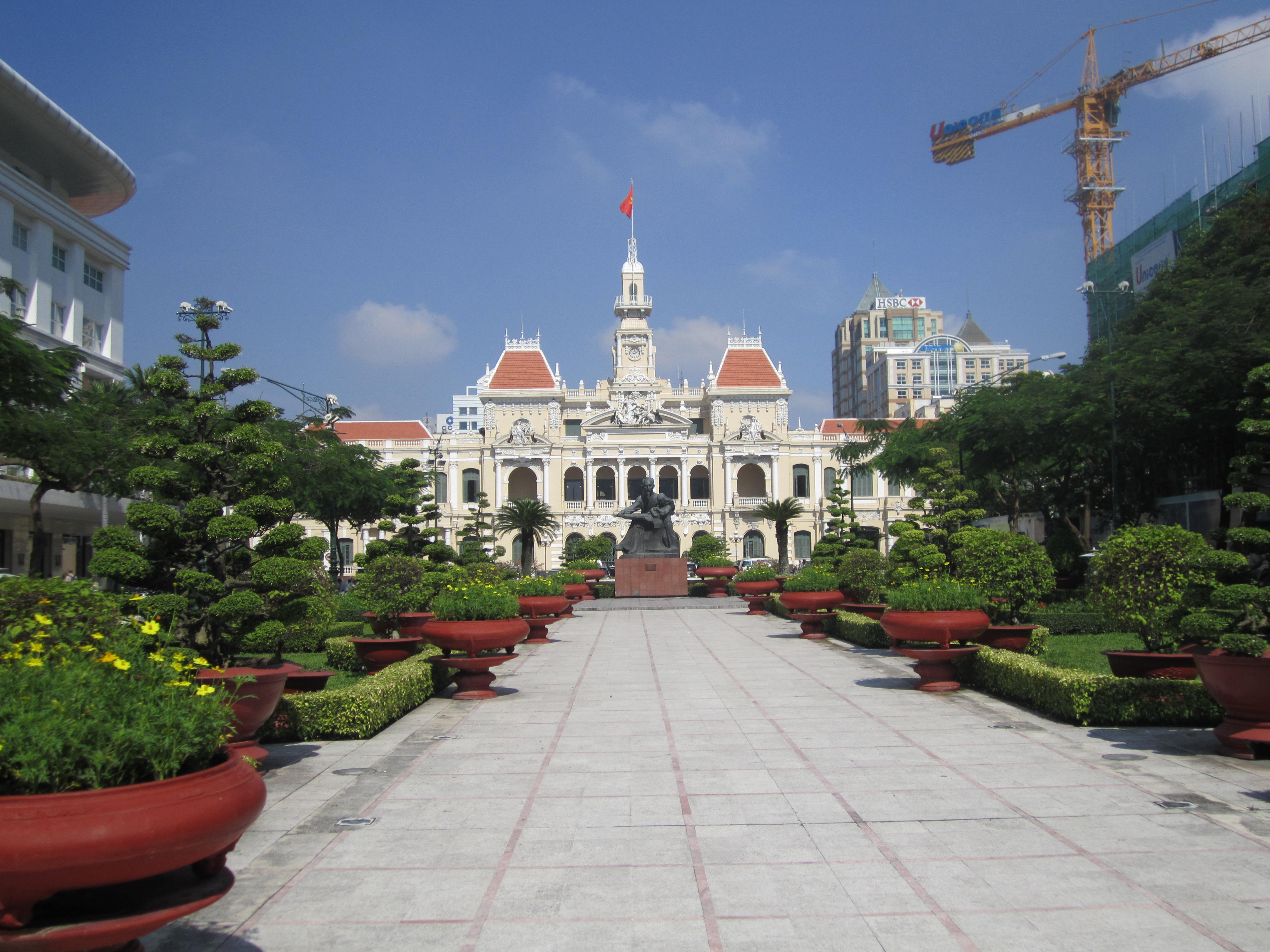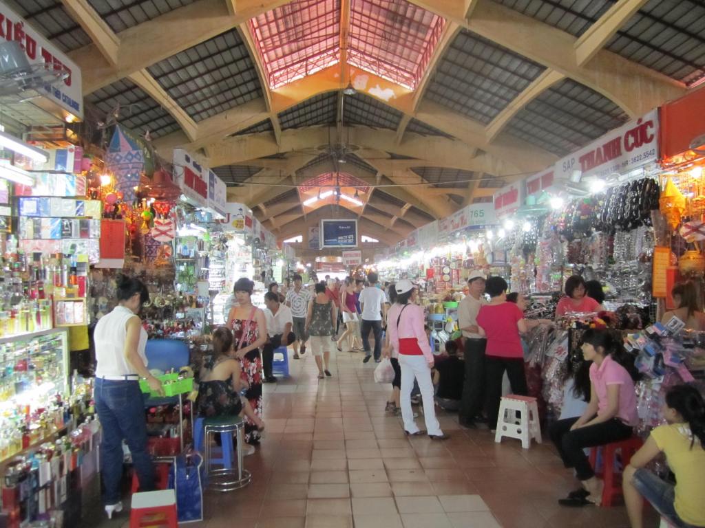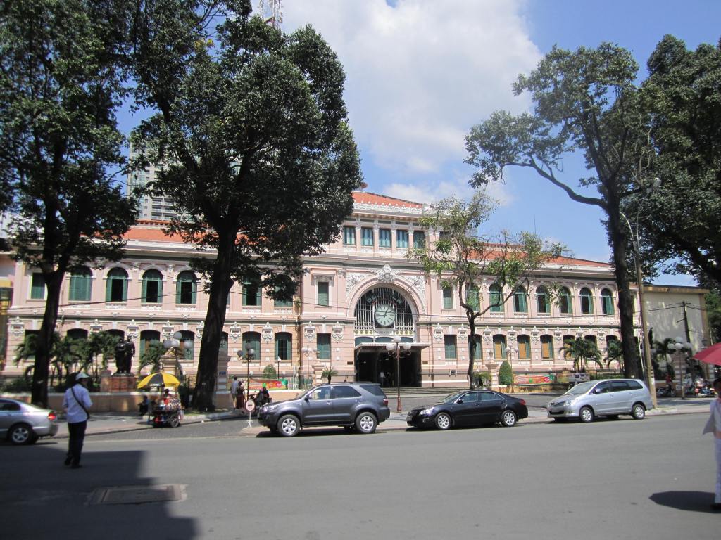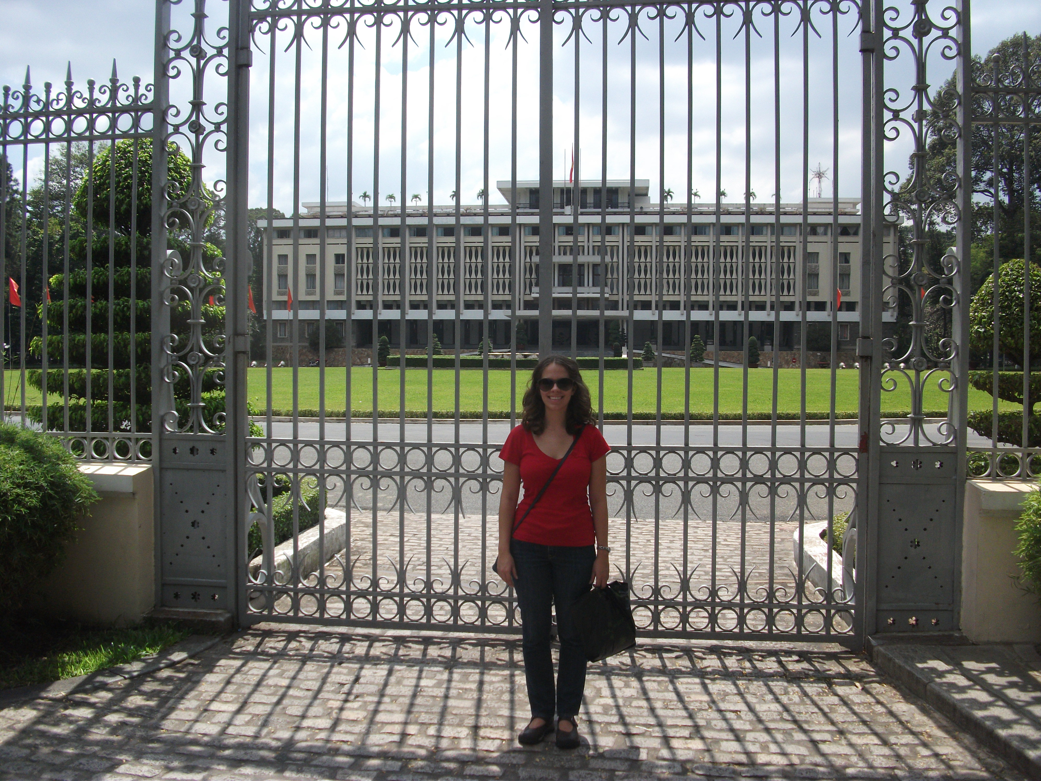 After eating we ventured into the dense part of the market to find some gifts. The sellers are pretty aggressive. Each stall we walked by we were either spoken to – Hi, you like this? – or were even pulled by the arm by more audacious types. Bargaining is expected and each seller keeps a calculator to make communication simple – they type their price, you type yours. Now, I hate to bargain, and I am not good at it, so I didn’t. Zach did negotiate a lower price on his things, but walked away thinking he could have gotten it even lower. Next time we’ll both negotiate a little bit better. Satisfied with our purchases we decided to make our way to some of the main tourist sites in Saigon.