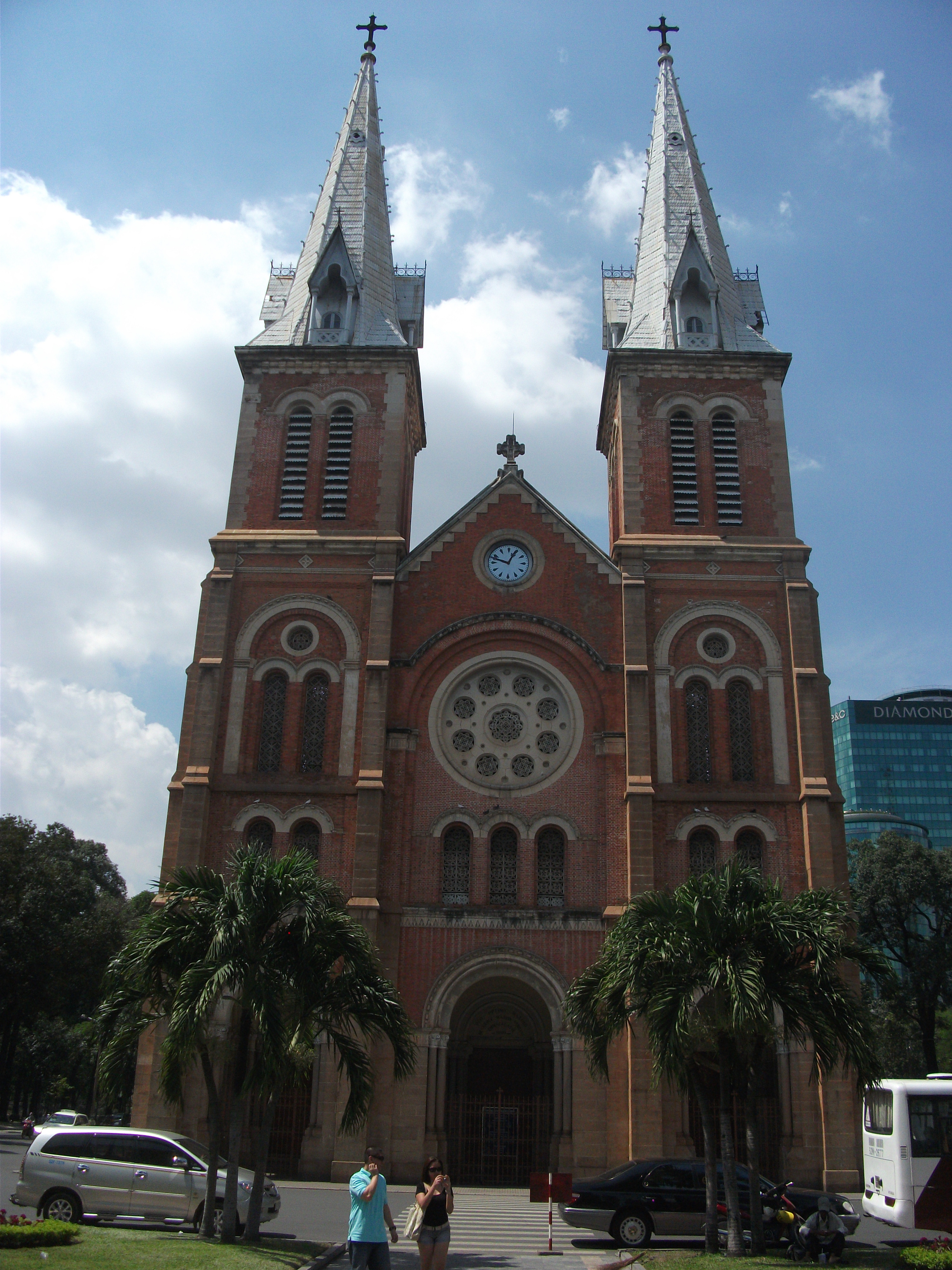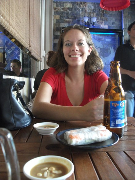 We began our morning quite early. For some odd reason, we went to bed at 2:30am and woke up around 5:30am. When we saw the time we attempted to return to sleep, but it was unobtainable. So we began our day in Saigon a little earlier than expected. We needed to change our dollars into dong – the local currency. The current exchange rate is a little over 20,000 dong to $1. It’s really disorienting looking at prices in the thousands! After a while it gets easier, but it’s still strange to hear someone say that your bundle of scarves is 450,000 dong. Although dollars are excepted, they are generally taken for larger purchases – tours, flights, etc. With our new currency we stopped at a coffee shop, Highland Coffee, for a refreshing Vietnamese iced coffee and croissant. After our walk we already had sweat rolling down our bodies; the humidity here is overwhelming. Our summers in Texas are absolutely nothing compared to the heat and humidity here. Plus in order to maintain proper dress code, I wore jeans and a tee (although most Western tourists still wear shorts and strappy shirts). I guess I should have ignored the advice in our guidebook…