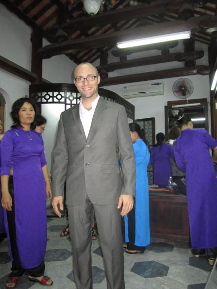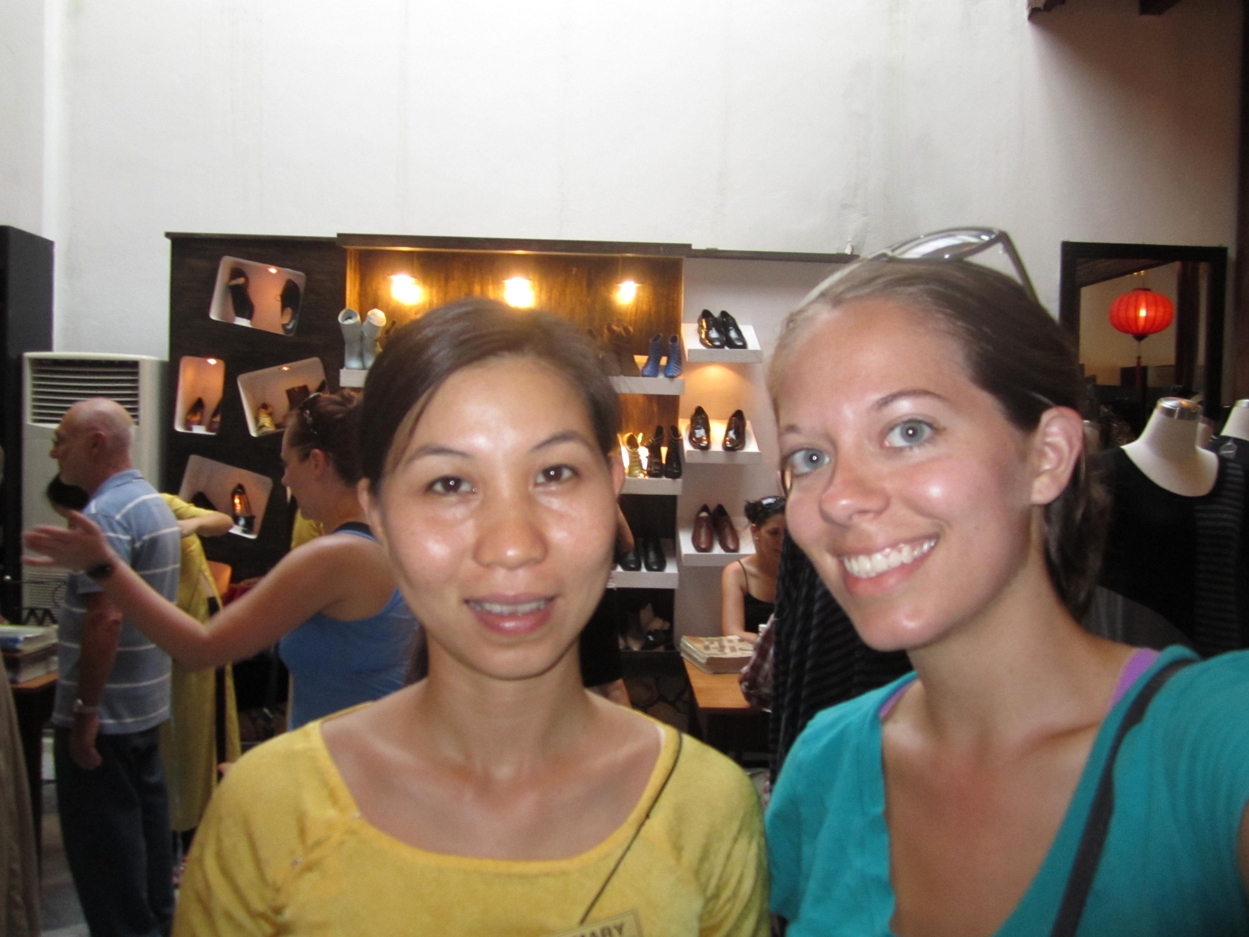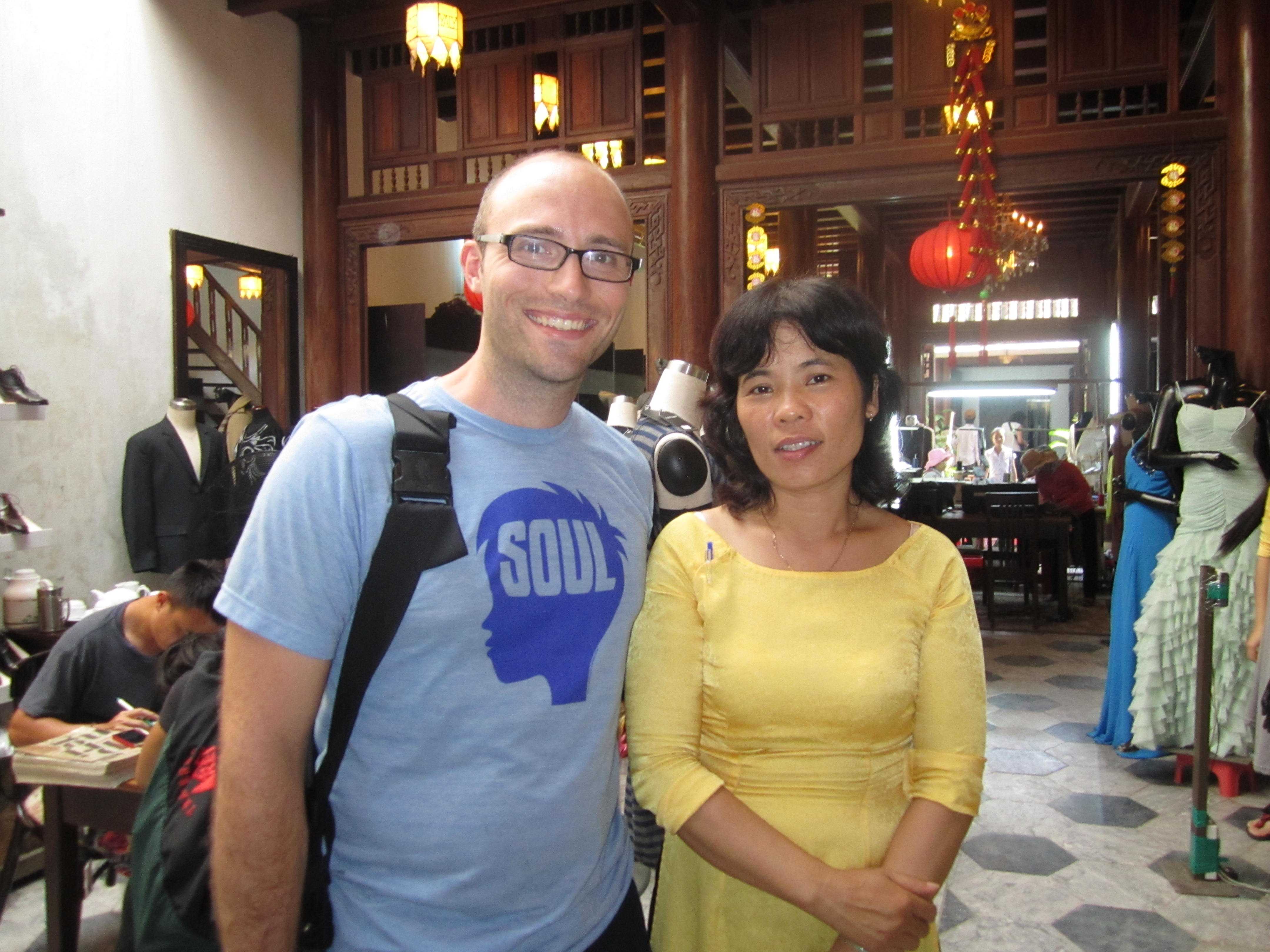 After we left An Bang Beach, we turned the motorbike back in to our hotel and went over to Yaly. Zach tried on his second pair of trousers and while he was paying for his clothes, I tried on the dress. I was a little disappointed at first, but Mary and I both agreed that it needed to be taken in a lot more and I was hopeful that the finished product would look better. She told me to come back in an hour to try it on again (fast!). So we left, Zach with clothes and me with one more fitting. We returned to the hotel to rest for a bit and I returned to Yaly by myself an hour later. The second fitting went much better; I was much happier with it and Mary told me the hem would be finished and they would deliver all of my clothes to the hotel. So I paid for my clothes and went back to the hotel.
