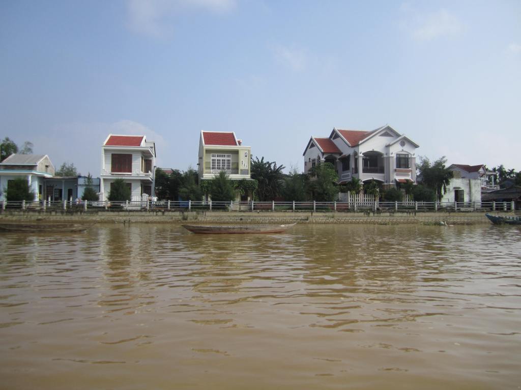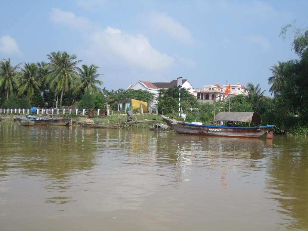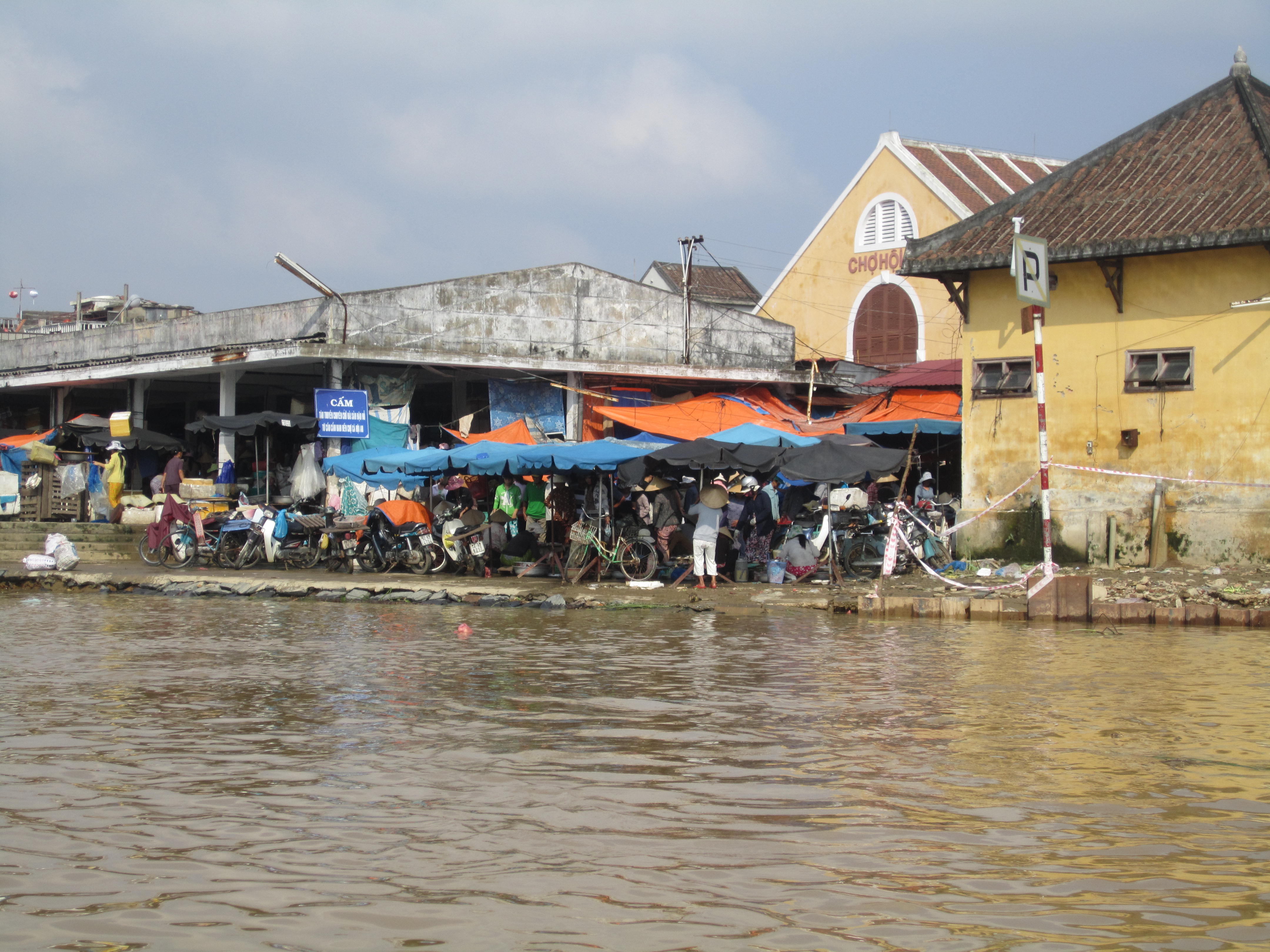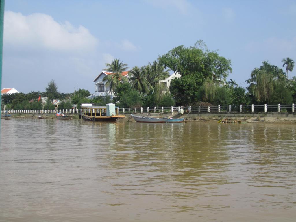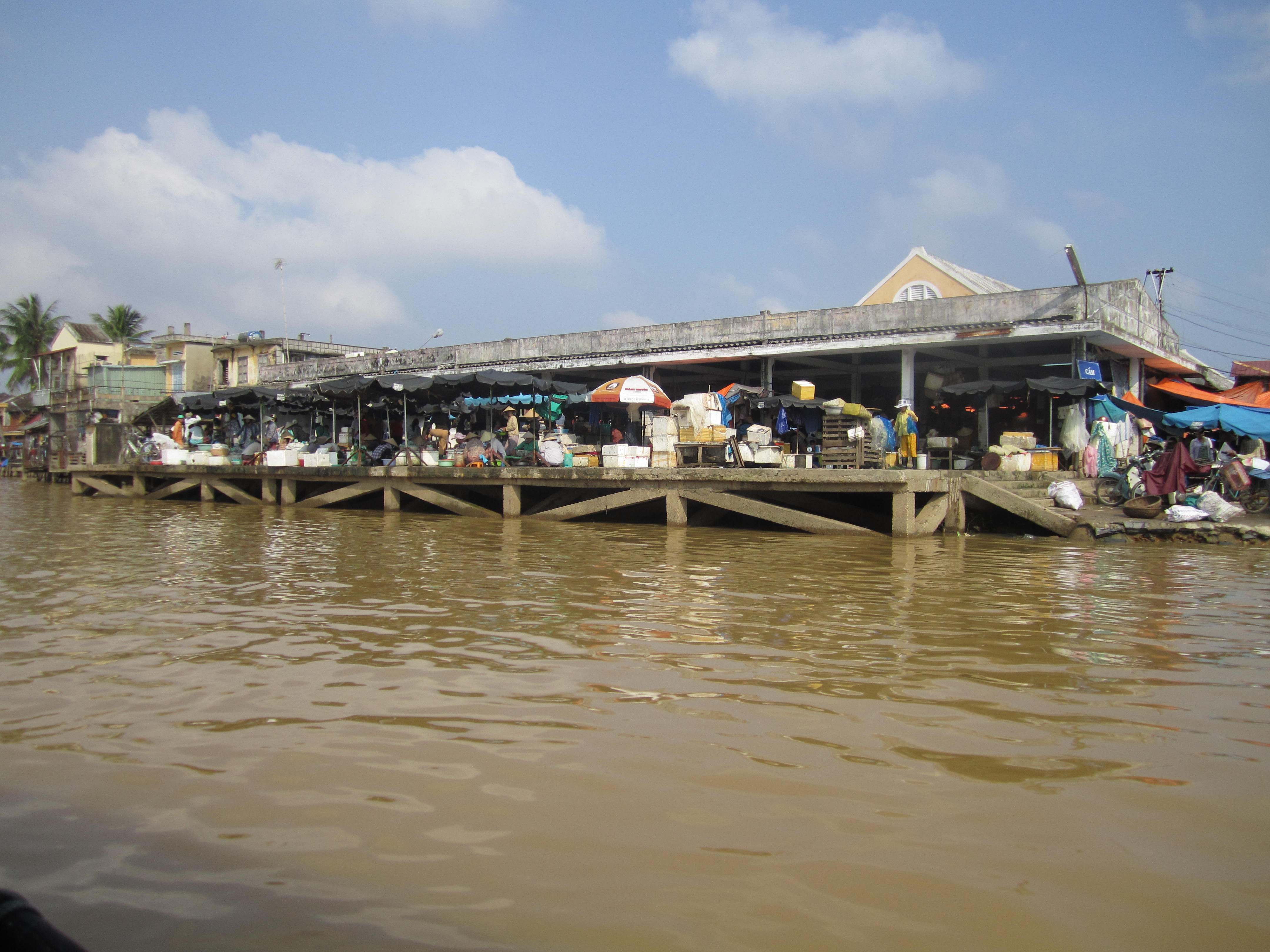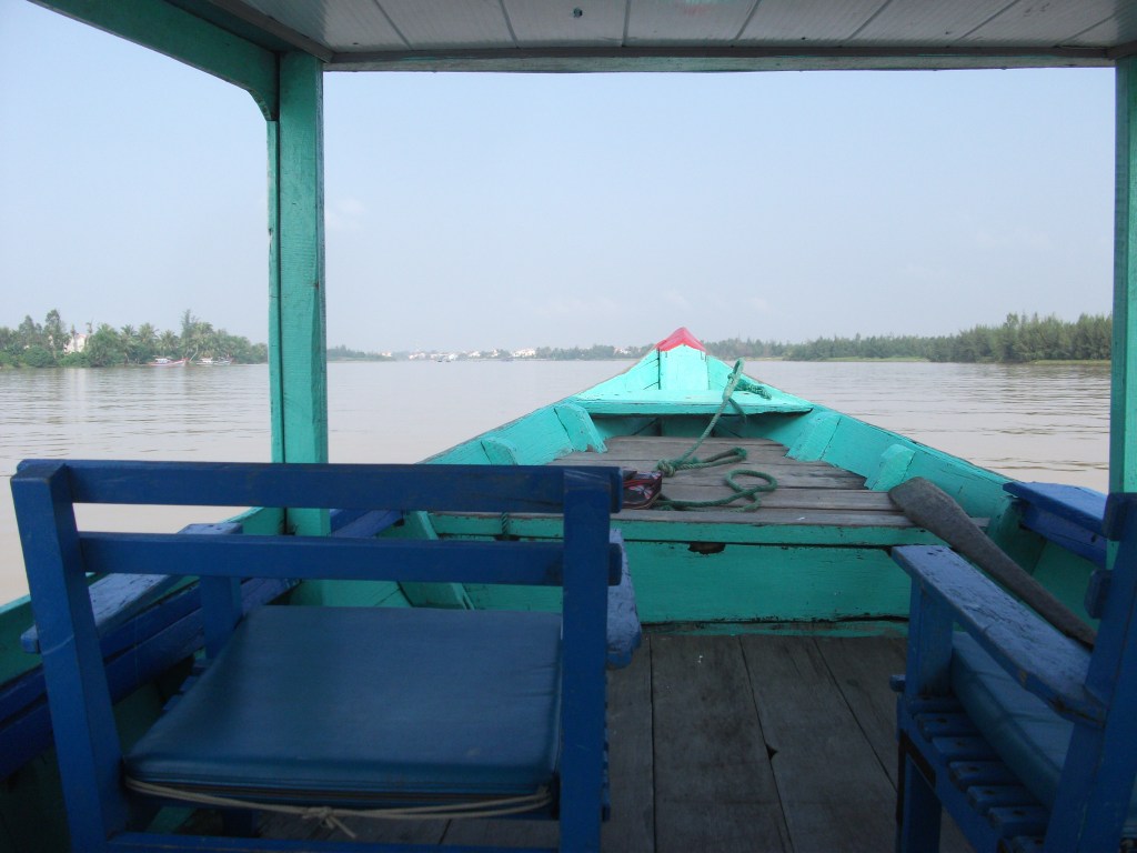 But enough of that. On our last morning in Hoi An we played it pretty relaxed. We left the hotel pretty early (a rooster and pig woke us up fairly early each morning) and headed through the busy market to the docking area. We bargained with a lady for a boat ride on the river and enjoyed an early morning cruise on the Thu Bon. Now don’t imagine a beautiful blue river, but rather a nice muddy brown one where people dump any manner of things. Muddy waters aside, the breeze was nice and the cruise enjoyable.