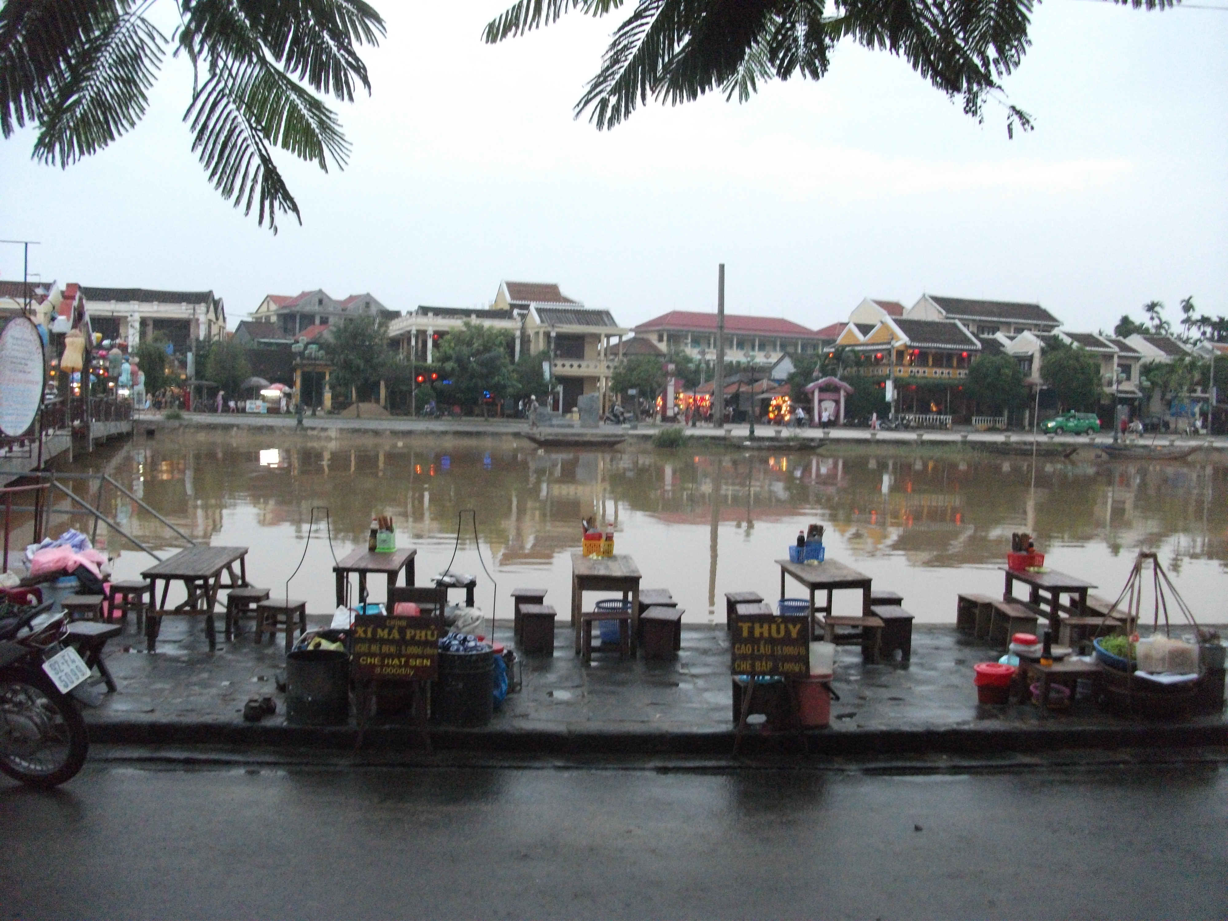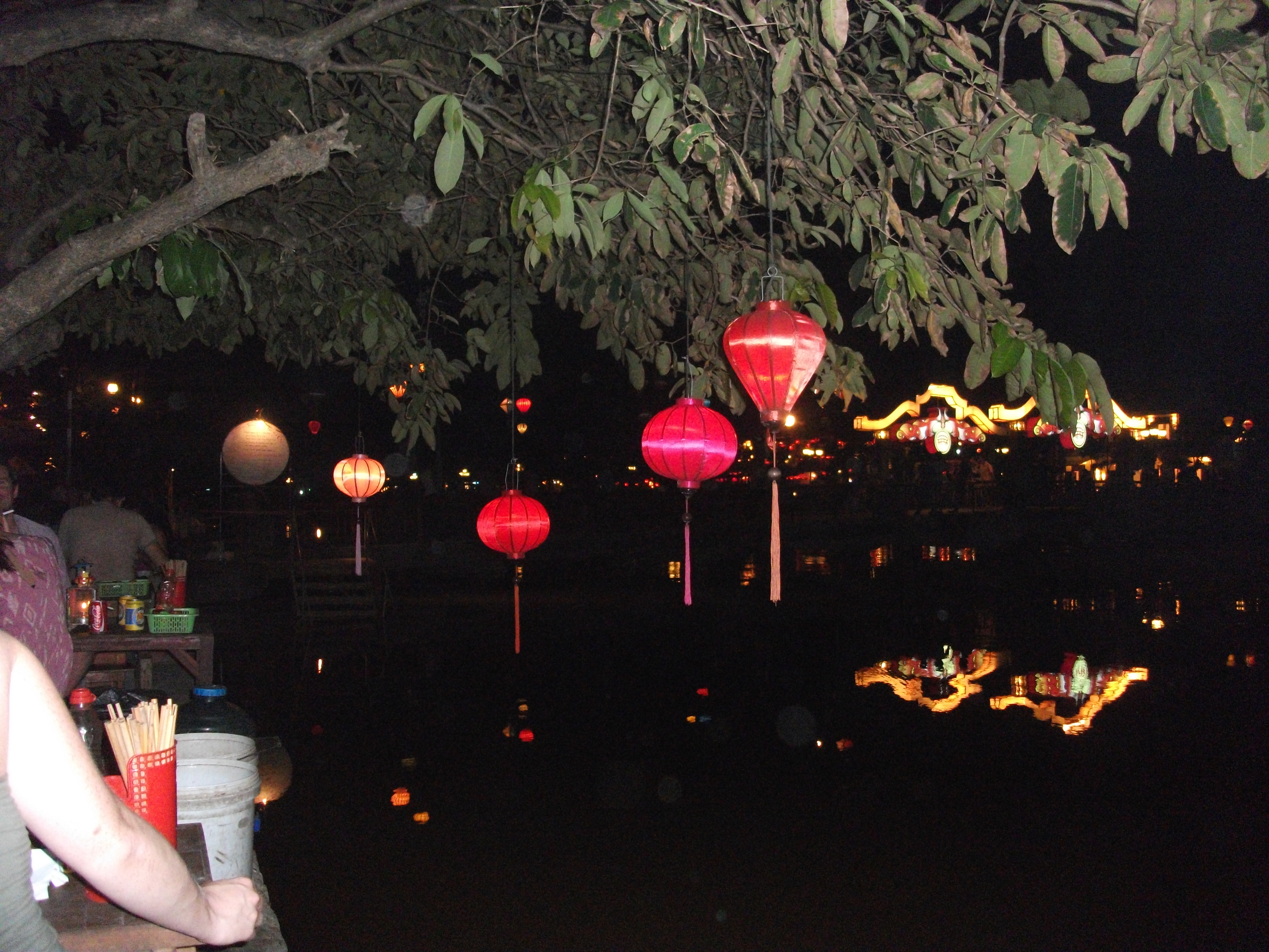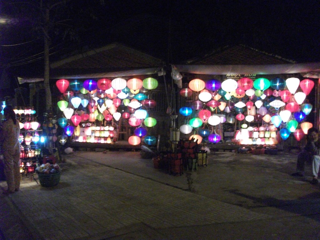 We decided to eat at a street stall instead of a restaurant so we walked along the riverfront until we made it to the end of the street and a really popular eatery. We had Cau Lau and the White Rose, both local specialties, with a couple Larue beers. Our total was $4. After dinner we walked across the bridge to An Hoi Peninsula where there were some more bars, restaurants, and a little street bazaar. We picked up a few more tiny lanterns (50 cents ea.) and returned to the hotel.