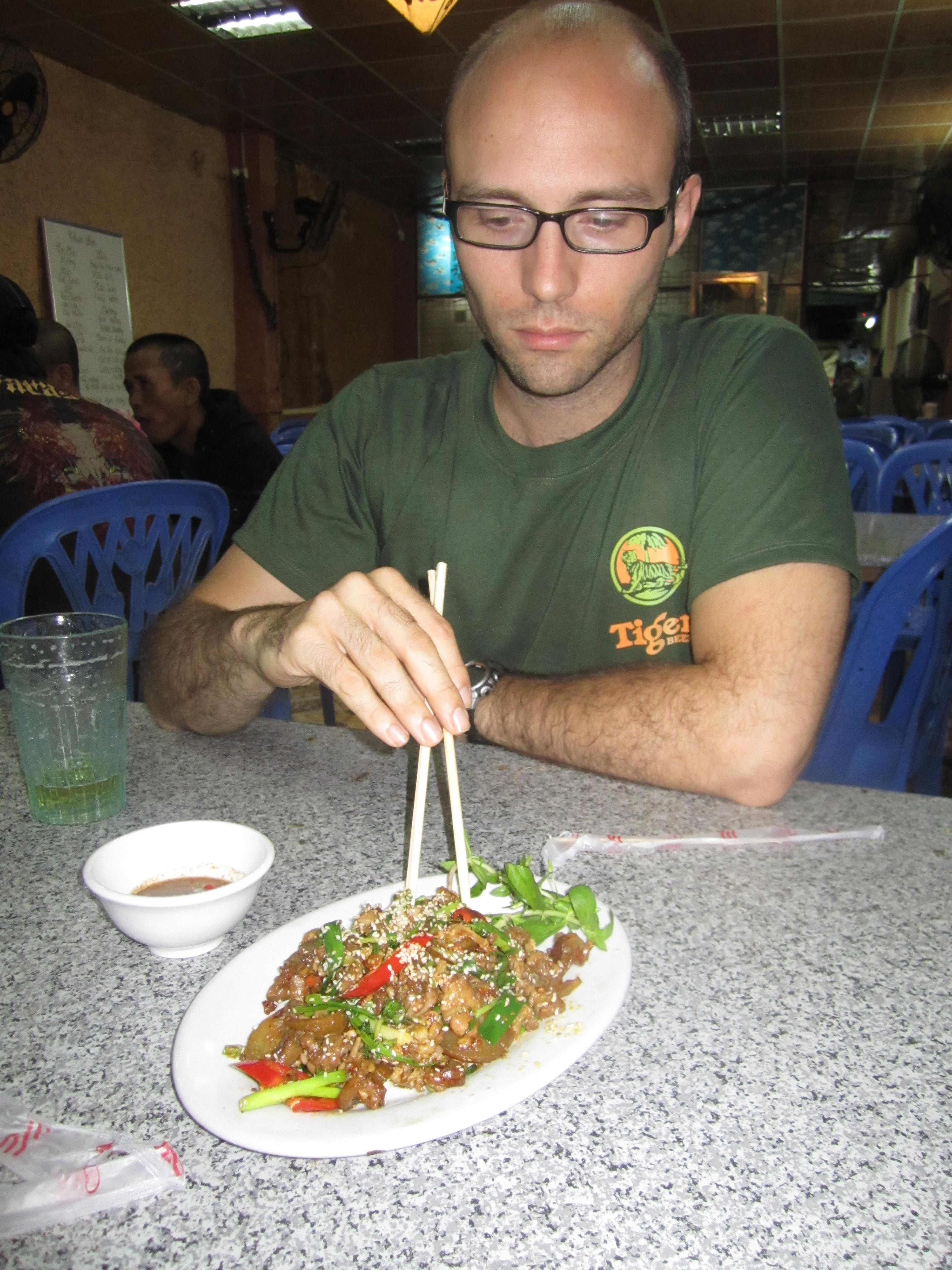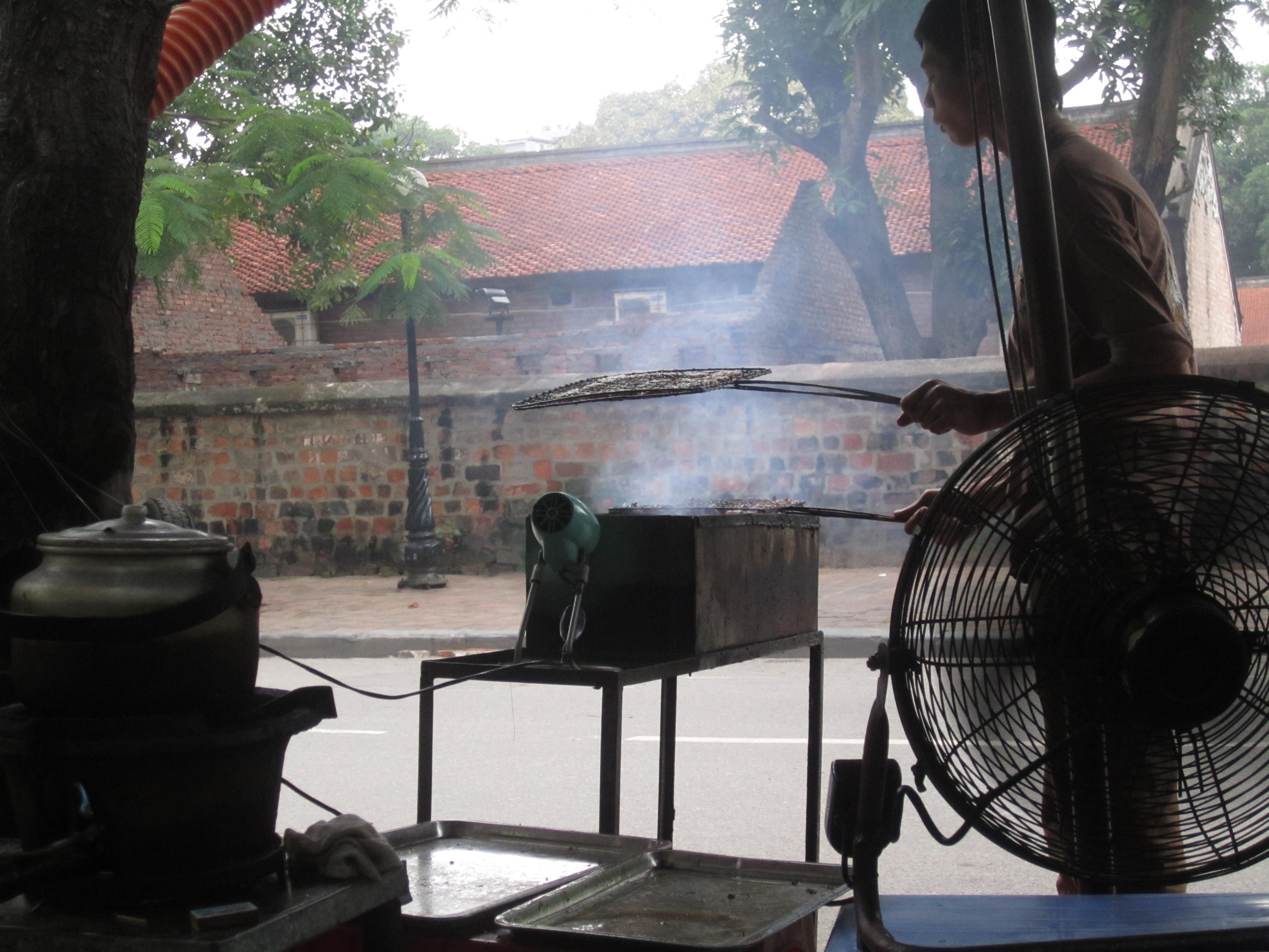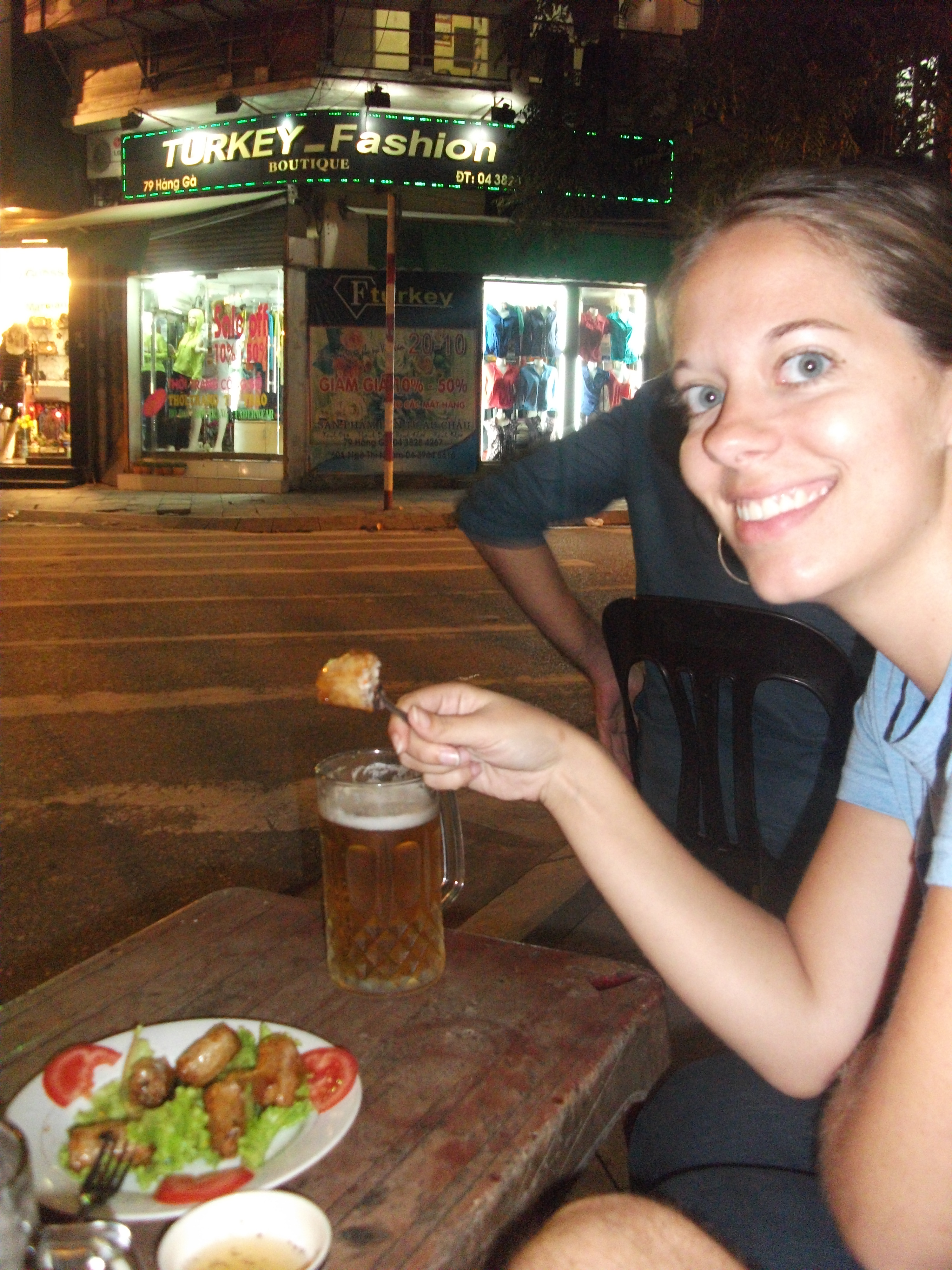 This morning we took our time and slept a bit longer and then packed up all of our things for our flight before checking out of the hotel at noon. We left our bags there and ventured out into Hanoi for the final time. I wanted to find a bookstore I had read about – Bookworm – so we set off for where it was supposed to be. When we eventually found the right address, it was no longer there. An Aussie couple was also looking for it and just as we were about to give up an older Vietnamese man came up to us and asked if we were looking for books. He communicated in short that the store had moved. He went back into his house and when he emerged he had 2 bookmarks with their new address! It was quite a bit further so we decided to go back around the corner for lunch at a Bun Cha place we had seen. That was the BEST DECISION. It was our first experience with bun cha and, WOW. Definitely my favorite dish of the trip. Oh man. Our combined meal was $3.50. What a deal! And it was so delicious. They just really know how to do pork here – and I LOVE pork.