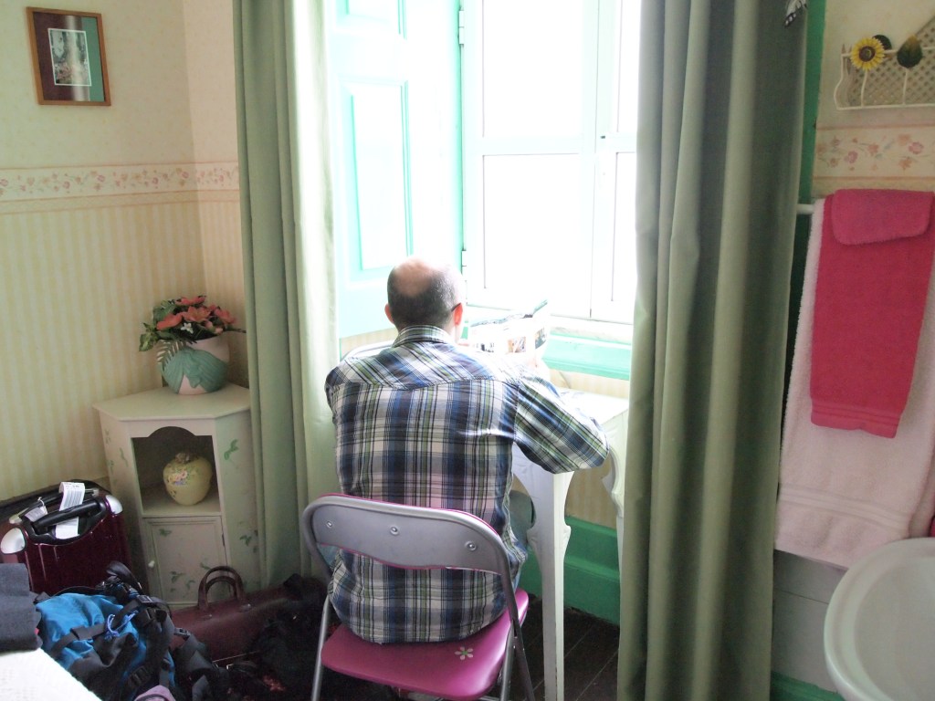 The ride to Coimbra was pretty uneventful. We couldn’t see too well out of the windows so I stuck to reading for the close to 2 hours it took us to get there. In Coimbra we snagged a taxi to take us to the guest house we had chosen (a room was already reserved for us) – Casa Pombal. Casa Pombal is run by a lovely Dutch woman who has been in Coimbra for almost 20 years. The building is a converted townhome in the heart of the student district. She gave us a map and several great tips on where to go for fado and food. Our room is plain, but really cozy. We chose to have a room which shares a bathroom with the floor – there are 3 rooms on our floor – but there are no other guests staying next to us so we essentially have our own bathroom.