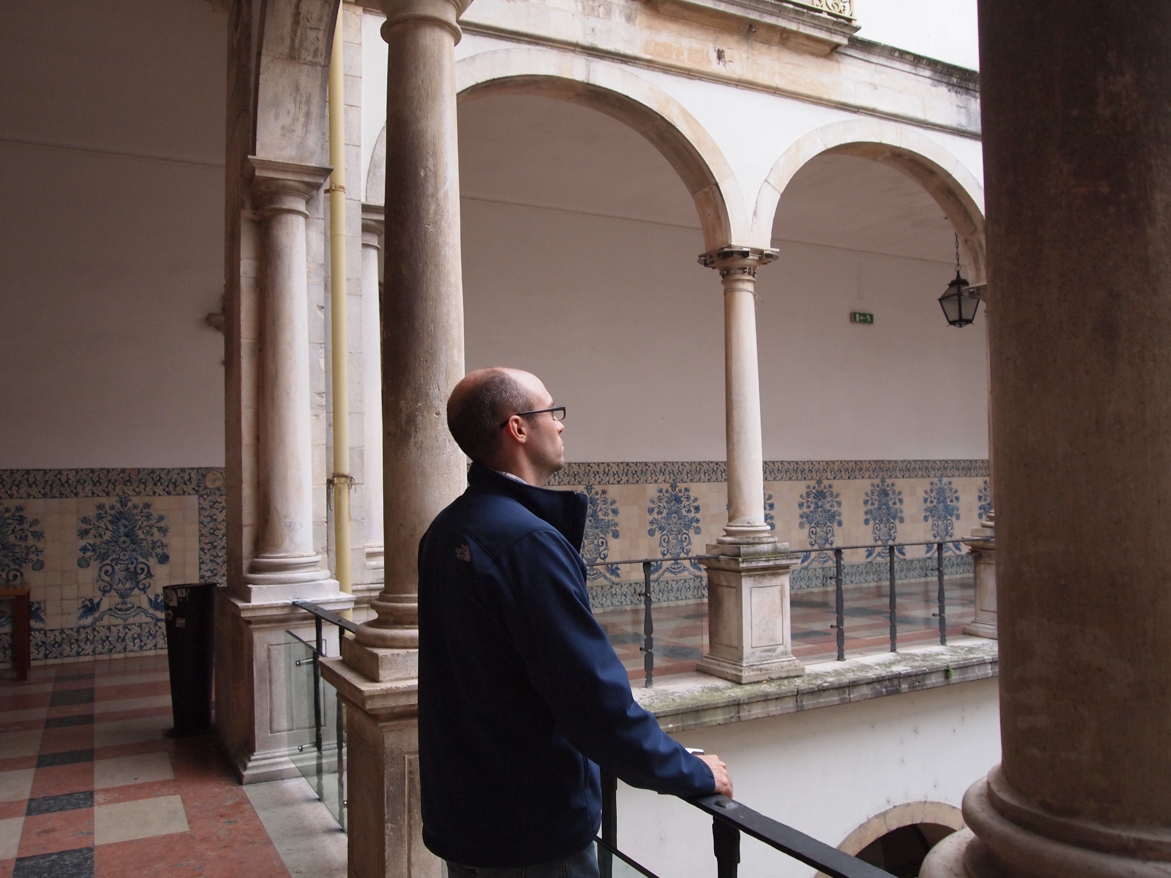 After we settled in we walked over to the main square of the original university (it has since expanded). We could walk into a few classrooms, but most things were already closed. It’s amazingly old and of course, there are many azulejos. The university sits at the top of the hill so there is quite a view from the square (and the classrooms). After leaving the university we hiked down to the center of town and caught a little fado at a beautiful cafe. Fado in Coimbra is generally happier and usually only men – Zach and I both prefer Lisbon fado which sounds more mournful.