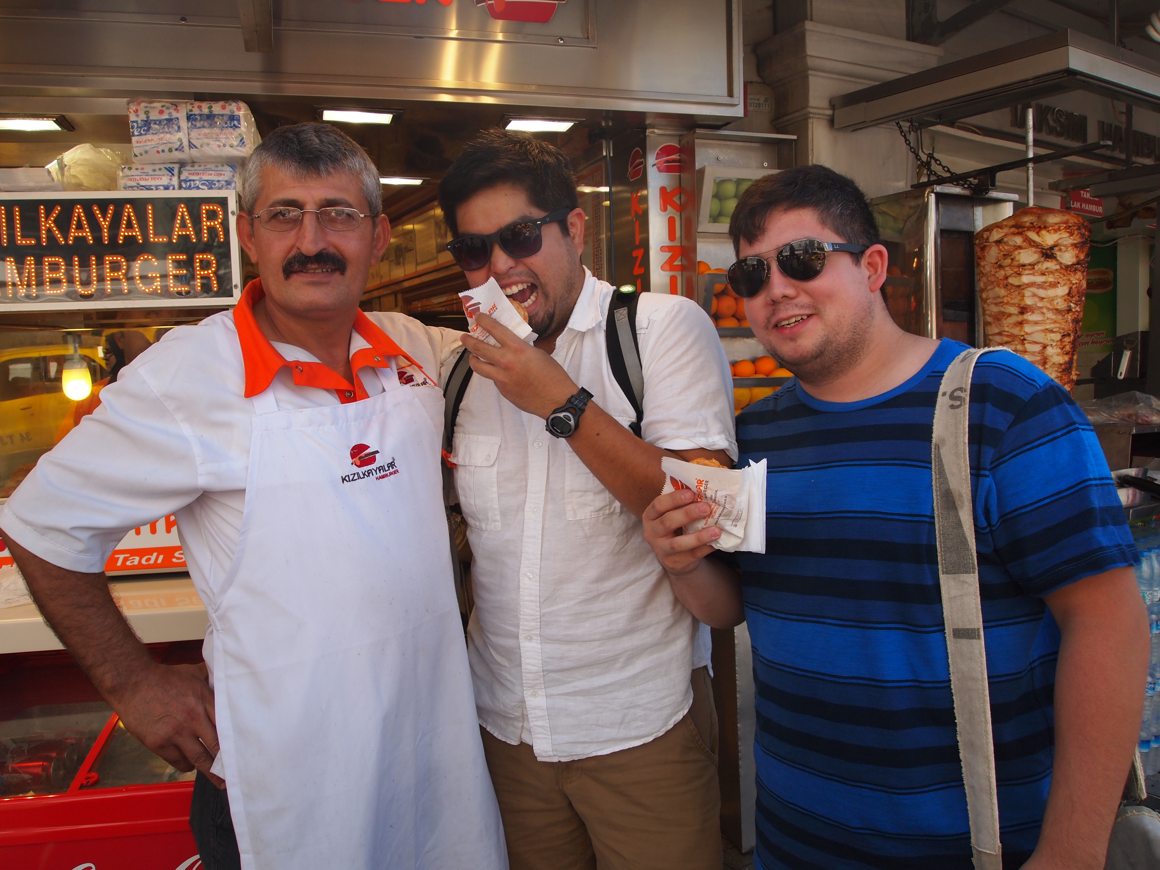 Taksim Square meets one of Istanbul’s busiest streets, Istiklal. So we strolled down Istiklal which was filled with people celebrating the end of Ramadan and ended up stopping for tea to get out of the crowd. Tim wanted to find the wet burgers that Anthony Bourdain had eaten on his episode for Istanbul so we tracked them down in Taksim Square. Zach, Rudy, and Tim all ate one. I just tasted a bit. It was like a chorizo sloppy joe. Surprisingly the bun really wasn’t that wet and it was pretty tasty. After that we continued our walk down Istiklal and ducked into some shops every now and then to do some shopping.
