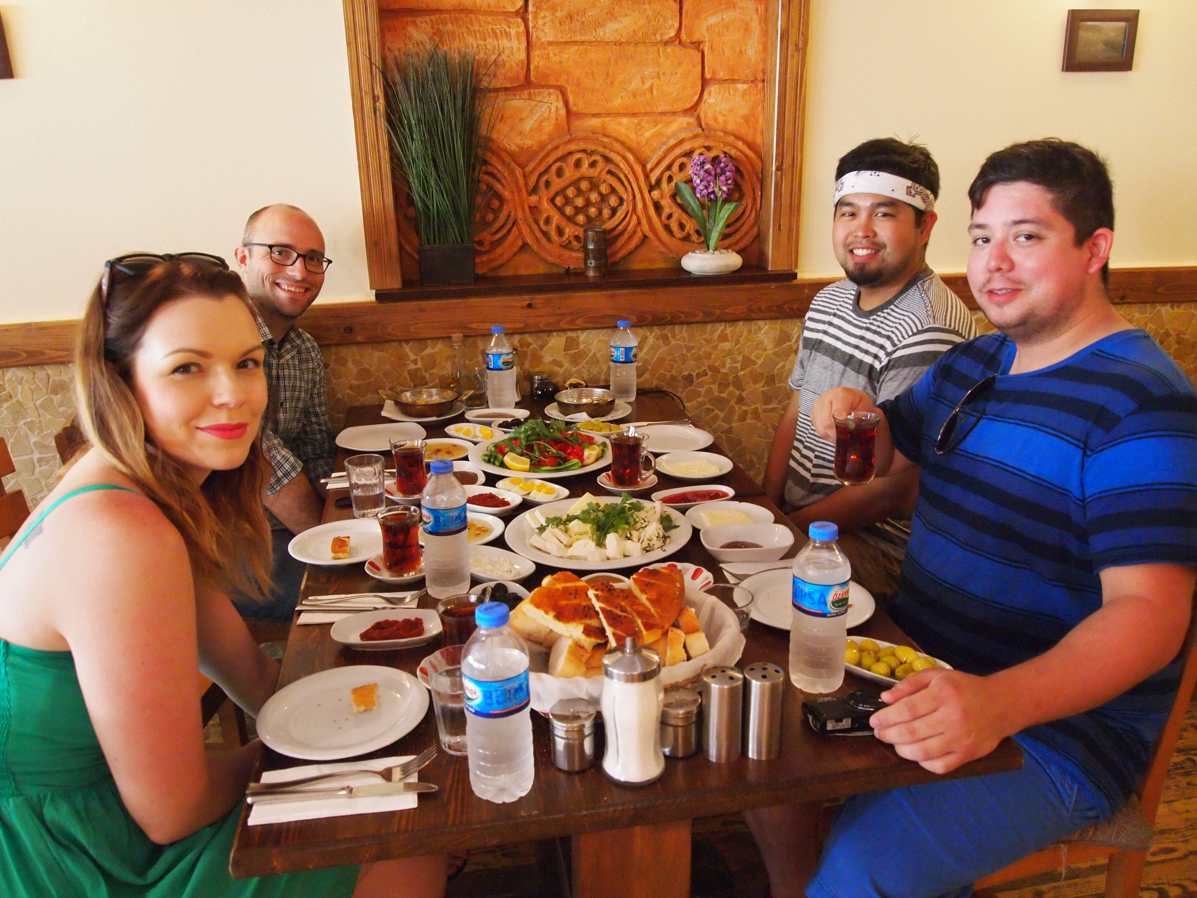 This morning we slept in a little and then decided to go have a Turkish breakfast. We ended up at a great place – Van Kahvalti Evi. We got the whole spread – tomatoes, cucumbers, a lot of different cheeses, some delicious bread, strawberry jam, nutella, a peanut sauce-like spread, honey, clotted cream, hard-boiled eggs, and more that I can’t even remember. It was really wonderful and was accompanied with as much Turkish tea as we wanted! The place was pretty small – 6 tables inside and more out on the sidewalk patio – but the ambiance was really pleasant. The guys working our table were warm and incredibly attentive. It’s definitely a place I wouldn’t mind visiting again.