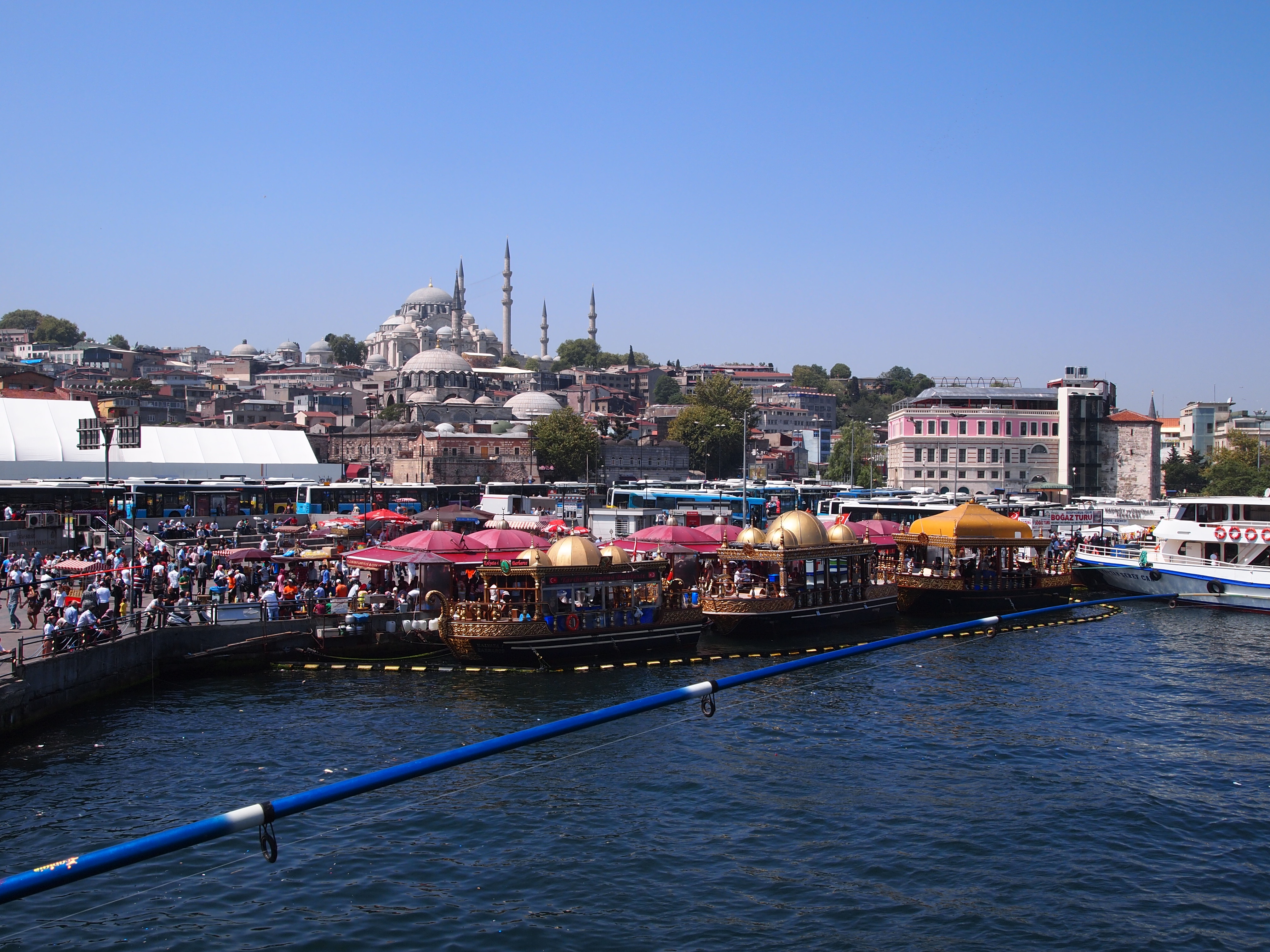 So we wandered the grounds a bit before heading to a café Fatih had recommended. The Mimar Sinan Teras Café was located just down the street from the mosque and had excellent views of the city. We sat outside on their terrace and had some snacks and drinks. Their view is magnificent. You can see the opposing European side and Galata Tower; the Golden Horn meeting the Bosphorus; the Asian side in the distance; Topkapi Palace and Hagia Sophia.