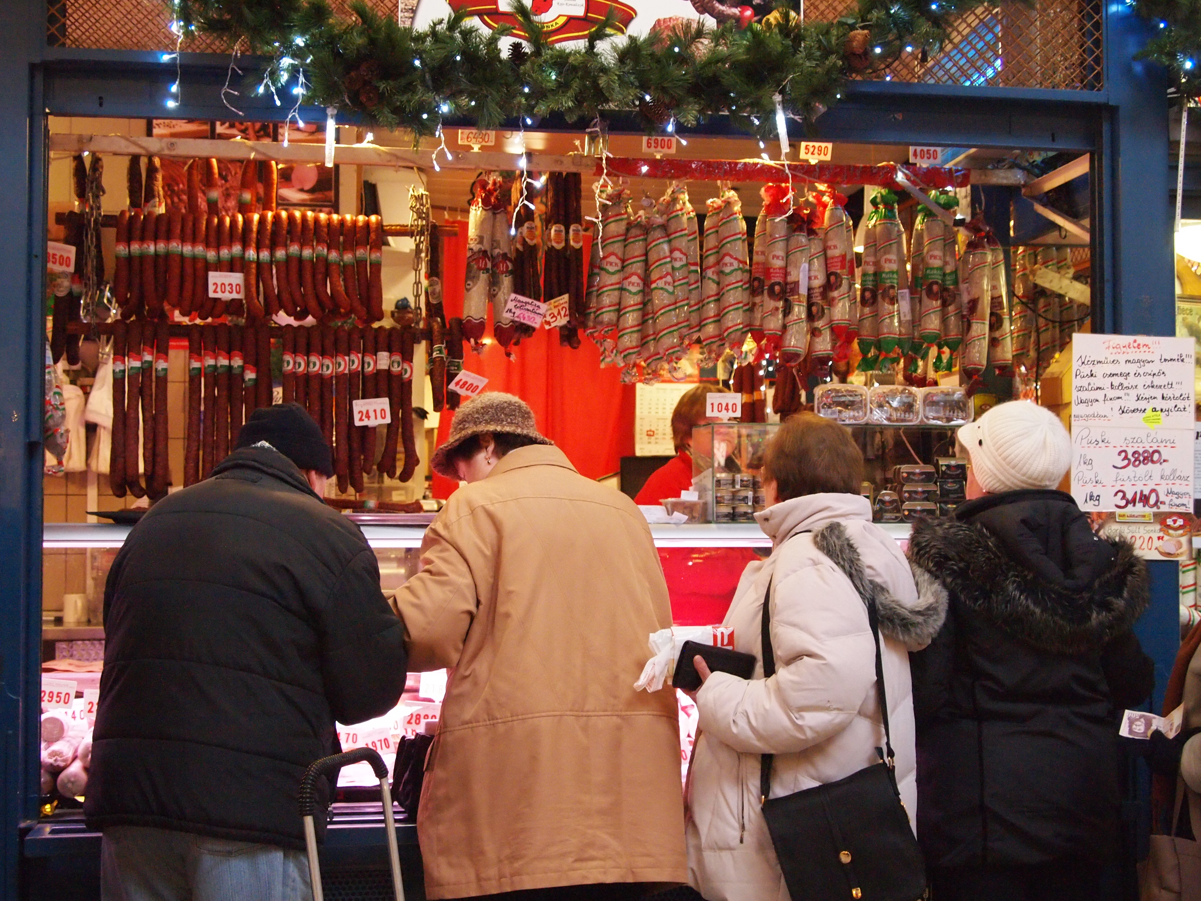 We decided to see the Great Market Hall (Nagycsarnok) first. The Great Market Hall is a giant city market where you can buy fruits, vegetables, meat, booze, and of course lots of tourist knickknacks. The first floor is dedicated to the grocery items while the second has row upon row of craft stalls selling everything from scarves to figurines. There are also some food stalls on the 2nd floor and while we were very tempted we had just eaten our breakfast.