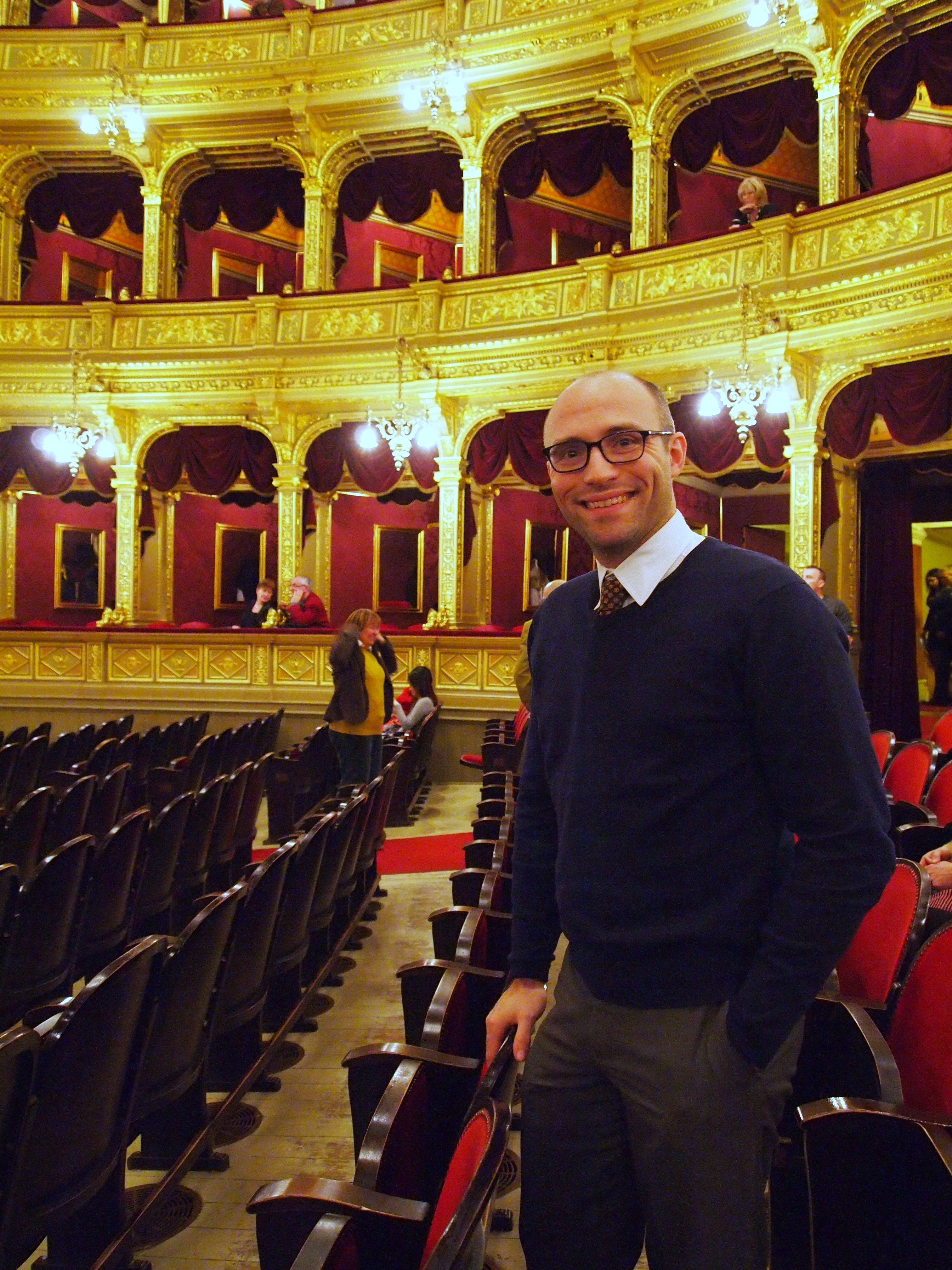 We left the Christmas Market resolved to come back the next day, made a quick detour to a bookstore just behind the Opera, and then headed back to Laszlo’s to clean up and rest before our concert at the Opera House. Before we left Austin, I bought tickets to the Budapest Philharmonic Christmas Concert so that we could see the Philharmonic and see a performance at Budapest’s gorgeous opera house. And it is gorgeous. Wow. It’s a very intimate and opulent space – I know that my photos are inadequate. We had great seats on the floor. The concert was fantastic, the space was gorgeous – I’m so glad we had the opportunity to see a performance. It was just breathtaking.