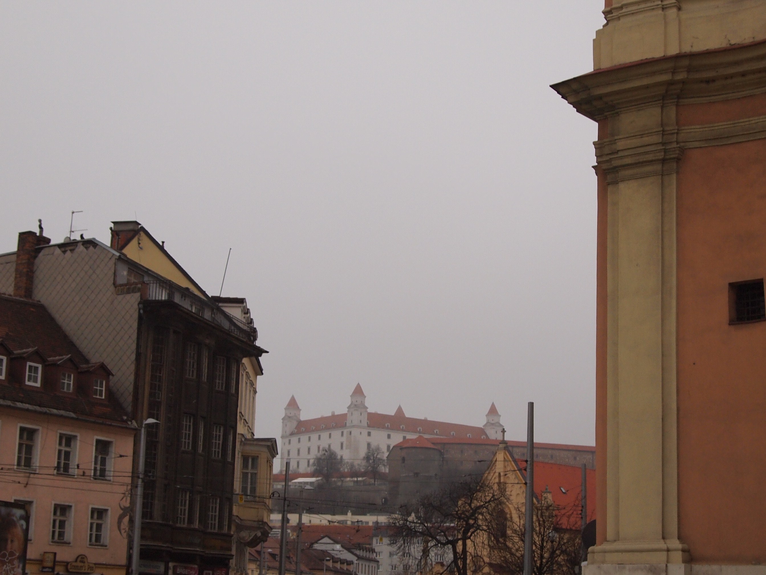 Yesterday morning we got up pretty early since we wanted to catch the 9:25 train to Bratislava. Unfortunately, even though we were at the station in time, we didn’t see the listing for our train’s platform number. I asked customer service – which is notoriously apathetic in Budapest – and he told me that our train was leaving from Track 3. So we bought some breakfast and rushed over to platform 3. No train. We waited awhile – it’s possible that it was running late, right? – and a train did finally show up. We got on; no one else did. So Zach asked one of the train operators if it was going to Bratislava and of course, it wasn’t. So we had another two hours to kill before the next train to Bratislava. We were both pretty upset because there was no explanation for our missing the train – we weren’t late, we had asked where it would be, and still we weren’t on our way to Bratislava. So we ended up sitting in a rather depressed train station restaurant with tea and coffee until the next train arrived and we could board. This time we were out looking at the board at least 30 minutes before the departure so that there could be no room for error. Thankfully, everything worked out and we left Budapest at 11:25.