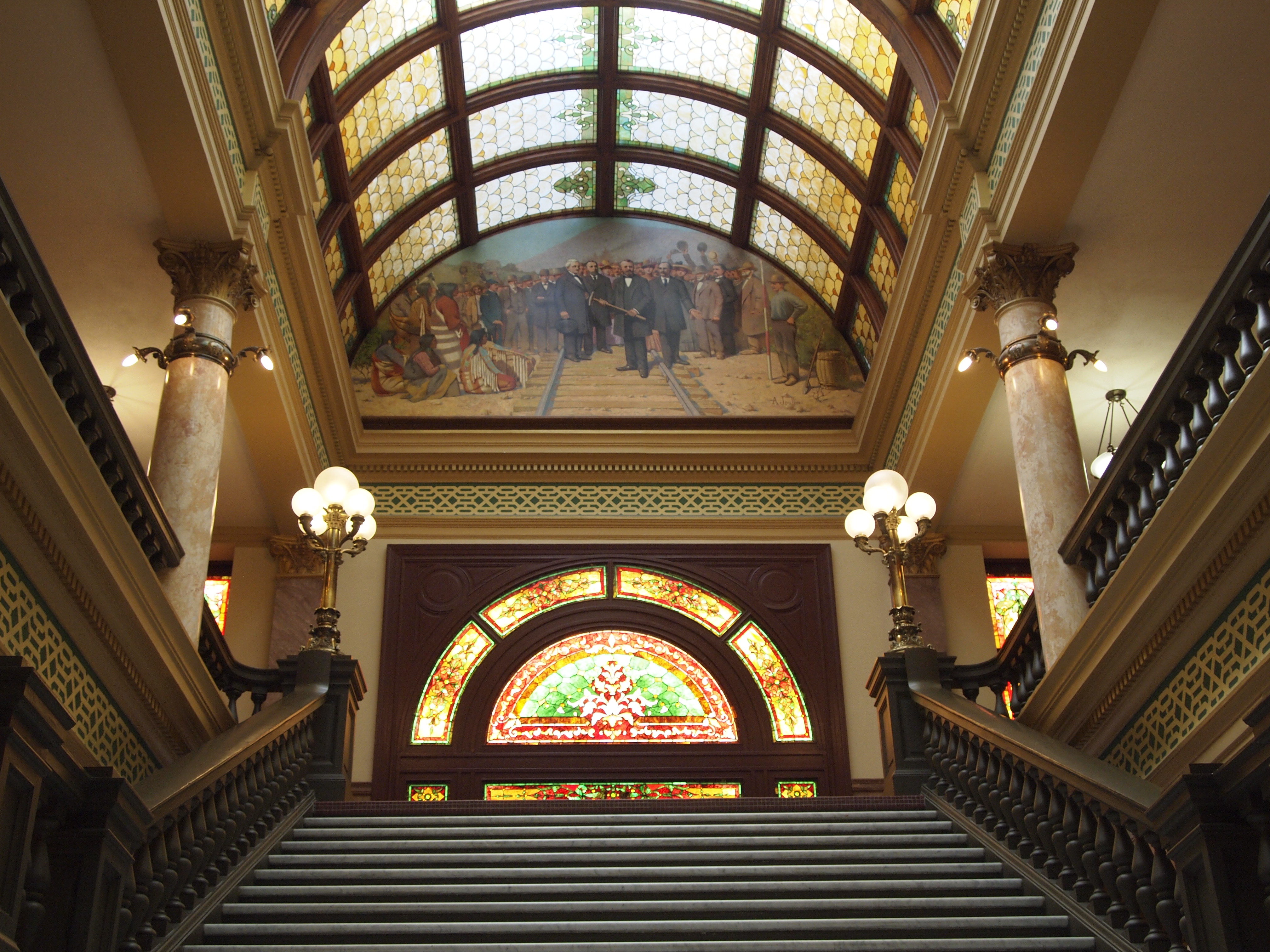 This morning we got up and had breakfast at the hotel before checking out. We are on our way to Utah today but made a stop in Helena for a few hours to tour the Capitol and have lunch. Helena grew out of the gold rush like so many other western cities but Helena managed to make its wealth last not just with gold, but with silver and lead too. Helena was first the territorial capital and then retained its status once Montana became a state.