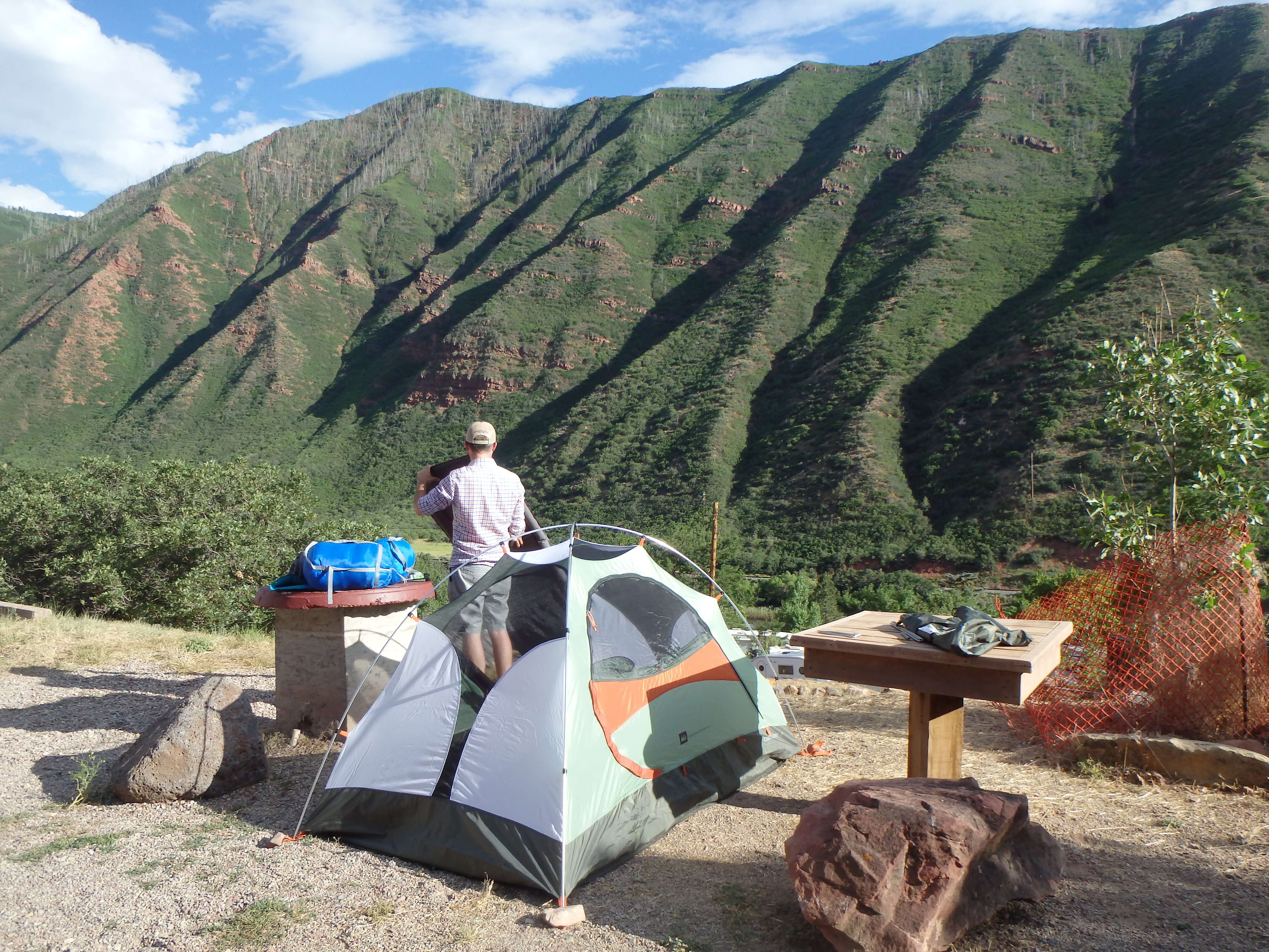 Well we got into Glenwood Springs last night as planned – around 6pm. We checked into our campsite and set up. It was a really nice spot with a view of the mountain across the Colorado River. There were showers and bathrooms down the trail, 2 outlets at our site so we could charge some appliances (that has been a problem for us on this trip), and even wifi down by the office.