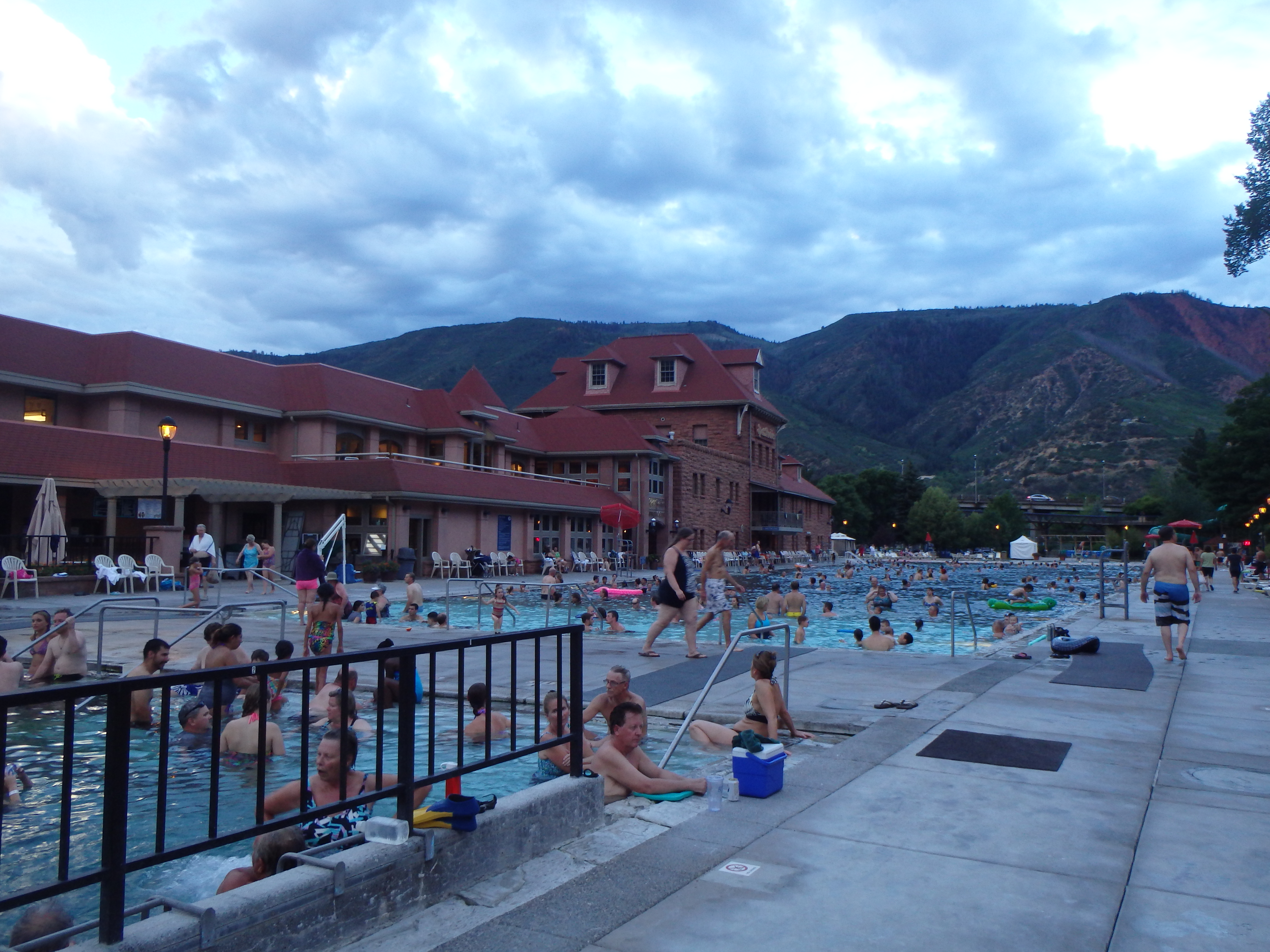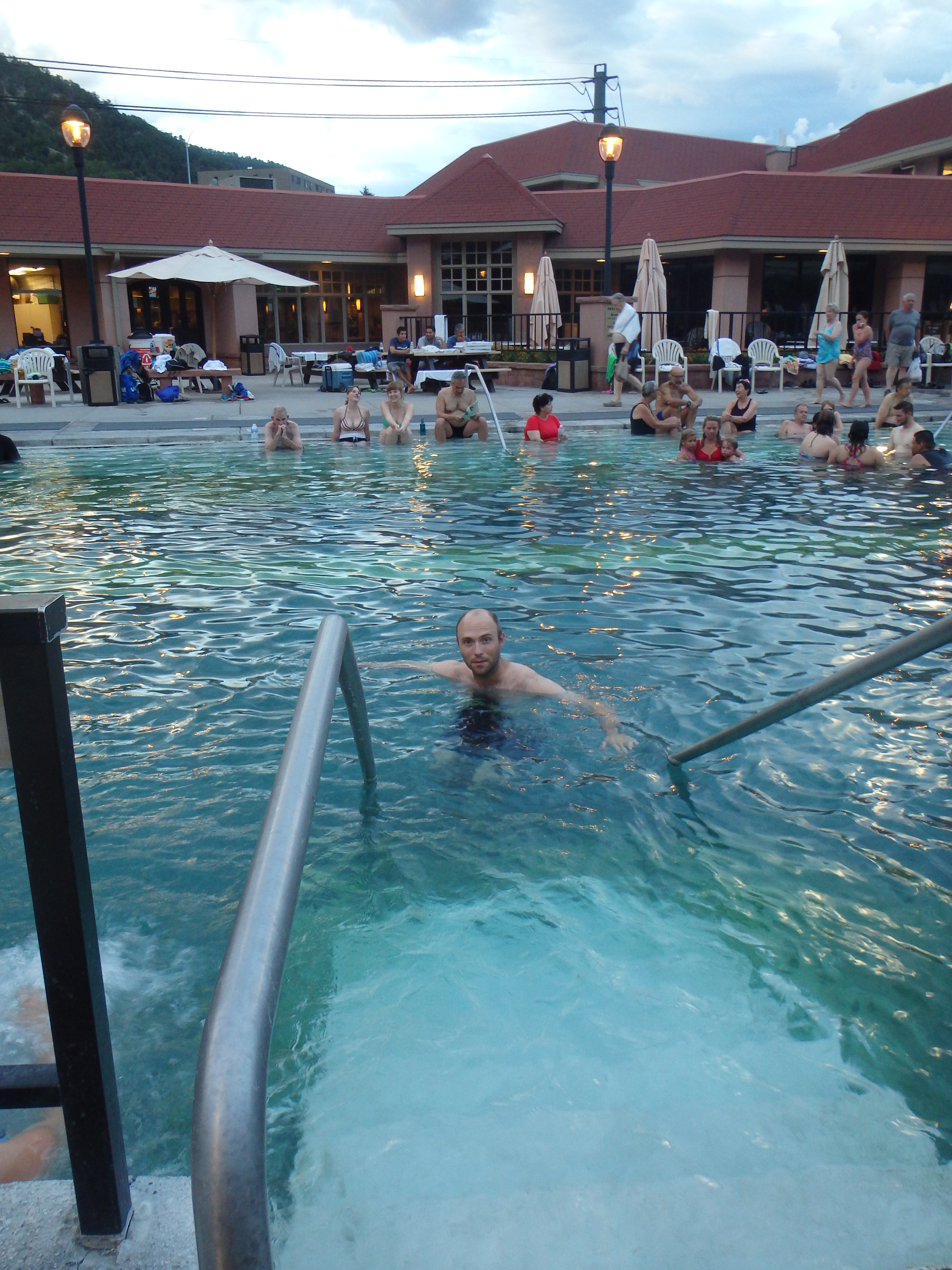 We decided to eat some dinner first and found a nice Italian place on Glenwood’s main avenue. Our food was delicious. I can’t remember the name or I would give them a plug! After we finished eating we went to the hot springs! The Glenwood Hot Springs have been around since 1888 when the pool and resort first opened to guests. There are two pools – one is cooler (90-93 degrees) and a hotter one (102-104 degrees).