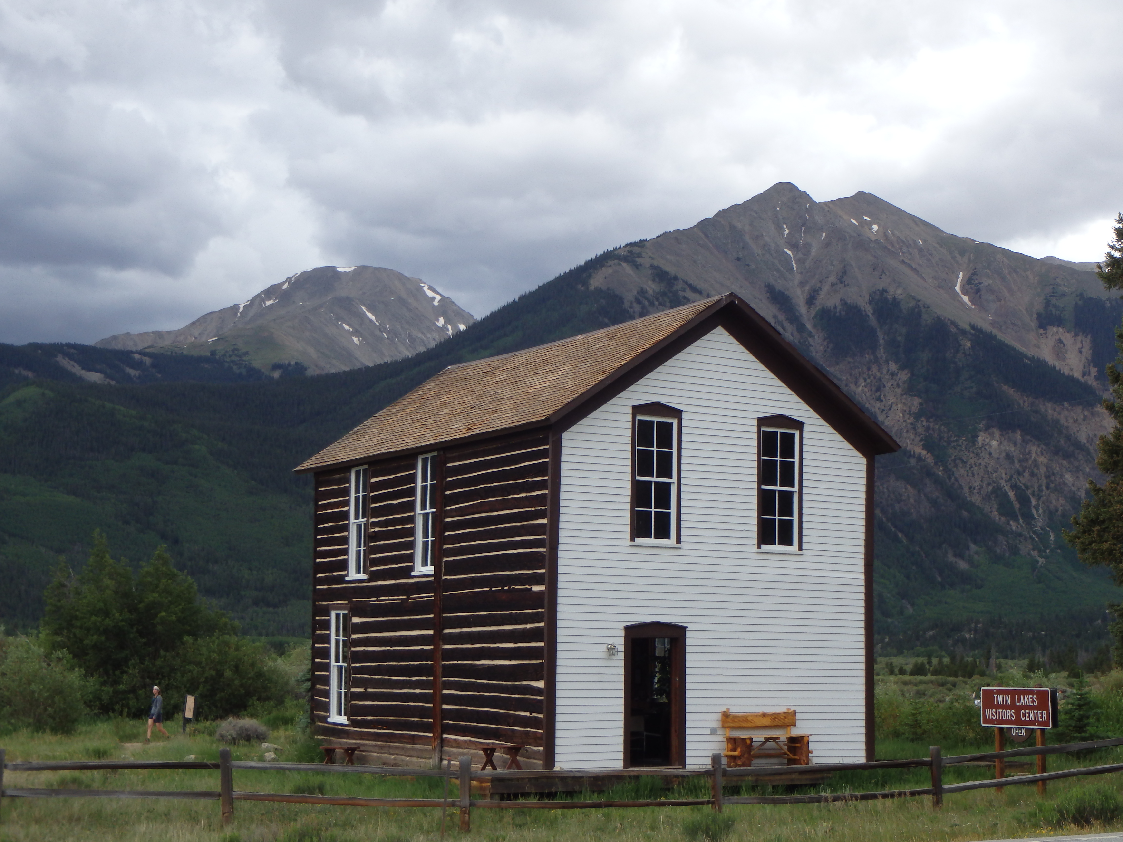 We drove up to Independence Pass crossing the Continental Divide (for the millionth time on this trip). As we got out to walk to the scenic overlook it was sprinkling – no big deal. But when we reached the overlook it started to pour – and hail! So we high-tailed it back to the car and sat watching for a while. It kept hailing so we ended up heading back down the mountain which was slightly terrifying.