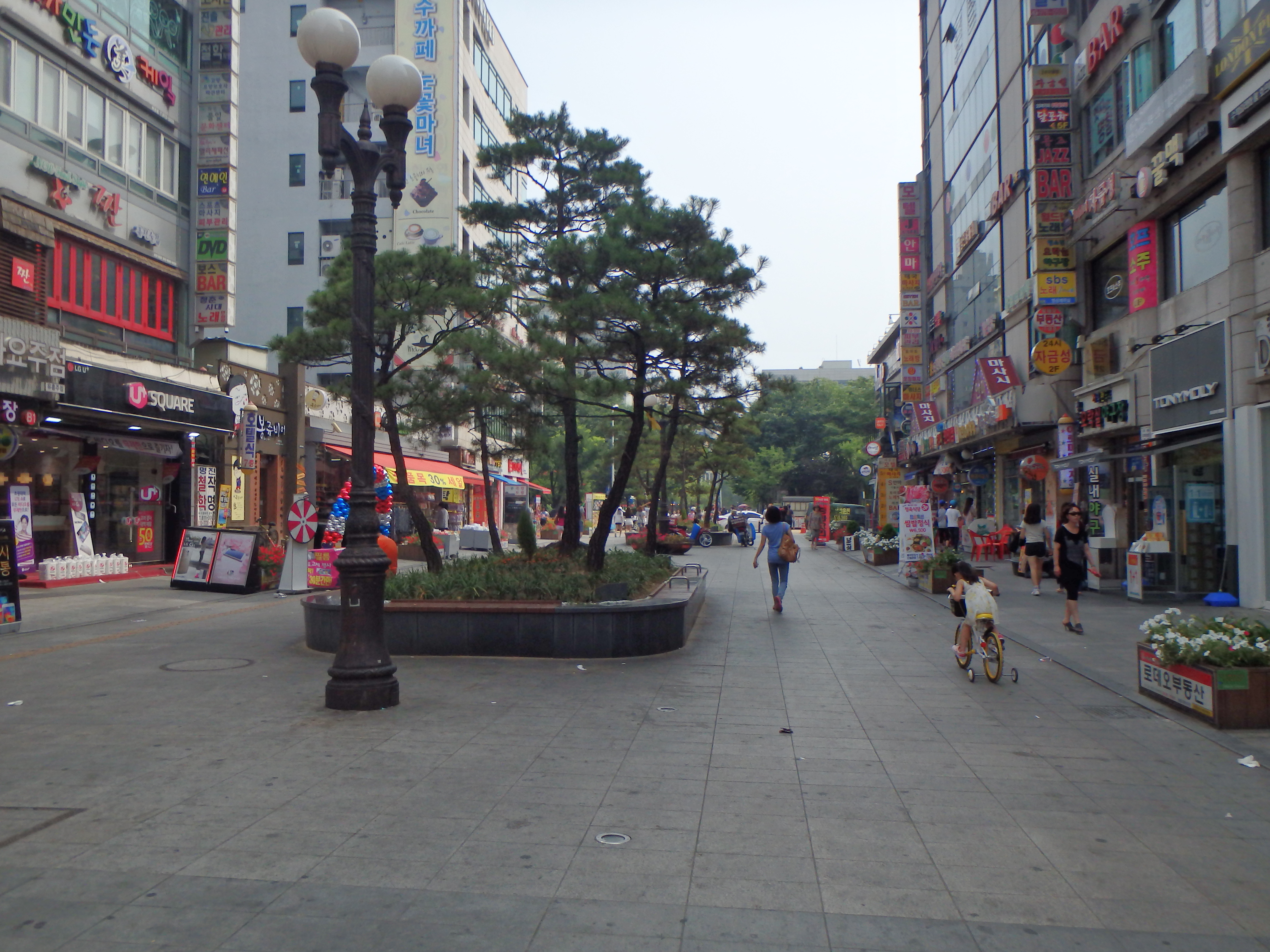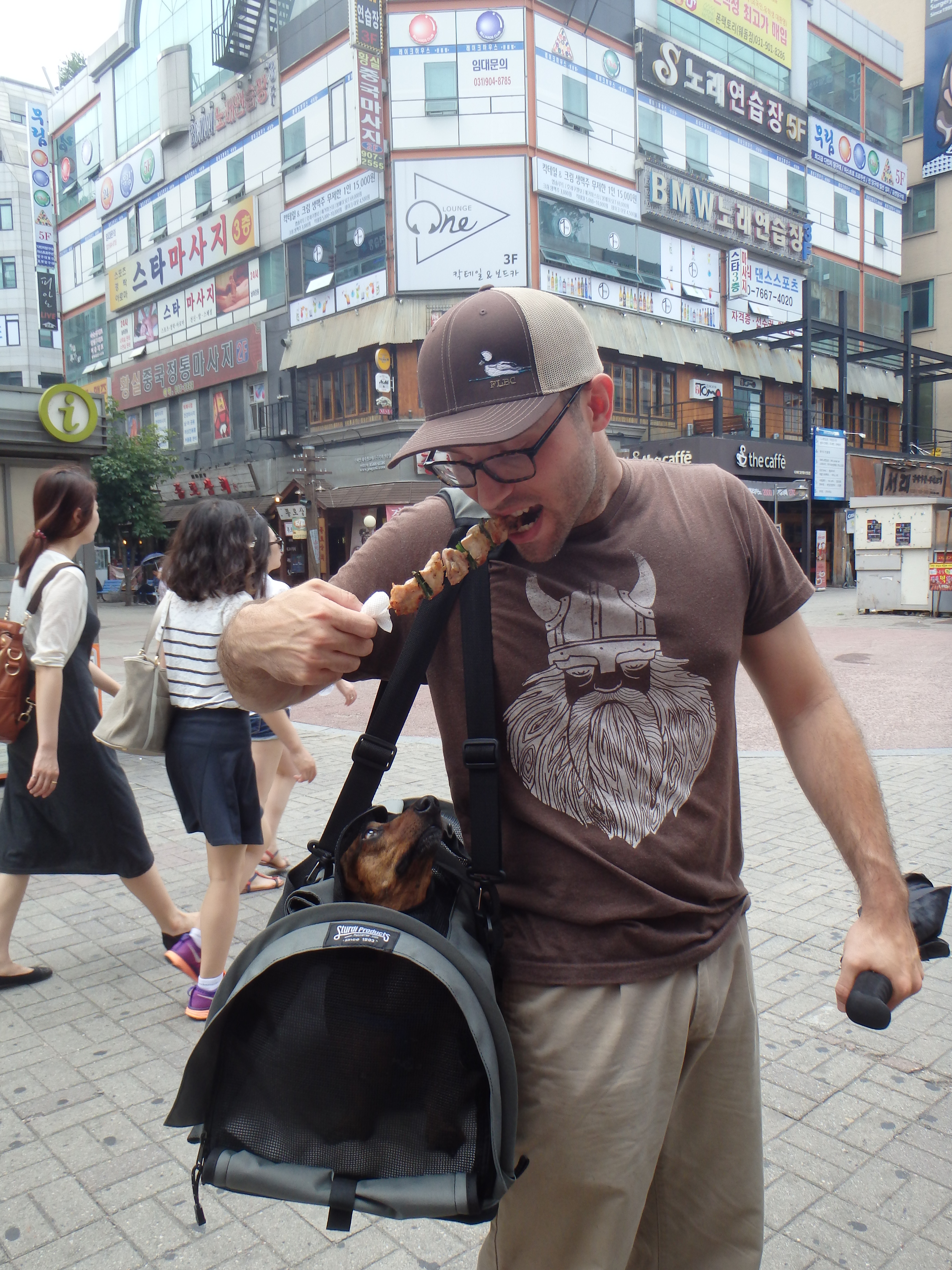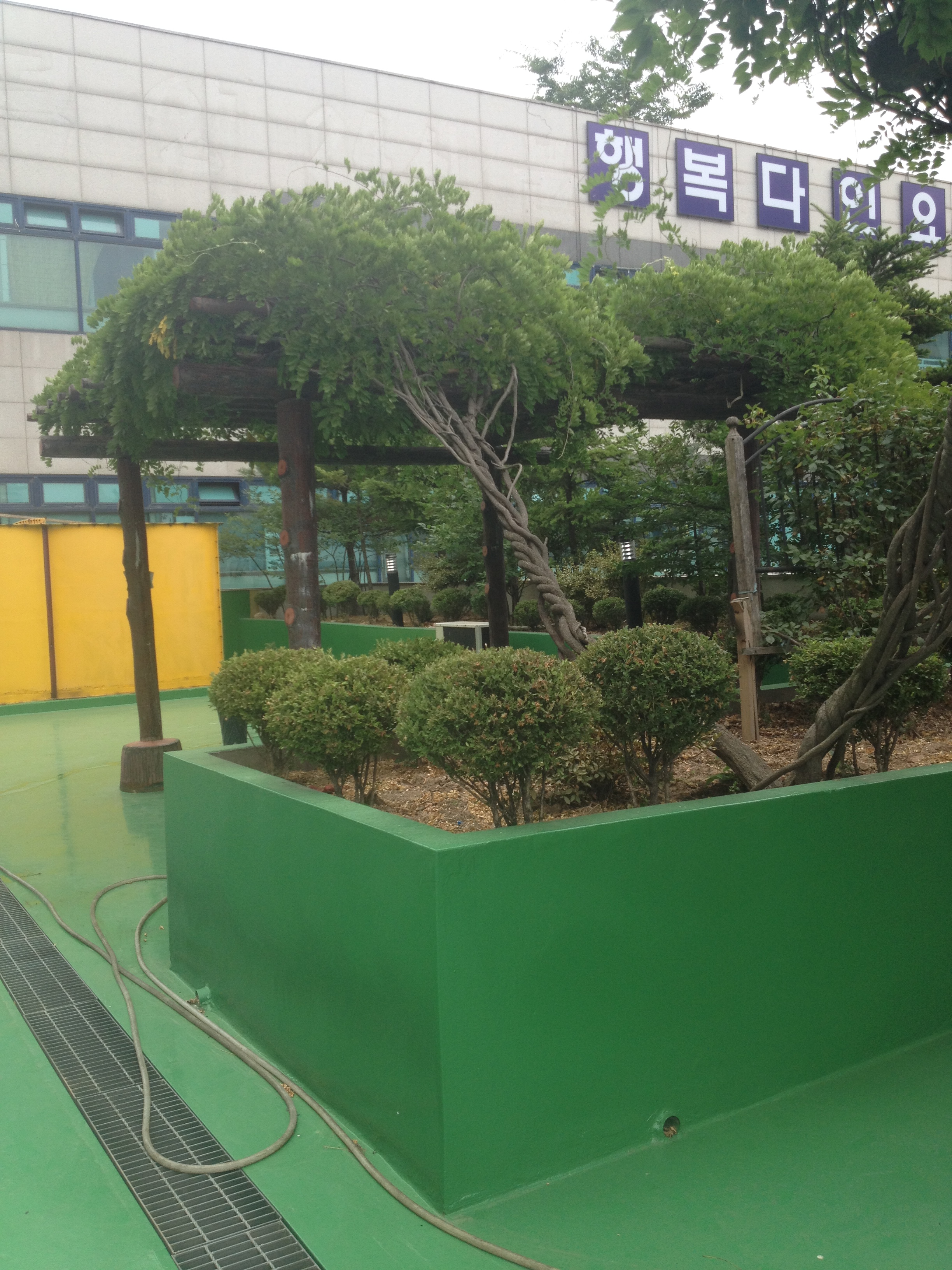 We did a little exploring around our neighborhood, Hwajeong. We took Truman to a park that’s across the street from our hotel and let him walk around and smell.