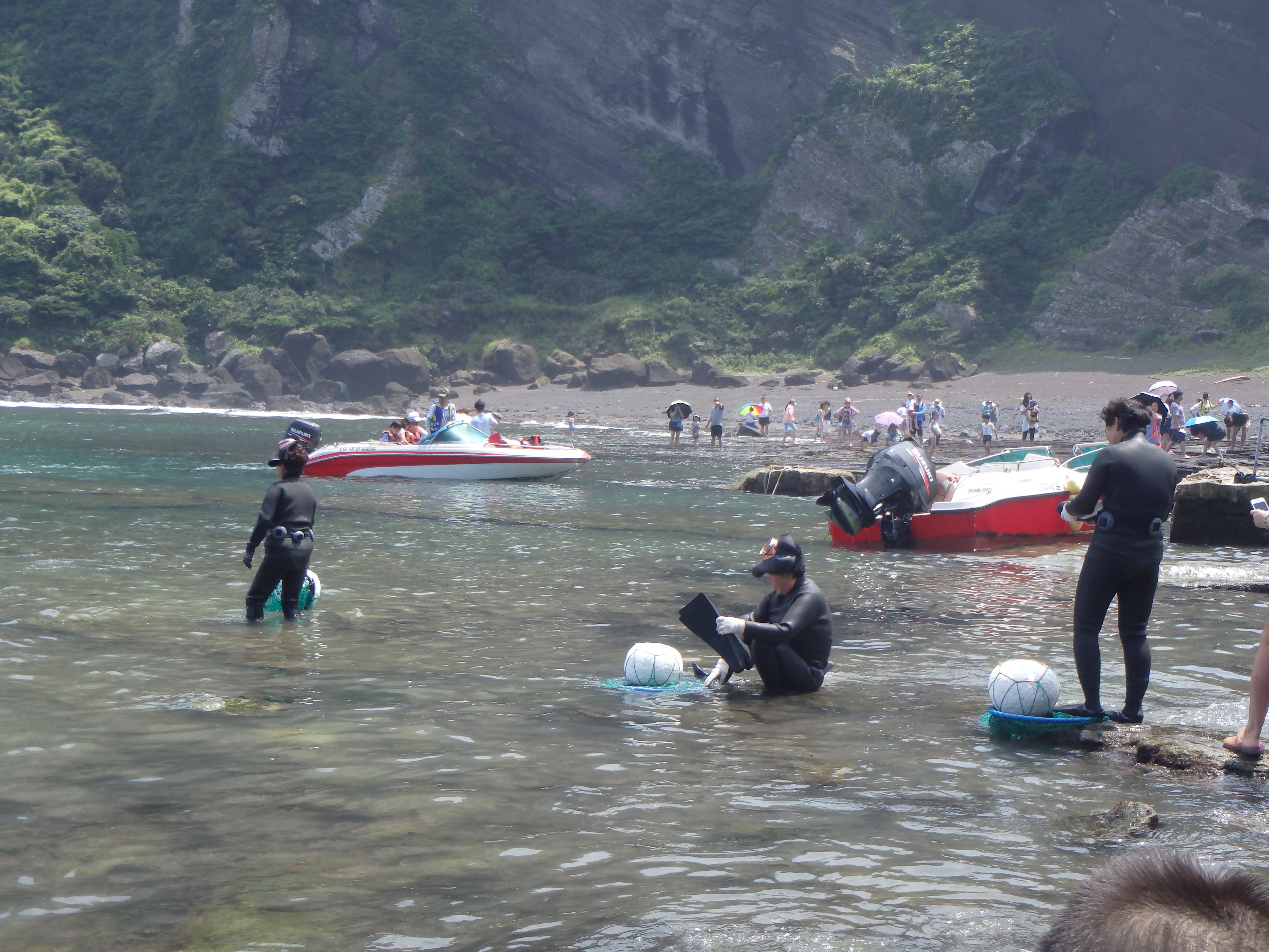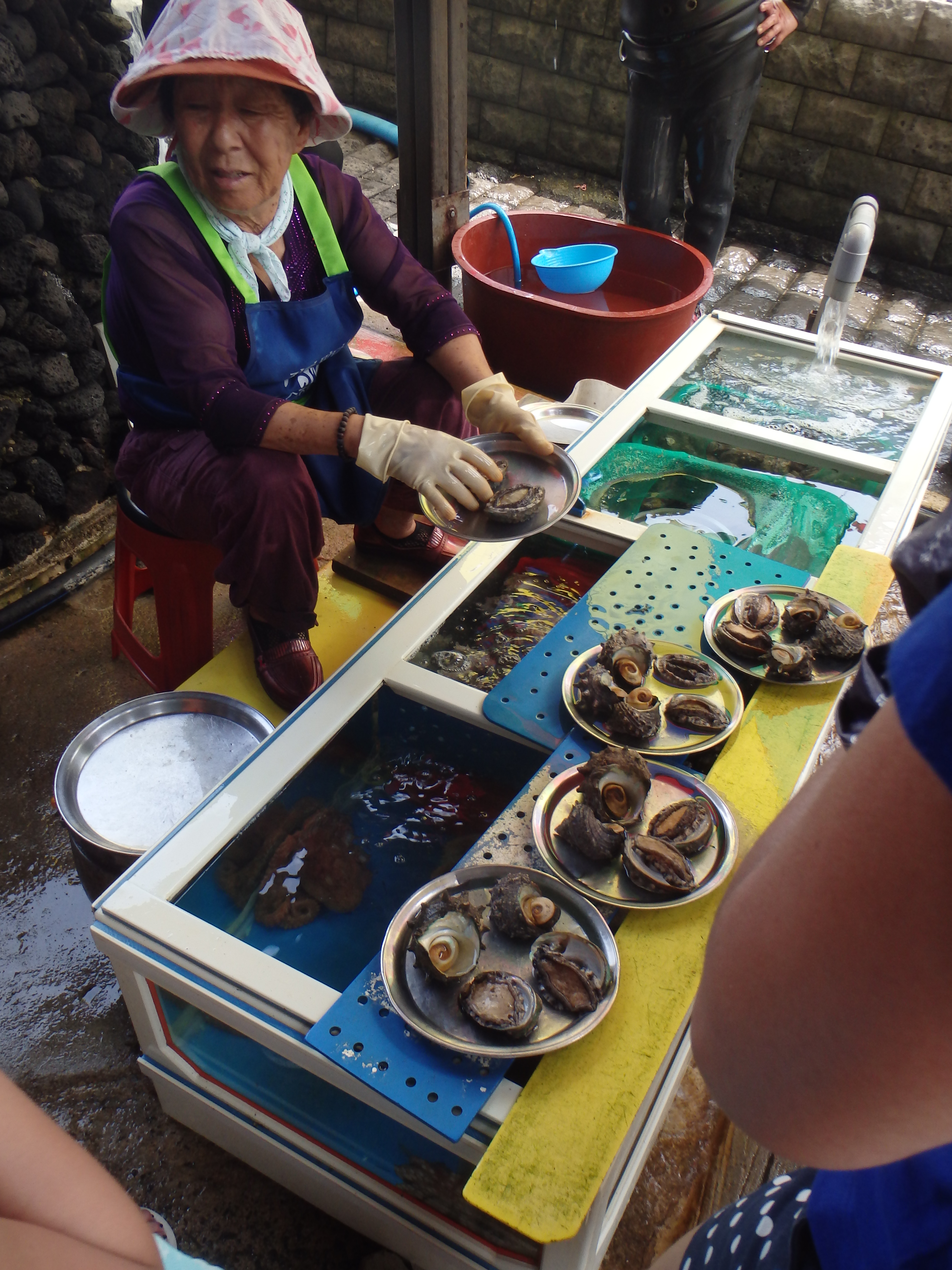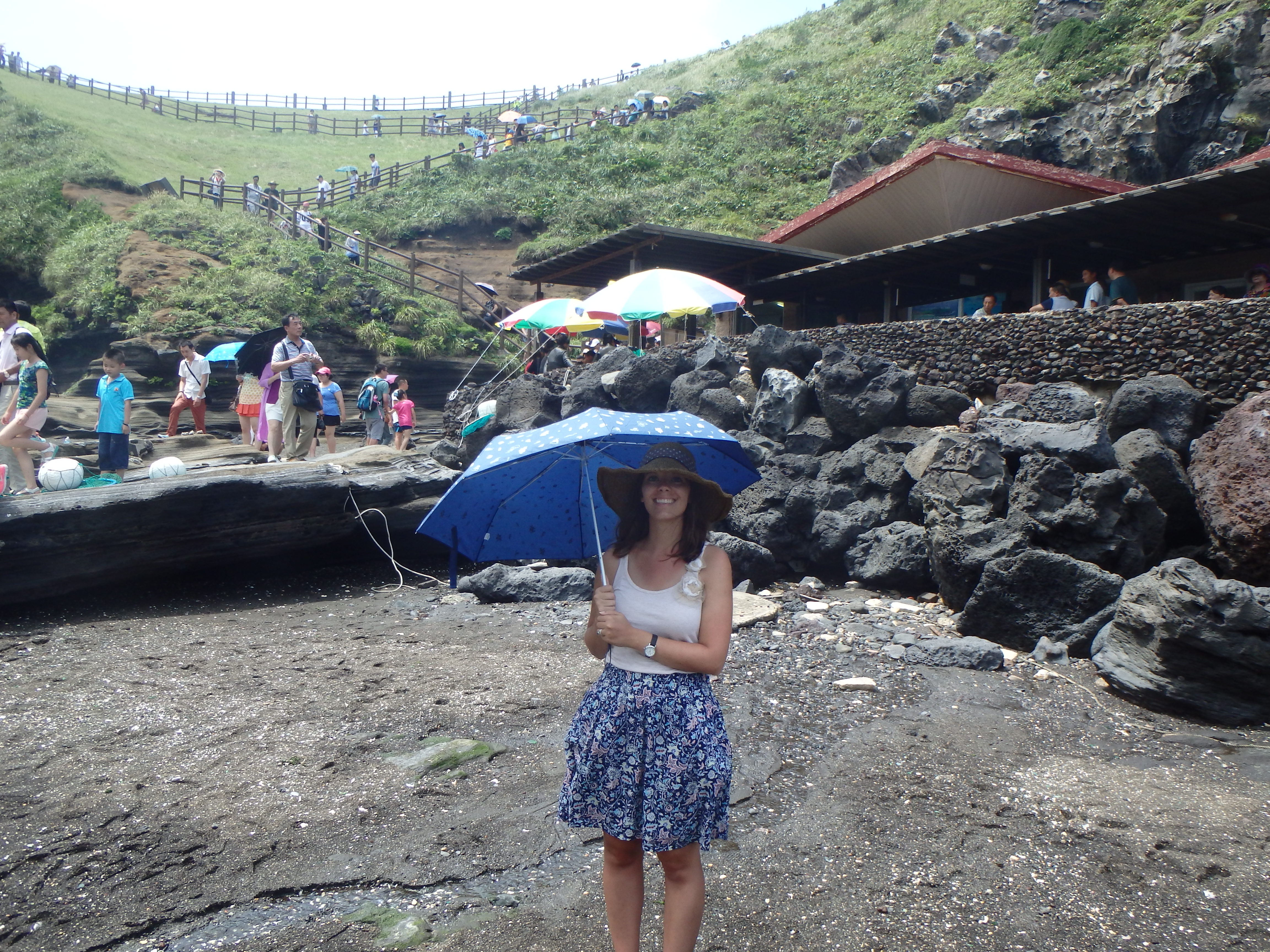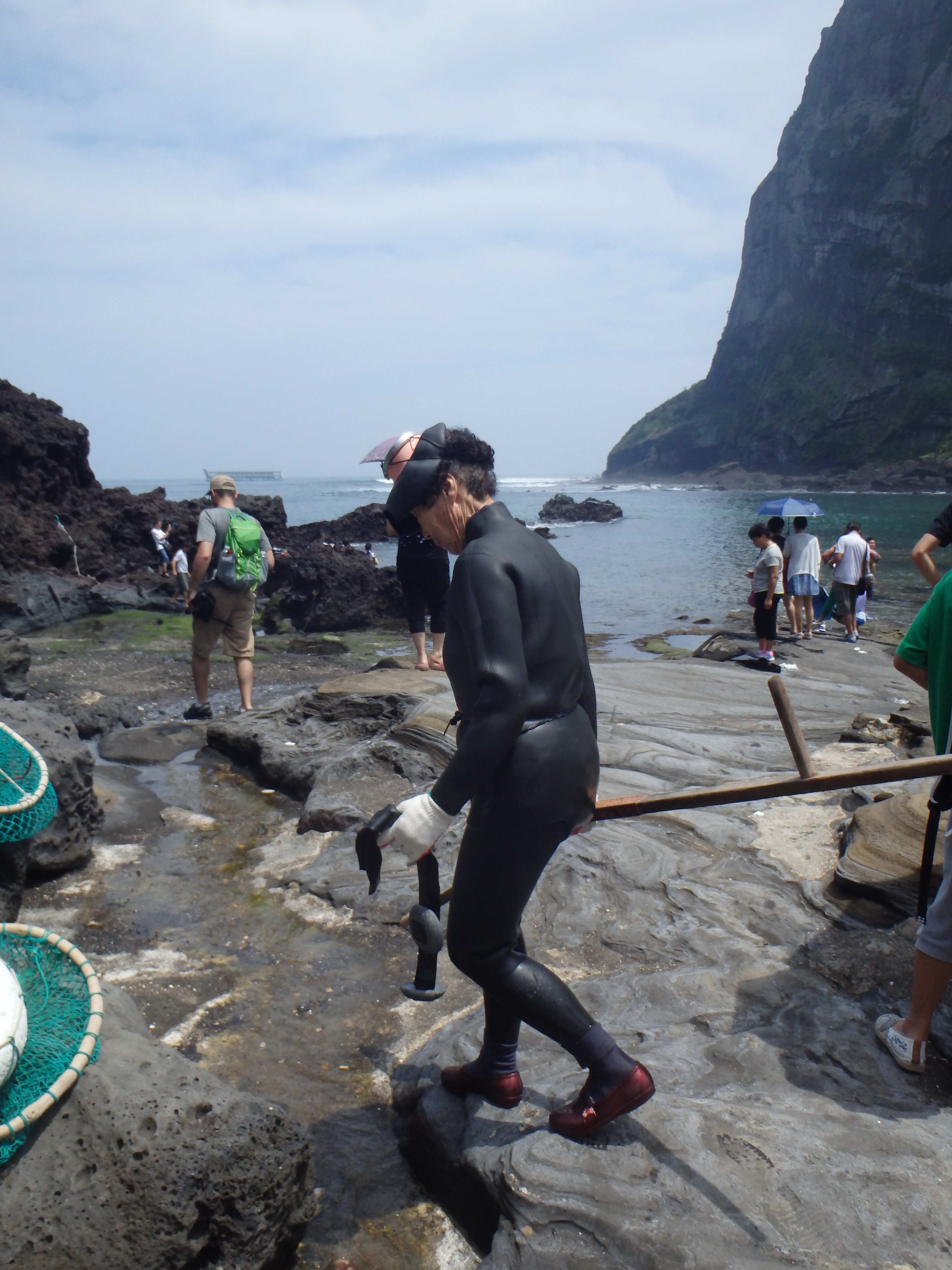 Then we had the pleasure of climbing back down a never-ending staircase. There is a cove at the bottom of the peak where haenyeo dive. Haenyeo are female divers who don’t use any type of breathing apparatus when diving. They use flippers and goggles, a net sack tied to a float to keep their catch, and that’s all. They generally dive for abalone, octopus, and conch. It’s a fascinating group of women and it has a very long history in Jeju. Here’s an excellent article from earlier this year that provides a lot more information about the history and future of Jeju’s haenyeo: http://www.nytimes.com/2014/03/30/world/asia/hardy-divers-in-korea-strait-sea-women-are-dwindling.html?_r=0