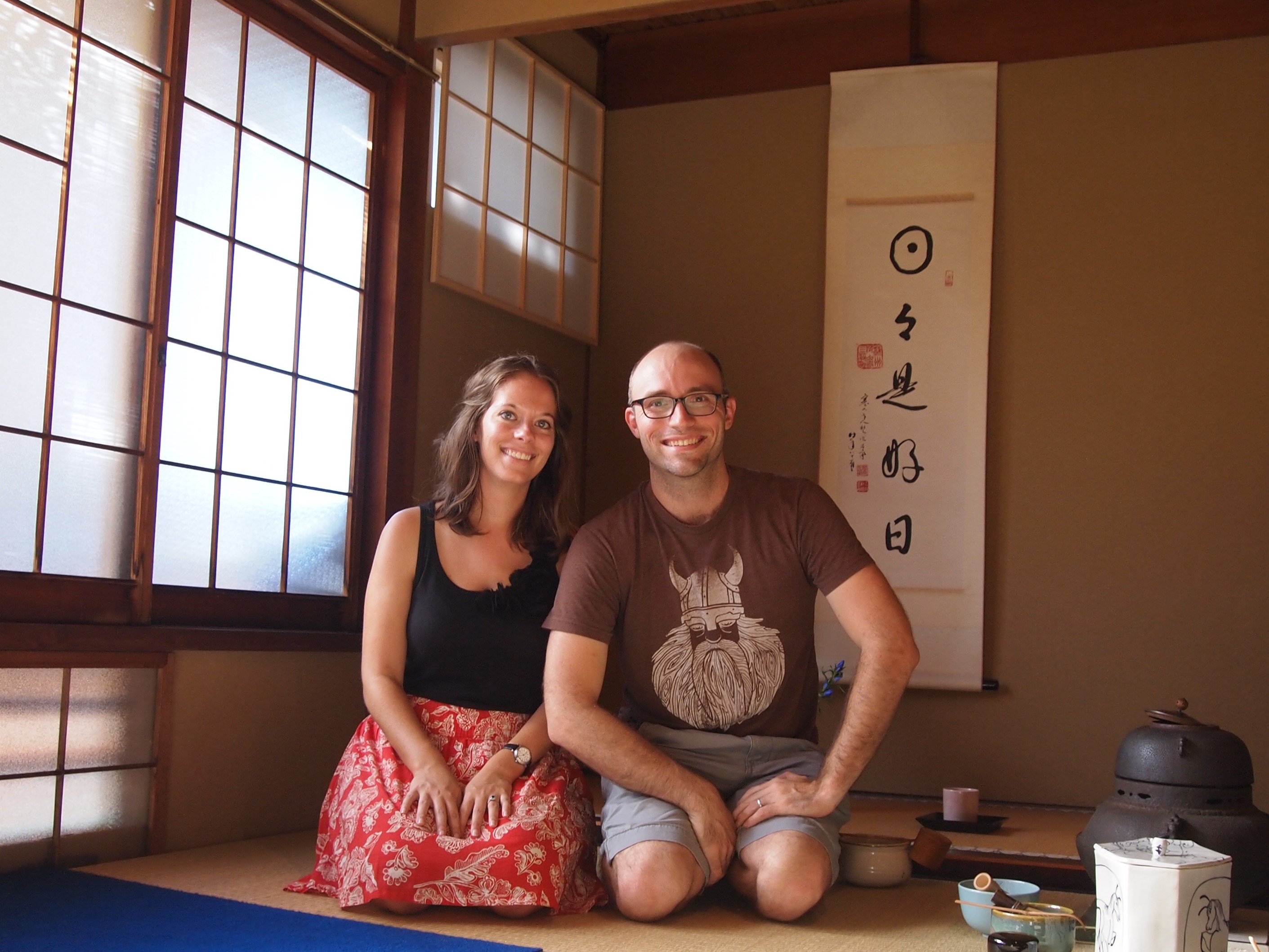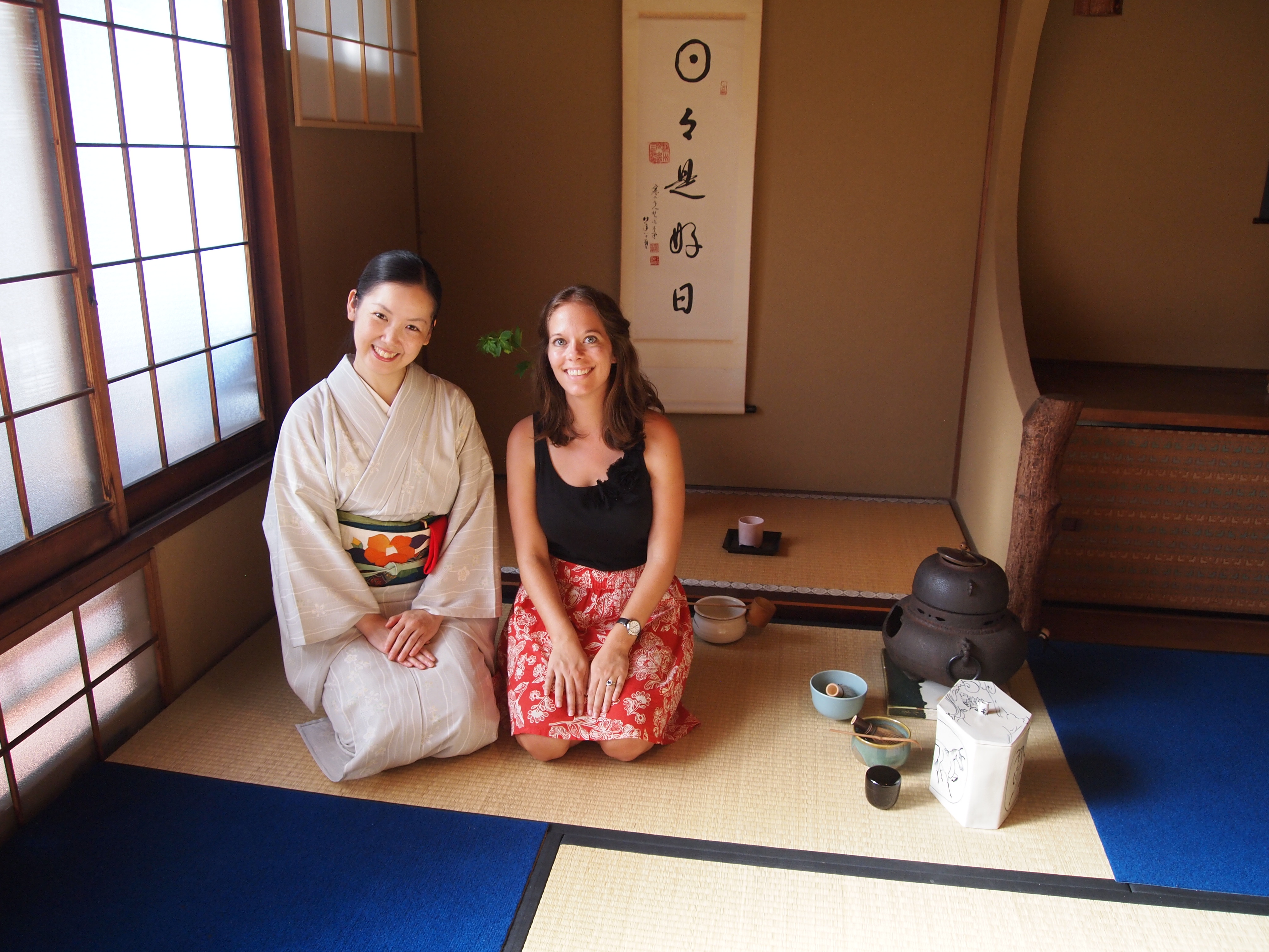 After we finished walking through Nishiki, we grabbed some sushi and water from a Lawson (convenient store) and had to get moving to the other side of town. Before we left for Kyoto I had made a tea ceremony reservation and it was a little ways away from Nishiki. So we hopped on a subway and then had to walk a while. It was hot and then it was crowded and hot and it was just exhausting. But we made it!